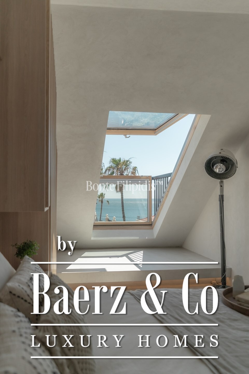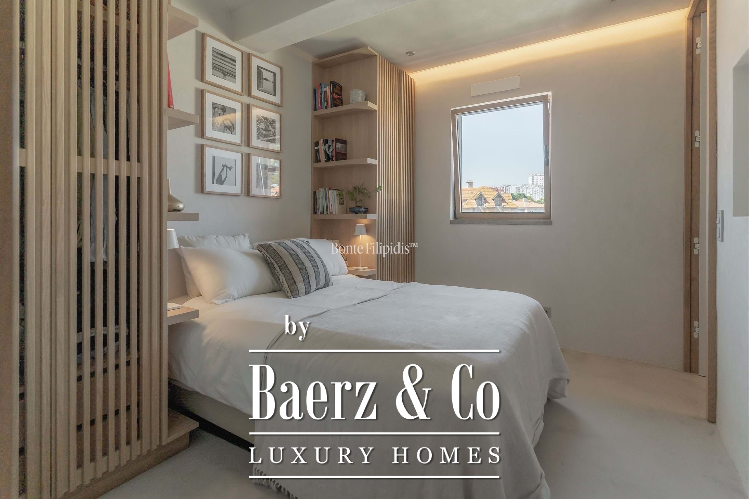 Apartment Cascais is situated directly on the seafront, occupying the top floor of a preserved building in Cascais. Fully renovated in 2024, this two-bedroom residence embodies Scandinavian design, balancing clarity with practical elegance and creating an inviting sense of openness and light. Natural light streams in throughout the day thanks to south-facing orientation, illuminating living spaces that look out to Cascais Bay, the Atlantic, and the Palácio dos Duques de Palmela.