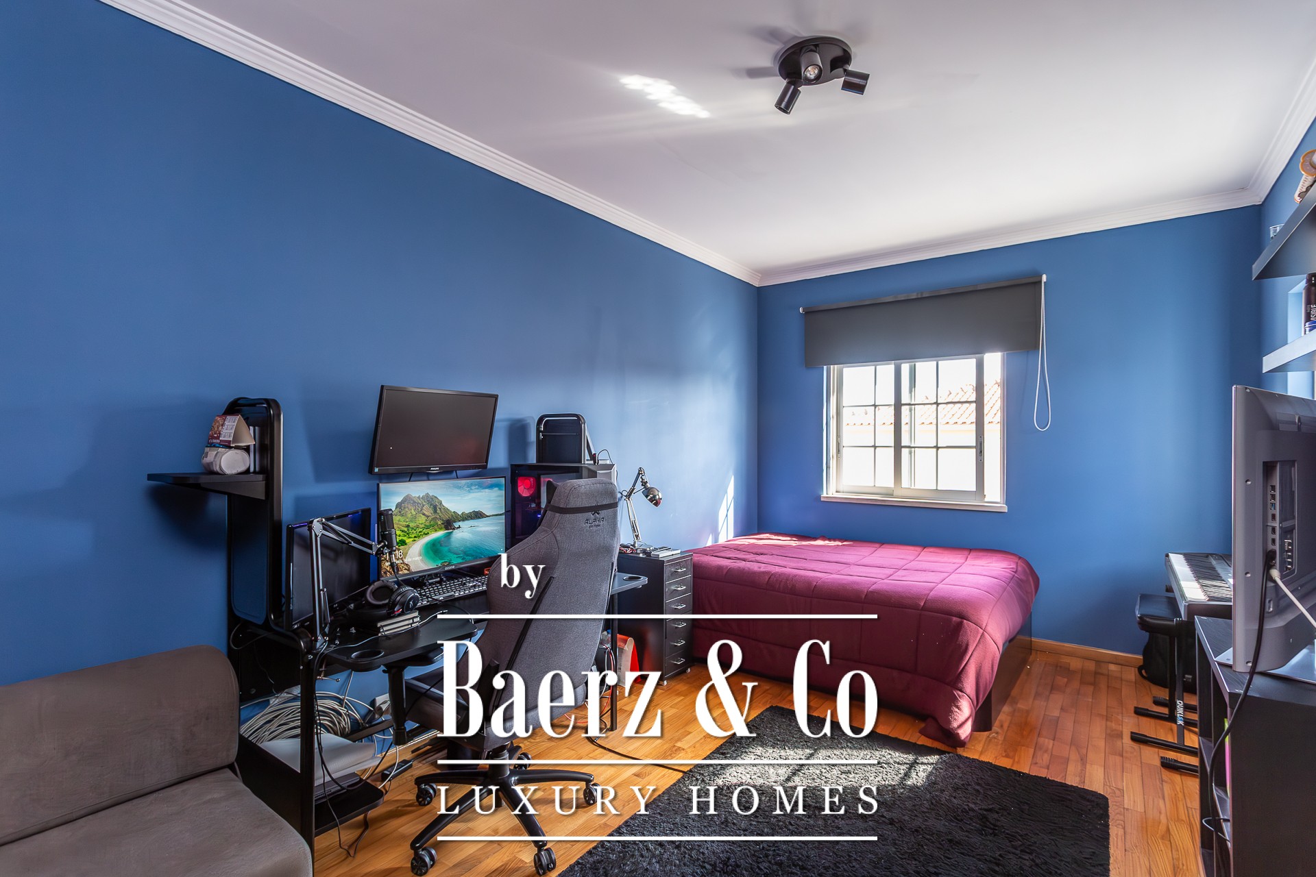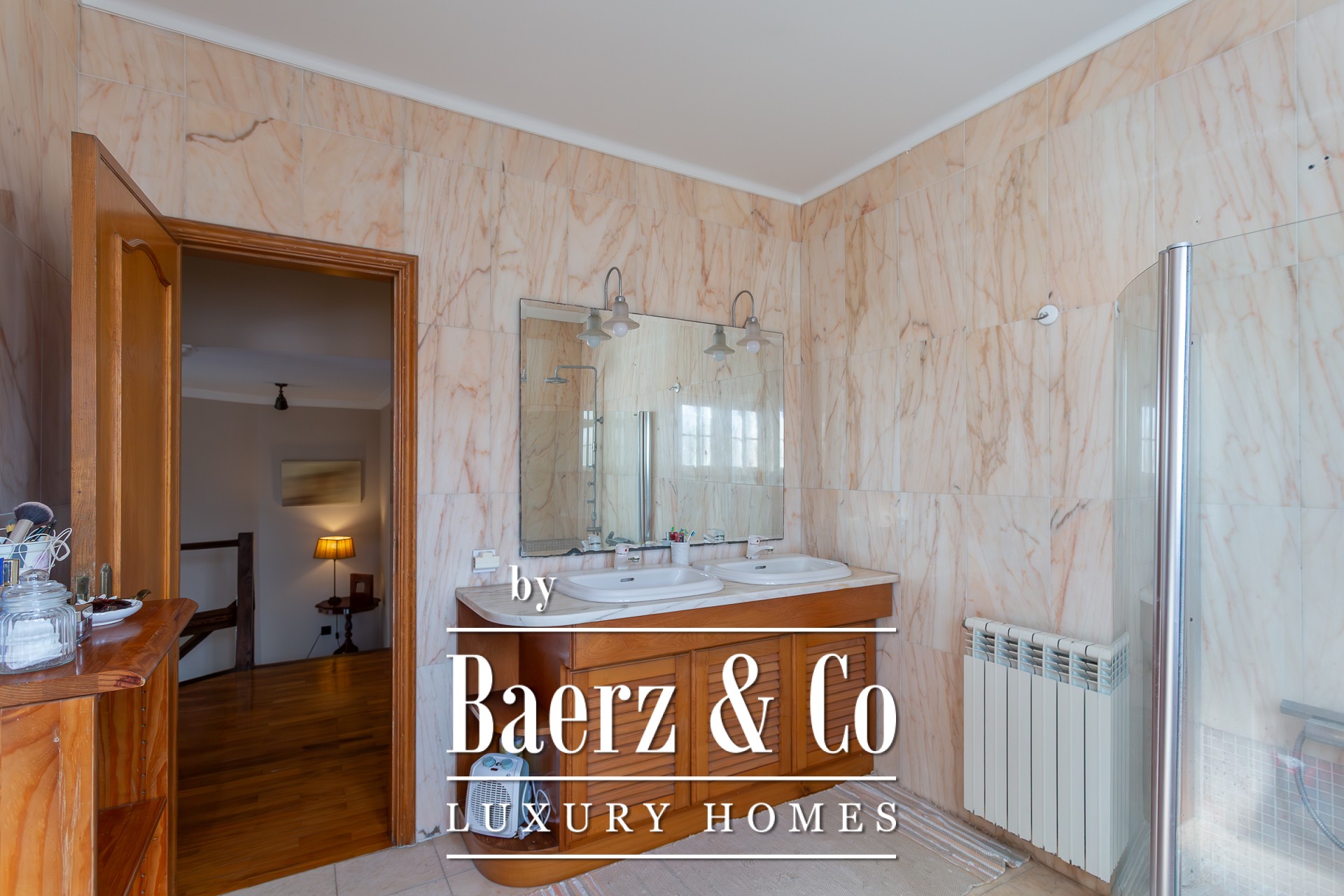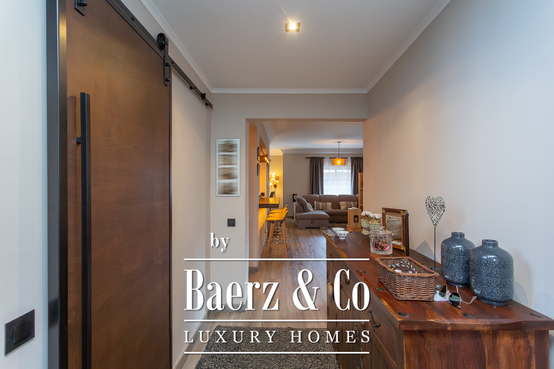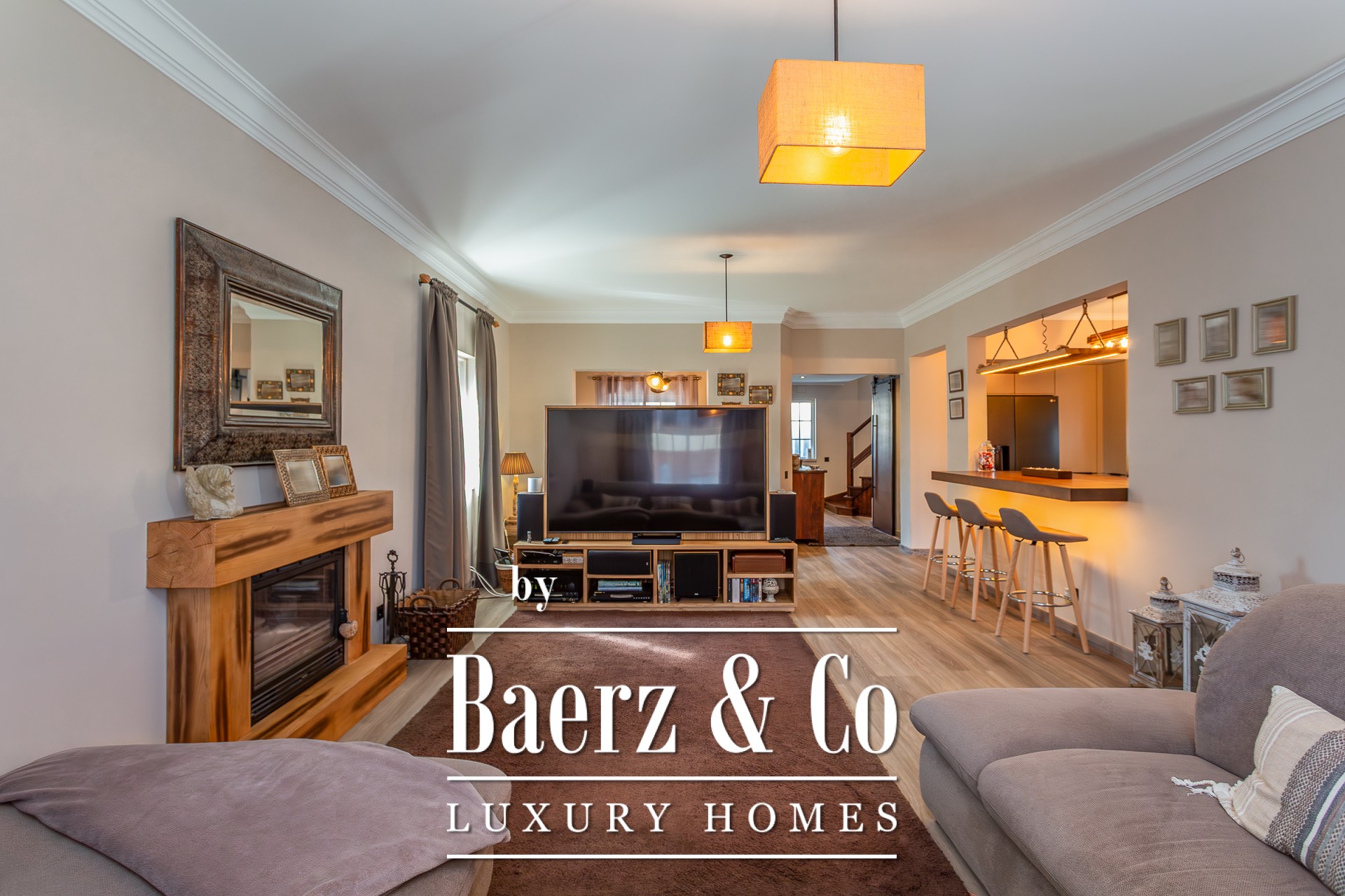 This charming detached 3+1-bedroom villa, located on a quiet cul-de-sac in Murches, offers privacy and comfort in a peaceful setting. On the ground floor, the residence features a welcoming entrance hall, a functional office, and a guest bathroom. The spacious living and dining area, complete with a fireplace, seamlessly integrates with the modern open-plan kitchen, the highlight of this home. Boasting a contemporary design and top-of-the-line appliances from the prestigious German brand Gaggenau, the kitchen provides a sophisticated and practical space for everyday living. All areas on this floor enjoy views or direct access to the garden, where the heated saltwater pool