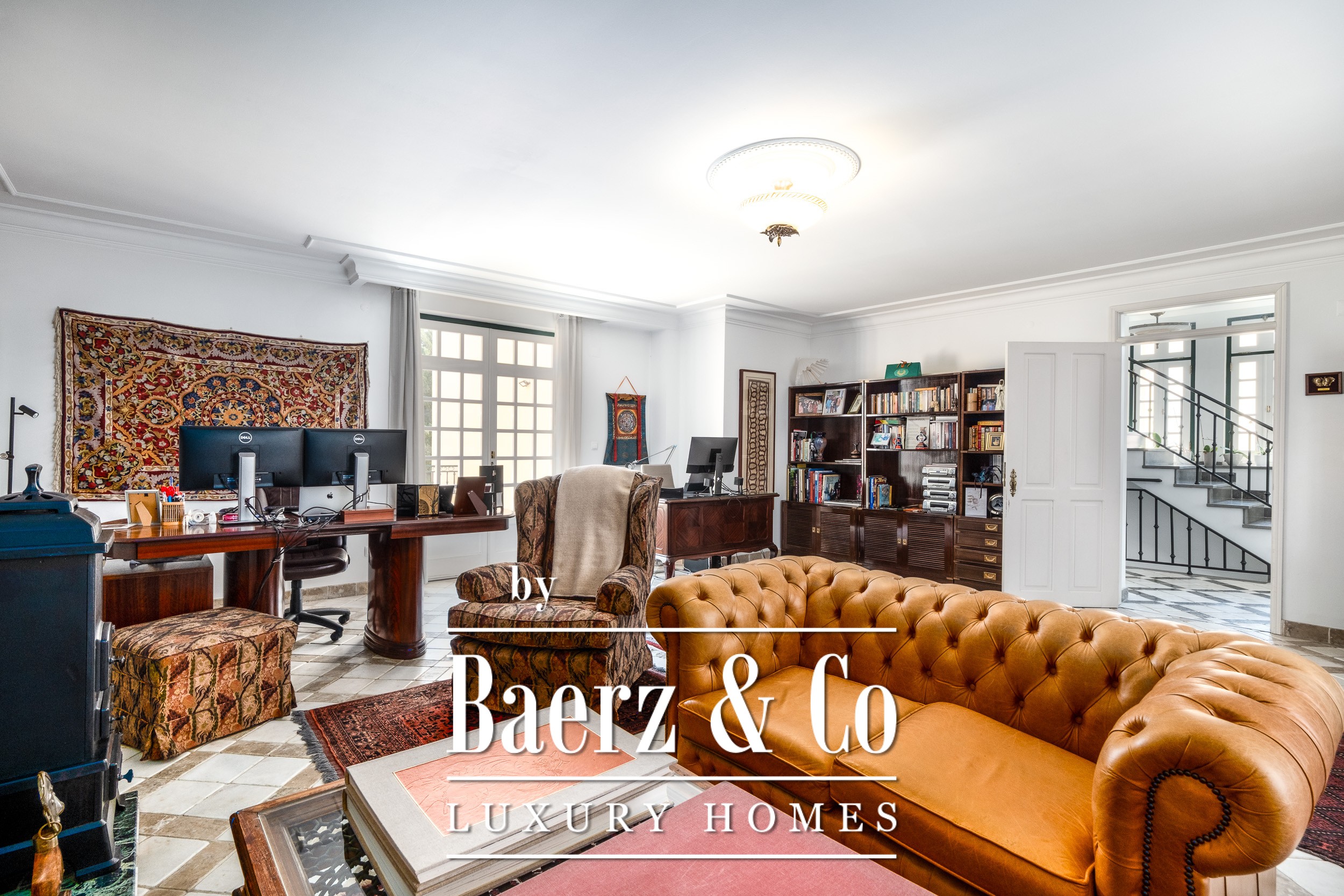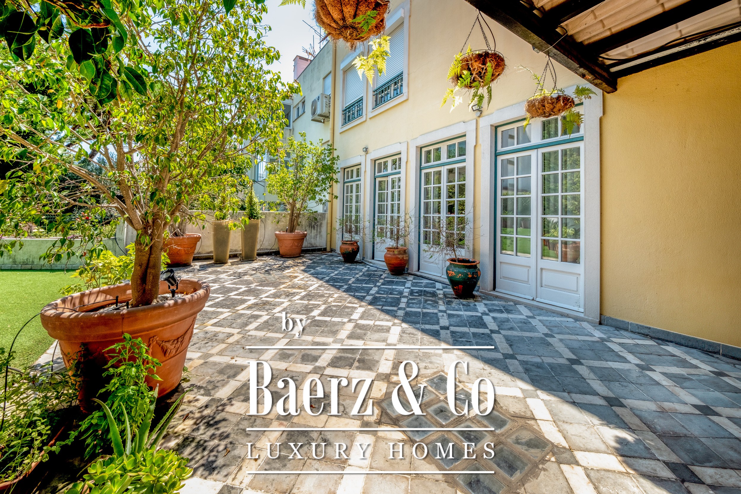 Welcome to this unique historic villa in Parede!Nestled in the heart of Parede – once a quiet fishing village, now a vibrant coastal community between Lisbon and Cascais – this exceptional end of 19th-century residence offers a blend of heritage charm and modern comfort.Meticulously refurbished from the ground up, the home boasts distinctive architectural features and luxurious finishes, bringing character to every corner of the house.As you enter, you’re welcomed by a hall with a staircase leading to the upper floors. To the left, a spacious 30 m² dining room also features a private entrance. It can easily be used as an office/therapy room, allowing clients to be received without disturbing the rest of the home.On the same level, the expansive 70 m² living room invites peaceful evenings by the fireplace or serves as an elegant space for social gatherings. Custom-made mahogany double-glazed windows and underfloor heating beneath beautiful Azul Cascais and Estremoz marble floors ensure comfort during the cooler winter months.The fully equipped kitchen includes a small breakfast nook and opens onto a quiet outdoor dining area.Upstairs on the first floor, you'll find two large bedrooms. The master suite includes a walk-in closet and a private ensuite bathroom. The second bedroom, spacious enough to accommodate its own bathroom and dressing room, also opens onto a generous terrace.The second floor offers three additional