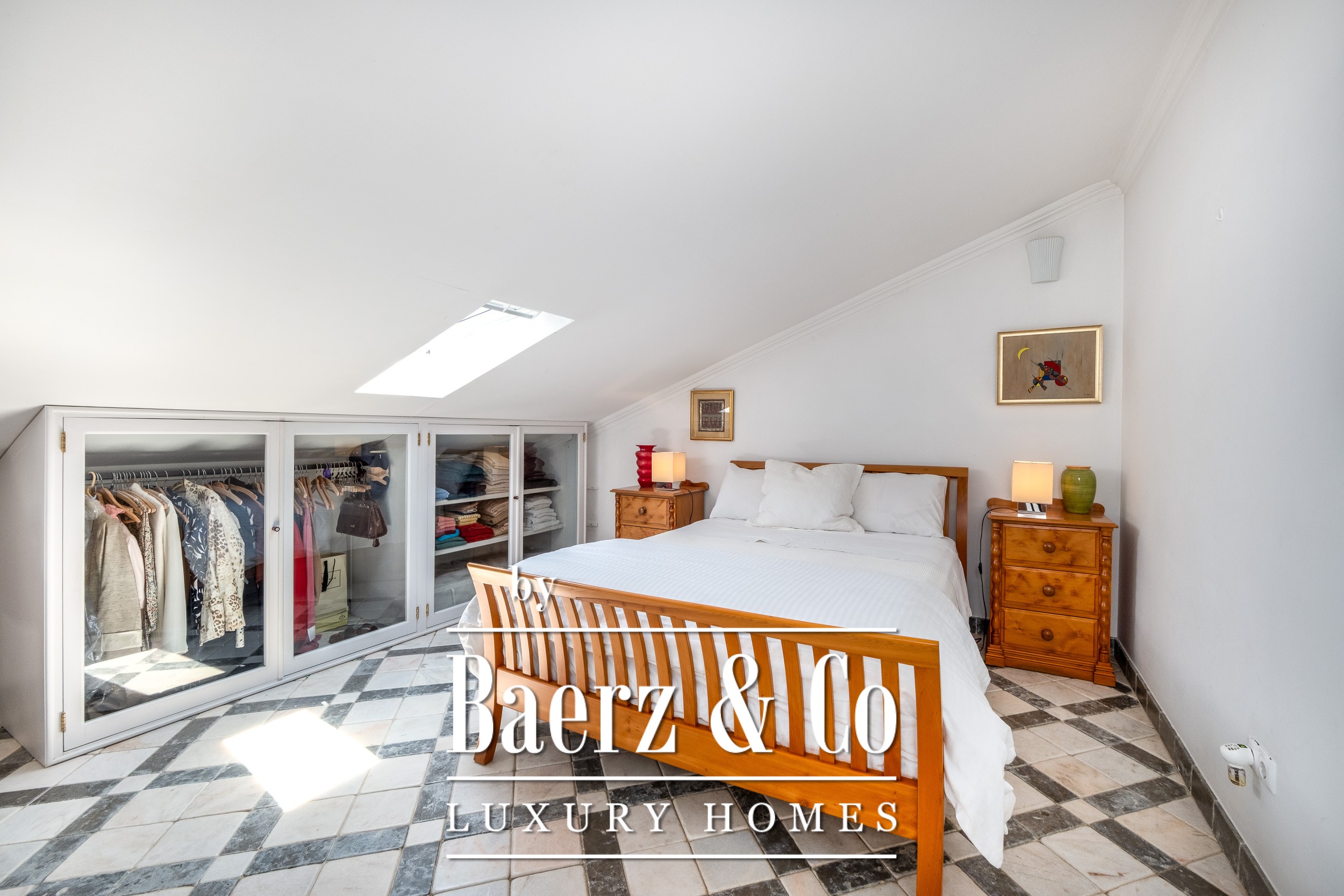 bedrooms, each with its own ensuite bathroom. While more modest in size, they’re perfect for children, guests, or as dedicated workspaces.At the very top, an attic room with sea views provides flexible space for a library, art studio, or private retreat. An additional large attic provides storage space (arrumações).Set on a 600 m² plot, the villa features a private garden, anchored by a majestic, century-old pinheiro manso (stone pine) – a true local landmark.The heated indoor swimming pool opens directly onto this tranquil oasis, creating a serene, light-filled environment for year-round enjoyment.On the lower floor, the home also includes a spacious garage for up to four cars, a laundry room, storage area, and a wine cellar.Additional features include a surround sound system, solar panels, a video surveillance system, and a modern alarm system.Please contact me for more details. About ParedeParede, part of the Cascais municipality, is known for its sunny beaches and excellent location – just 30 minutes from Lisbon Airport. The featured property is a 10-minute walk from the beach and 6 minutes from the train station, with all essential infrastructure – including a colorful local market, grocery store, pharmacy, and renowned pastry shops and restaurants – just around the corner. With two nearby NOVA University campuses, international schools, and easy access to Lisbon, Parede is an ideal place to live.