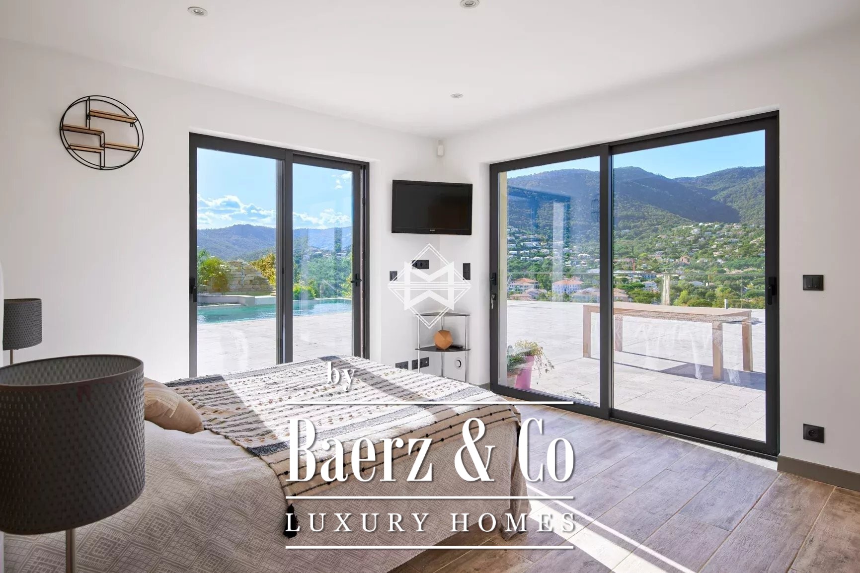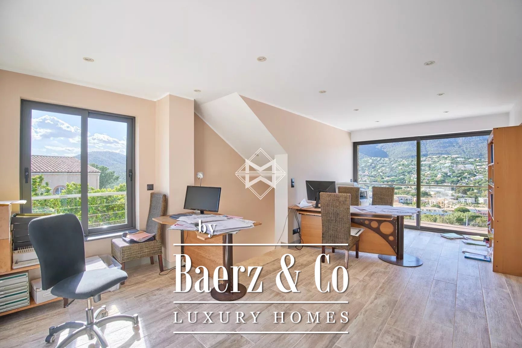 Villa Cavalaire-sur-Mer welcomes you to a distinctive residence on a 1,503 m² plot, moments from the city center and nearby beaches. This architect-designed villa unfolds over 311 m² of living space, where expansive proportions and a cathedral-ceiling living room with floor-to-ceiling windows bridge elegant interiors seamlessly with the natural setting. The light, ever-present, invites nature inside and defines each space.