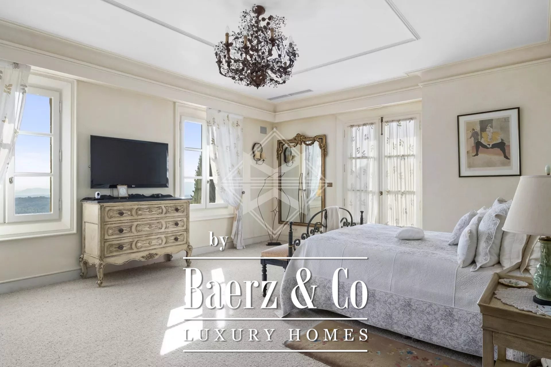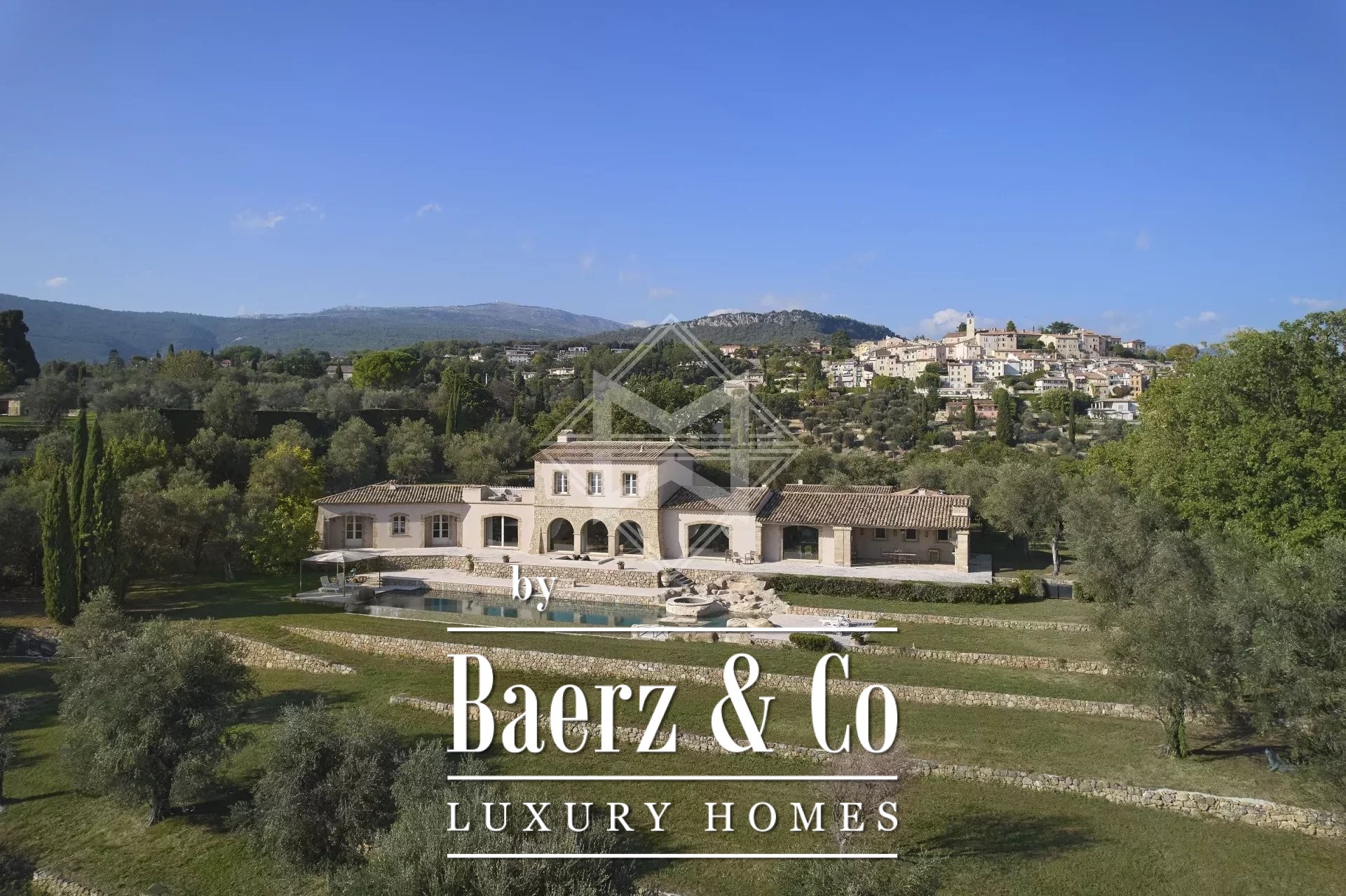 This exceptional residence combines refinement, comfort and security on more than 9,700 m2 of landscaped gardens by Jean Mus and fully fenced with 140 olive trees and a 360-degree panoramic view of the bay of Nice in Cannes.