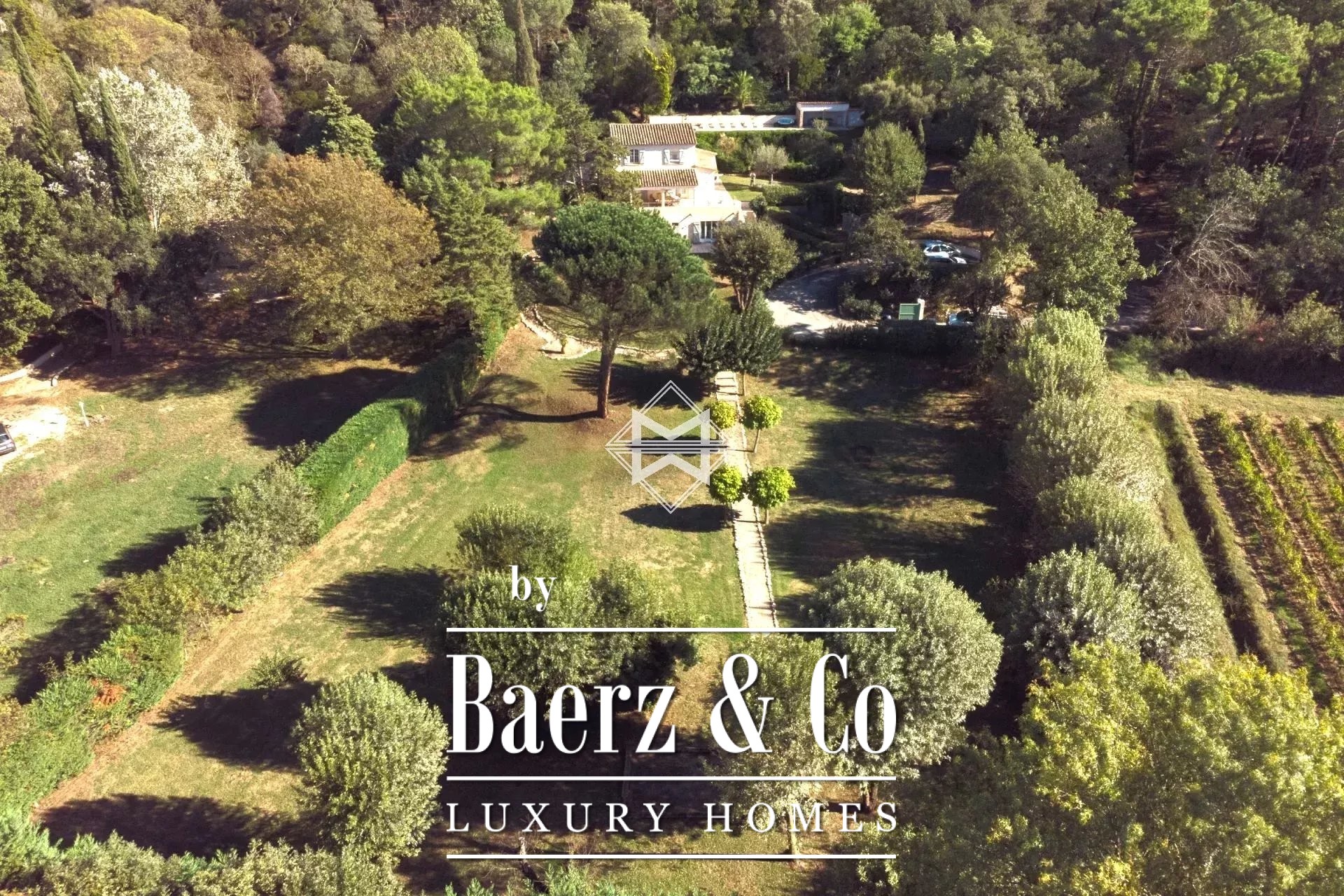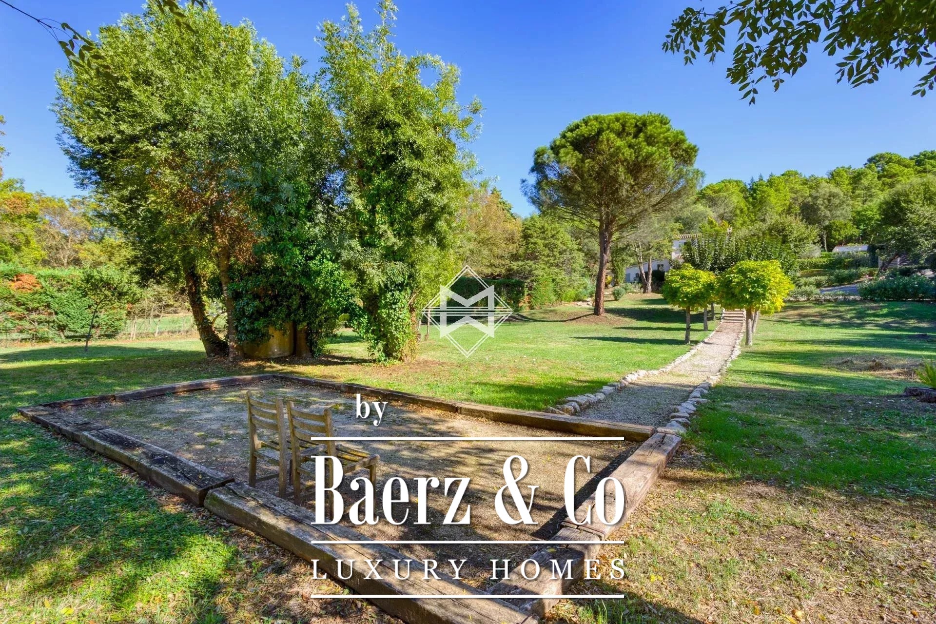 The 6,809 m² plot frames unobstructed views of rolling vineyards, distant hills, and untouched greenery. The landscape is thoughtfully furnished with a large heated swimming pool and pool house, a pétanque court, and shaded terraces. Air-conditioning, fireplace, radiator heating, and irrigation sprinklers balance comfort with convenience. Outdoor lighting, a car port, and a well further support both practicality and ambiance.