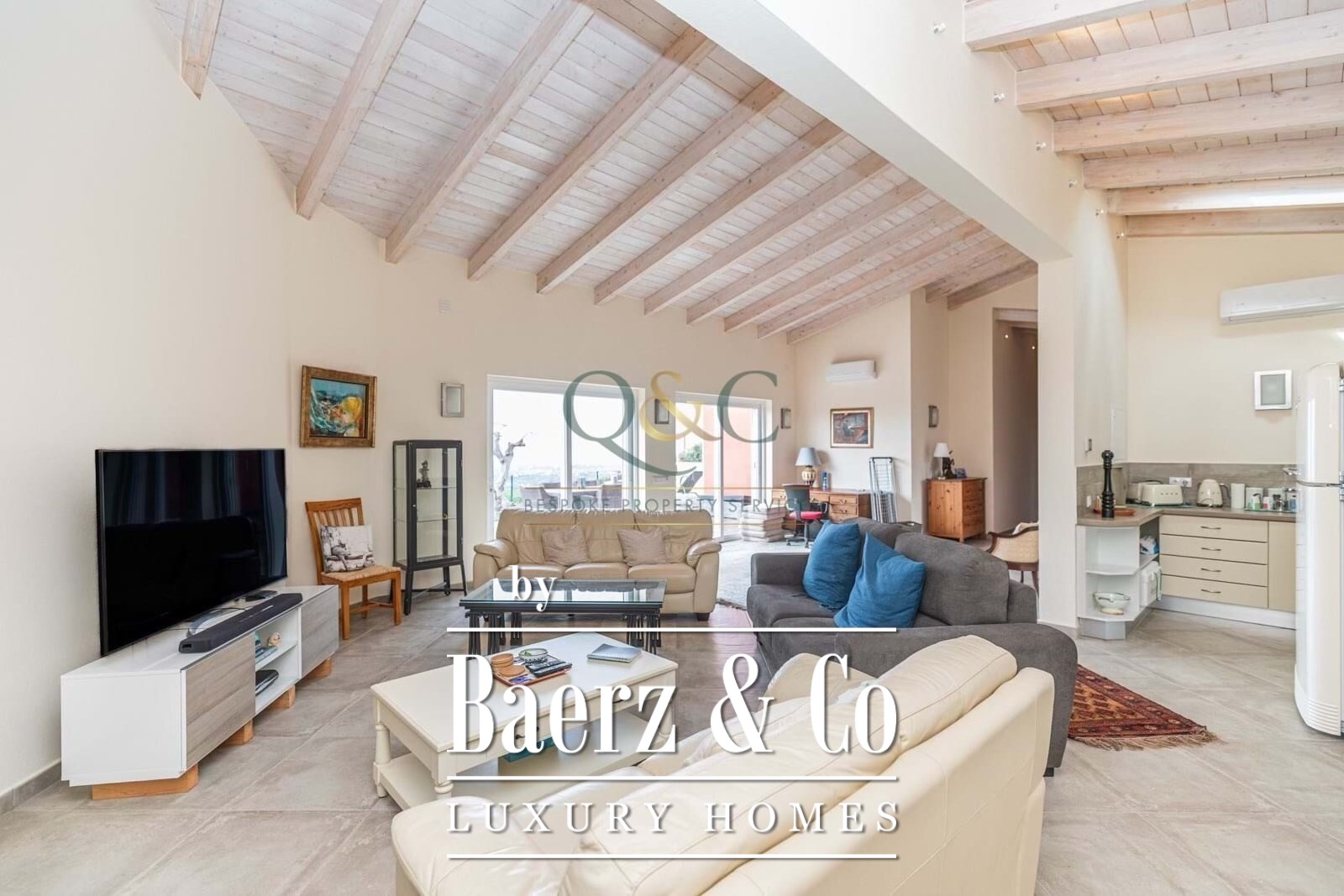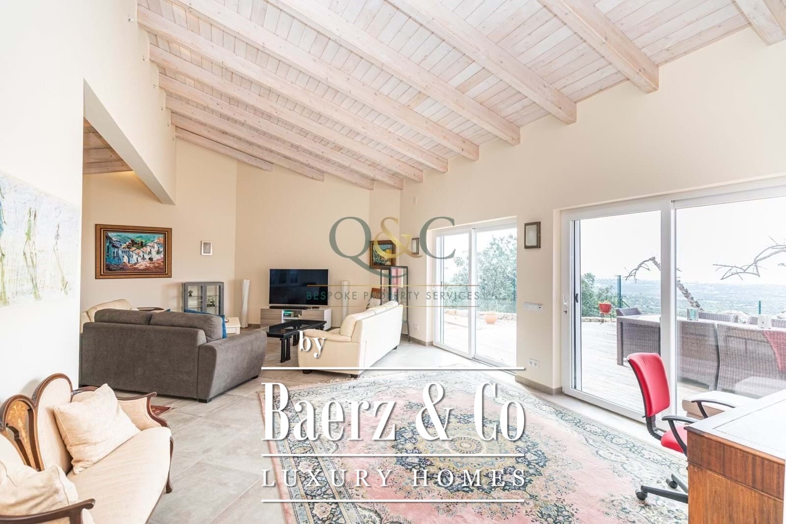 Nestled in a private, elevated location, this remarkable villa offers panoramic views of the coast, rolling hills, and picturesque valleys. Designed for comfort, privacy, and versatility, the property consists of two separate urban plots, allowing the option to divide it into two independent residences.