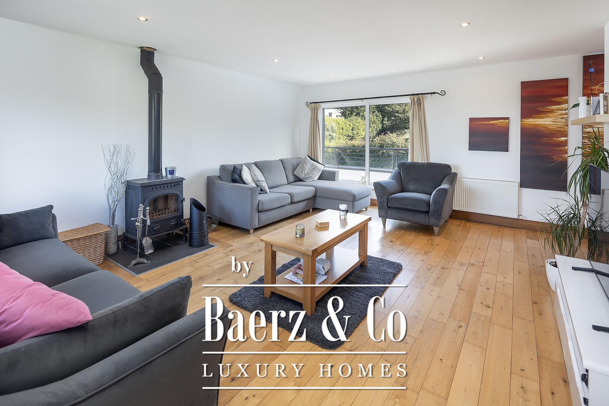 Fantastic family room with fabulous views to the sea and a feature wood burning stove.