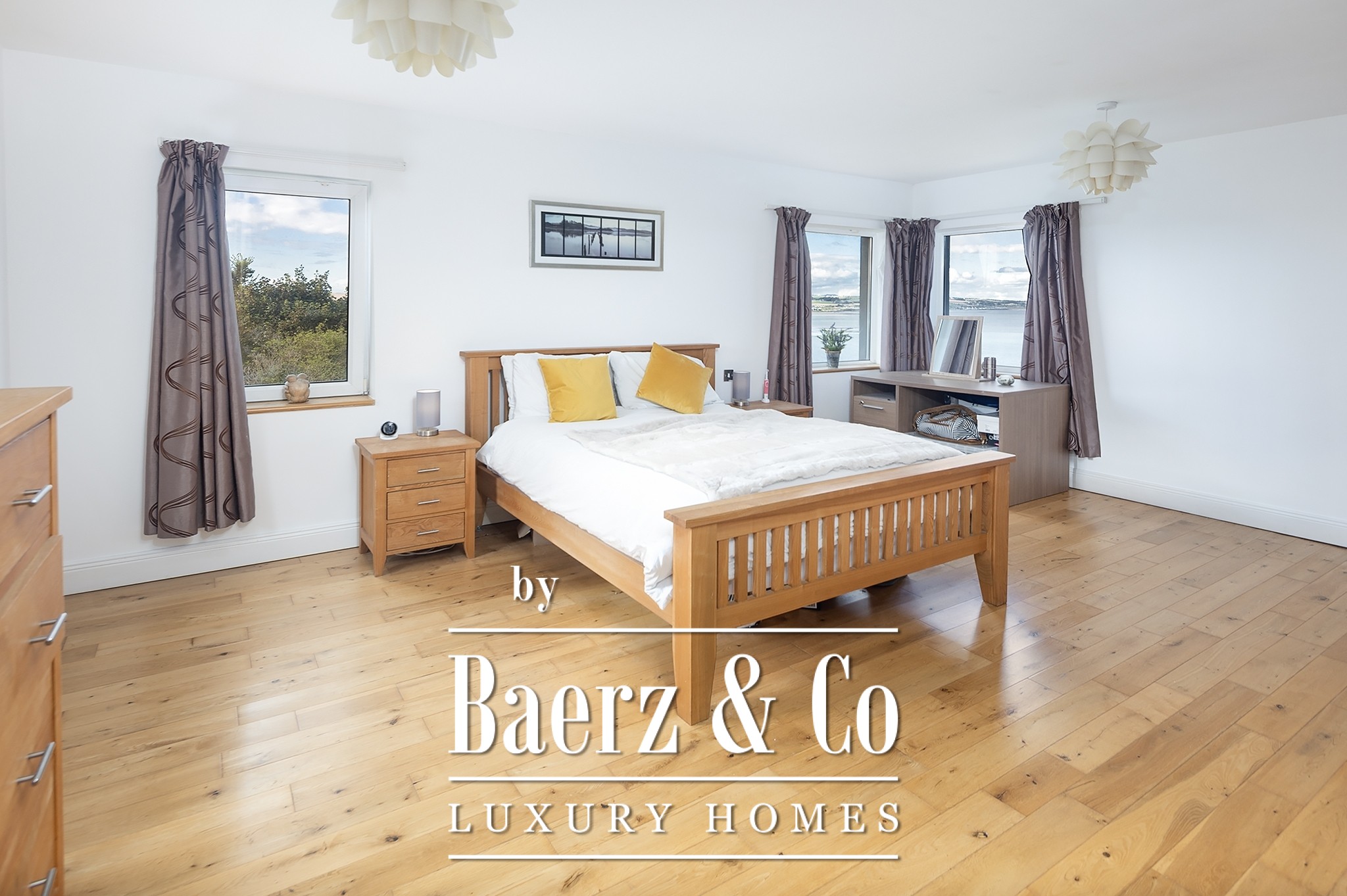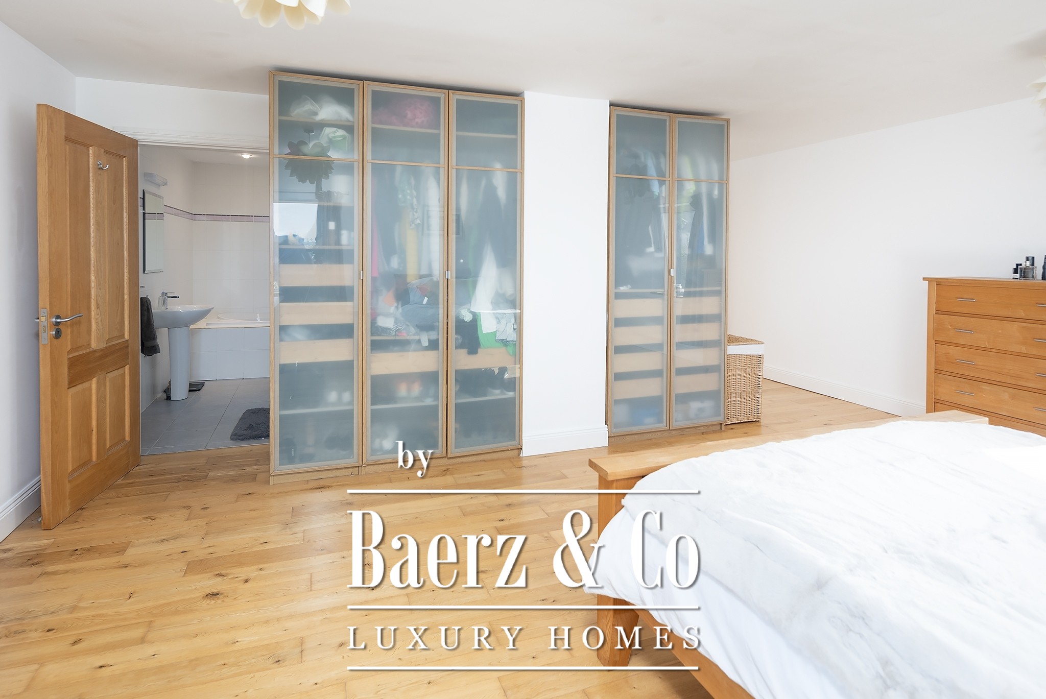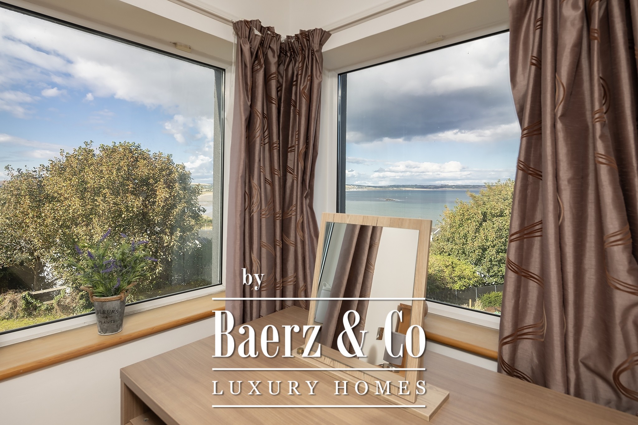 Incredible master bedroom with triple aspect offering sea views and oak flooring throughout.