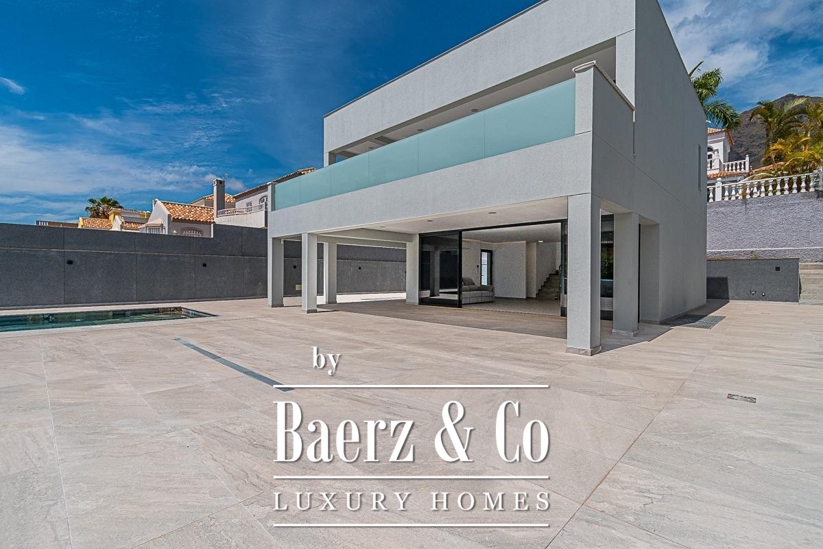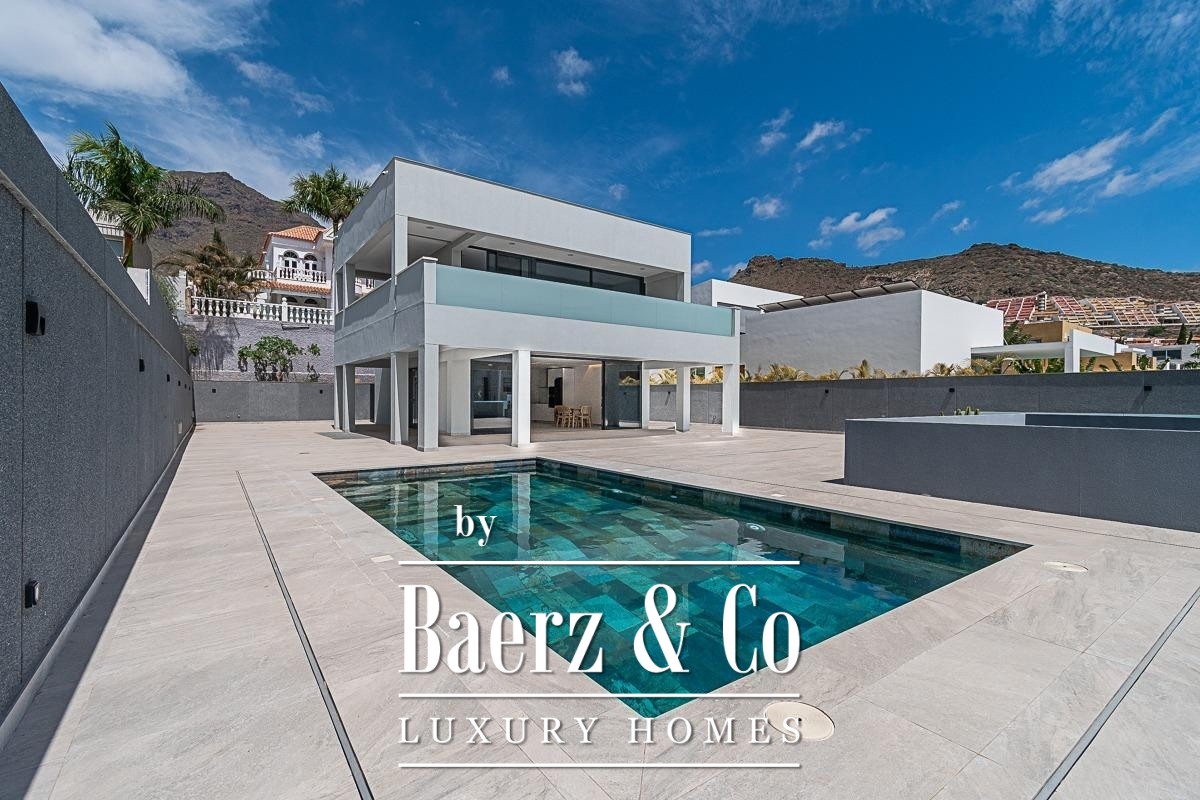 Villa Costa Adeje is a contemporary residence of 391 m², characterized by abundant light and precise modernity. This four bedroom, four bathroom property articulates spacious interiors through an open plan kitchen with state of the art appliances, a large living room, and fitted wardrobes in every room. Floor to ceiling windows invite mountain views and natural light across the main living spaces. Outdoors, a generous terrace frames a private swimming pool and connects seamlessly to a landscaped garden, creating a tranquil retreat for both gatherings and quiet contemplation.