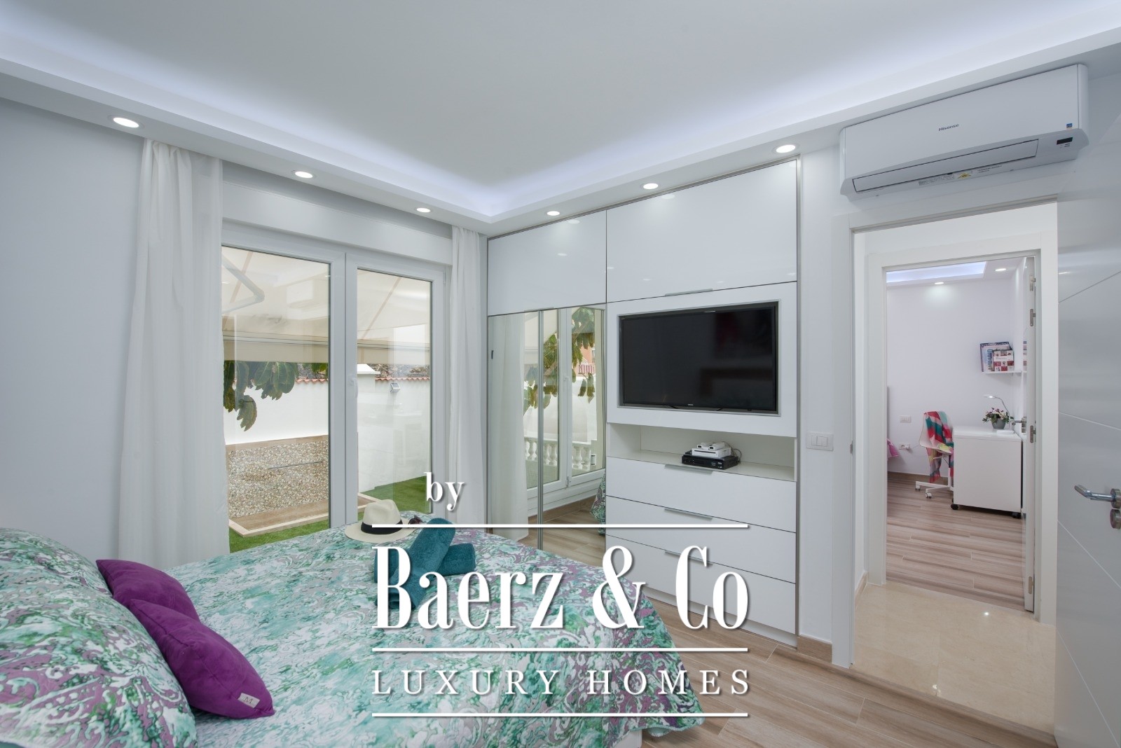 Outside, the private heated pool and terrace invite quiet reflection or convivial moments. Technology and sustainability are integral, from photovoltaic solar panels to a CCS2 electric vehicle charging station. Parking for up to three cars allows discrete access. The villa’s position, seven kilometres from Adeje and within fifteen minutes of Tenerife South airport, places it at the crossroads of privacy and international connectivity. Nearby are the beaches and renowned international school that define Costa Adeje’s appeal, making this a true luxury villa for sale in Costa Adeje for those who value discreet sophistication.
