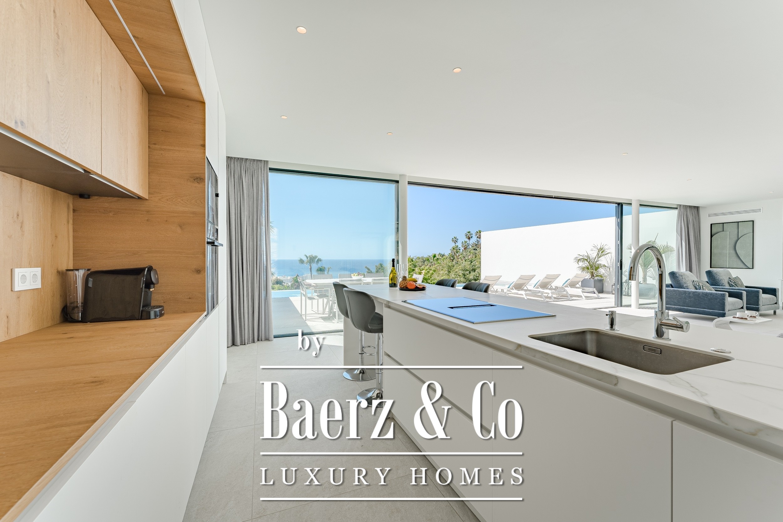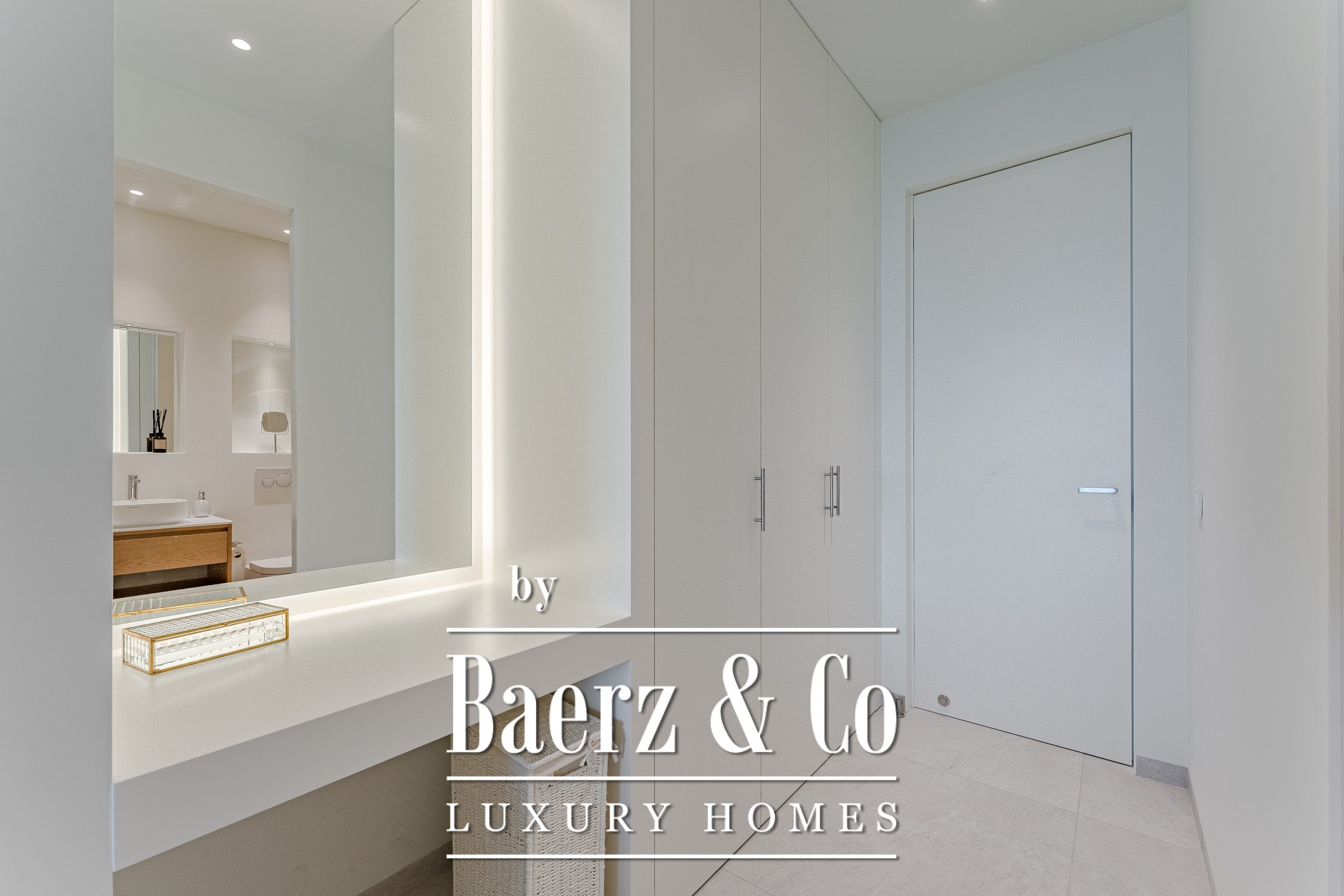 The home orients itself toward the ocean, framing each hour of sunlight and the shifting hues of the landscape. Three thoughtfully arranged levels include a private lift, generous dressing rooms, and a multi-purpose room for flexible living. Terraces flow outward, leading to an infinity heated swimming pool that forms the centrepiece of the exterior experience.