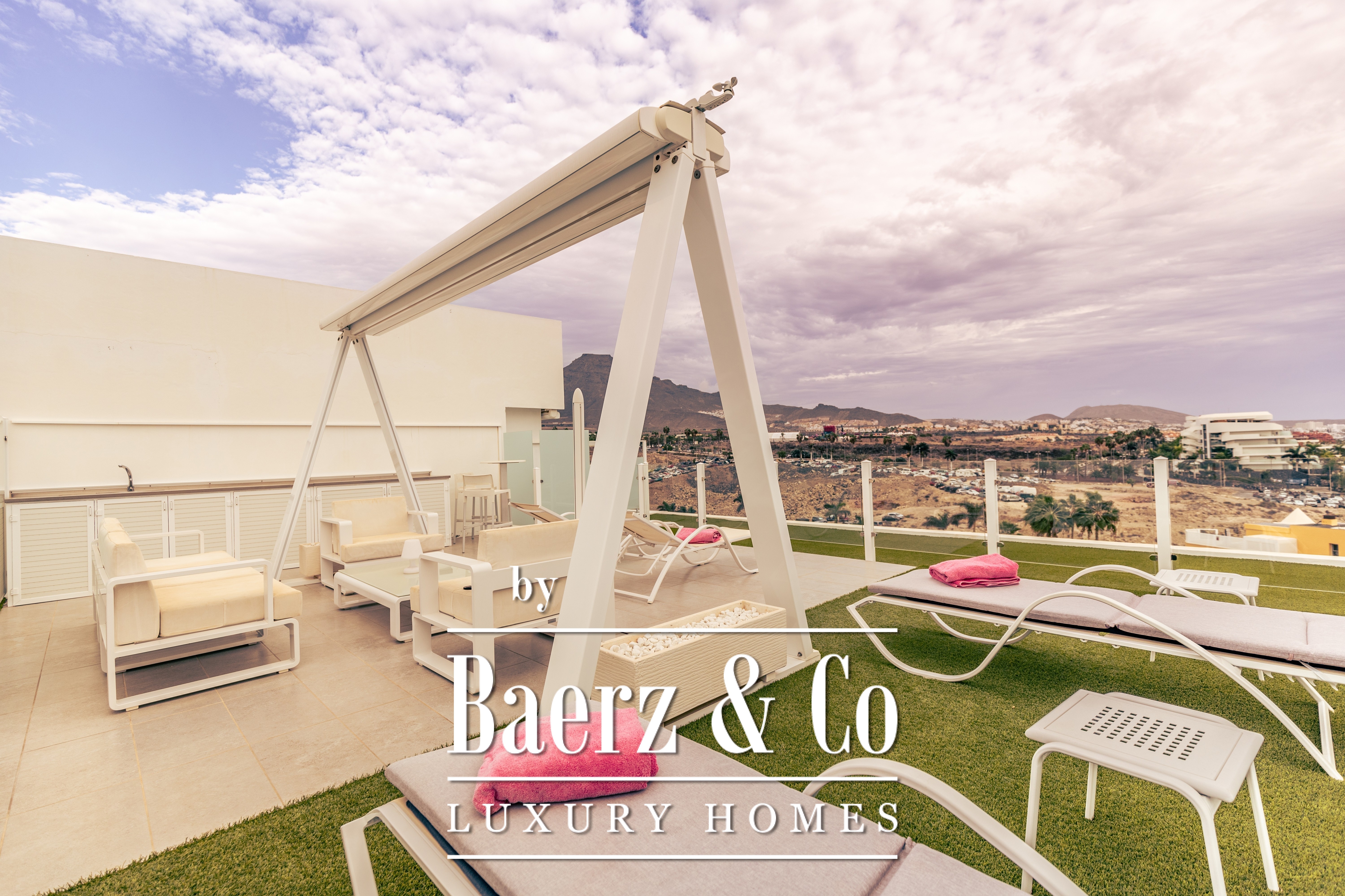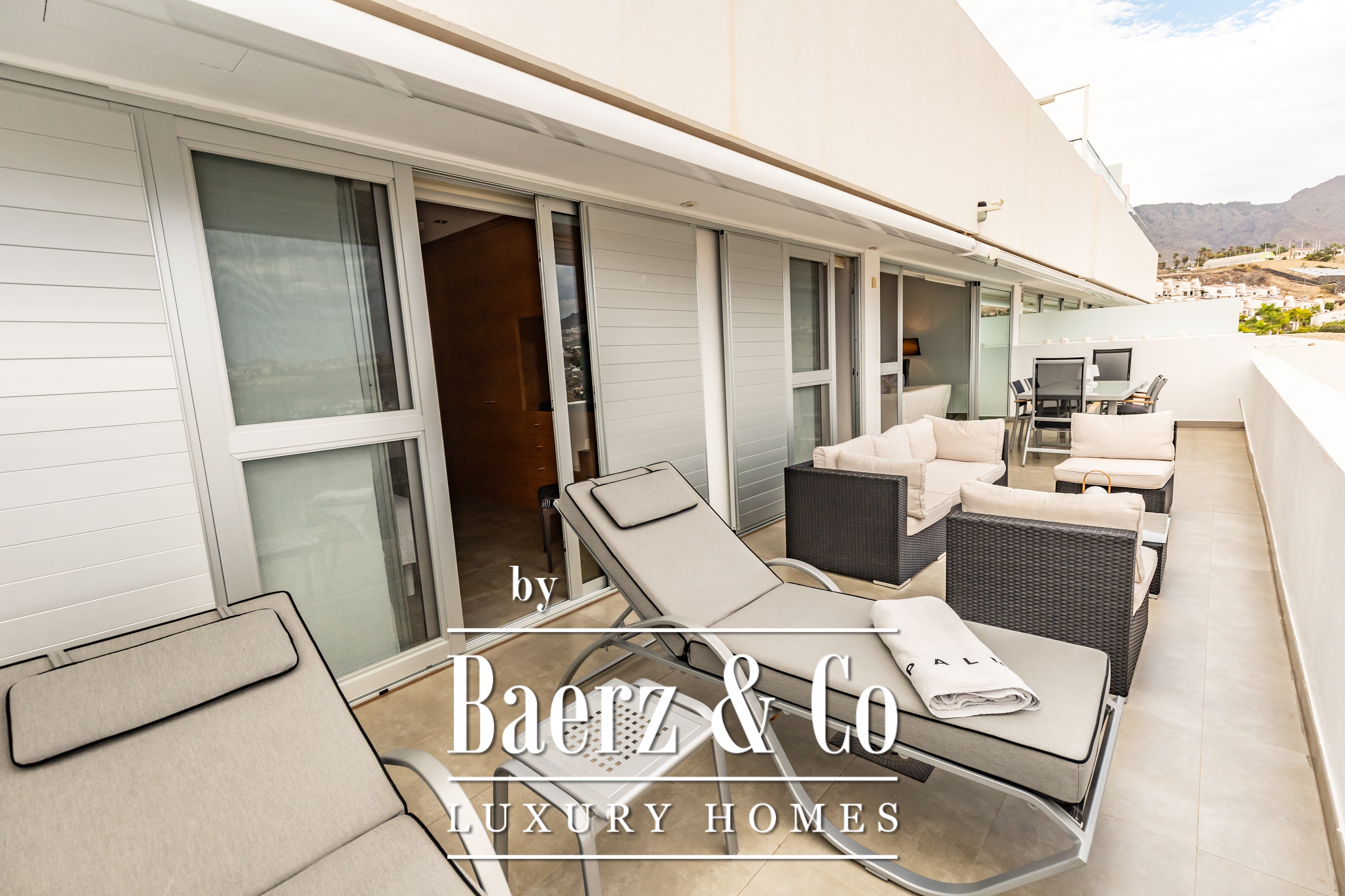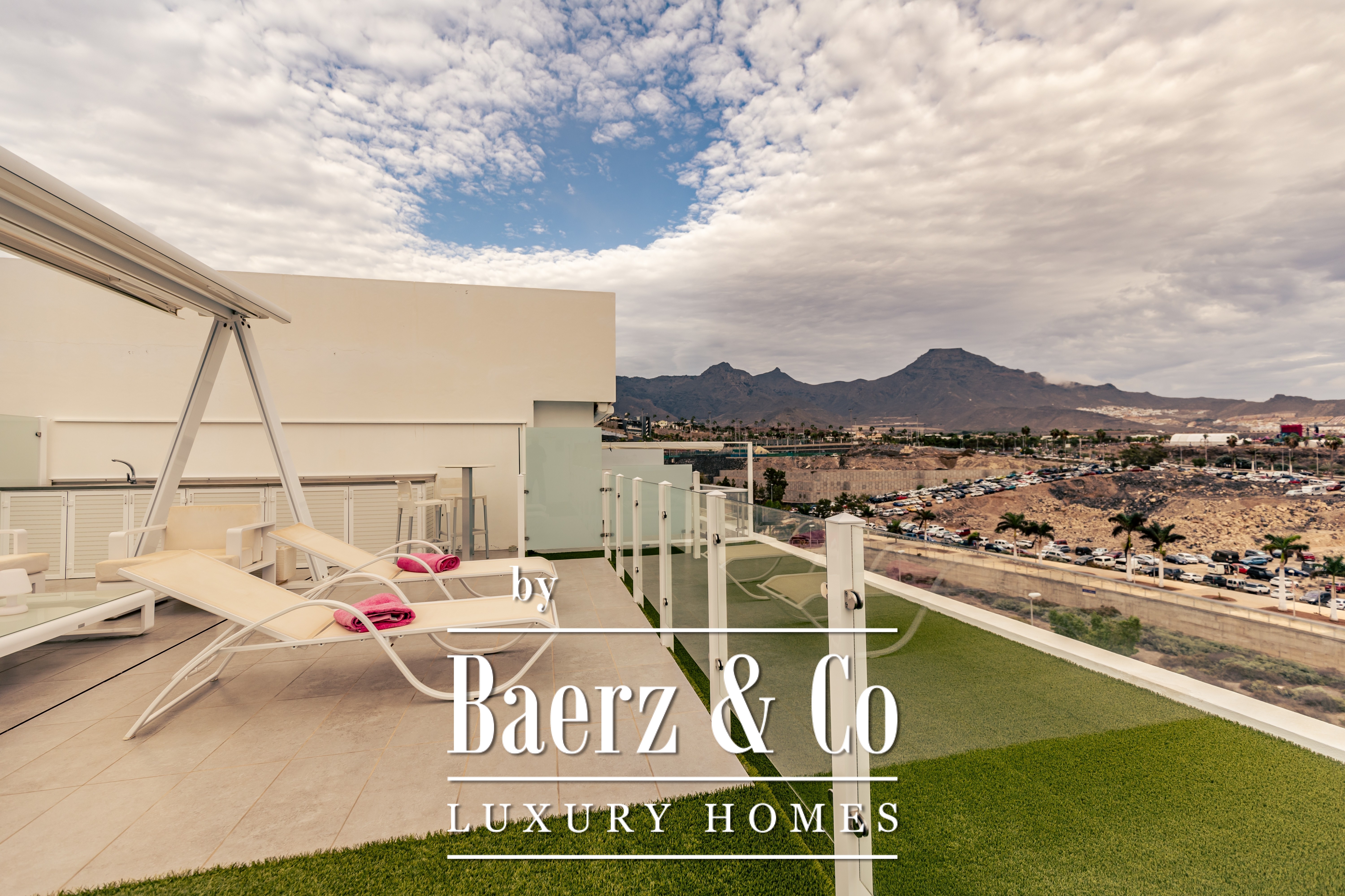 Penthouse Costa Adeje offers refined contemporary minimalism within the rarefied setting of Caleta Palms, a celebrated address on the southern coast of Tenerife. This 100 m² penthouse is complemented by 150 m² of terraces, including a private roof terrace with an outdoor shower, granting unobstructed views of the Atlantic, the mountains and the village of La Caleta.