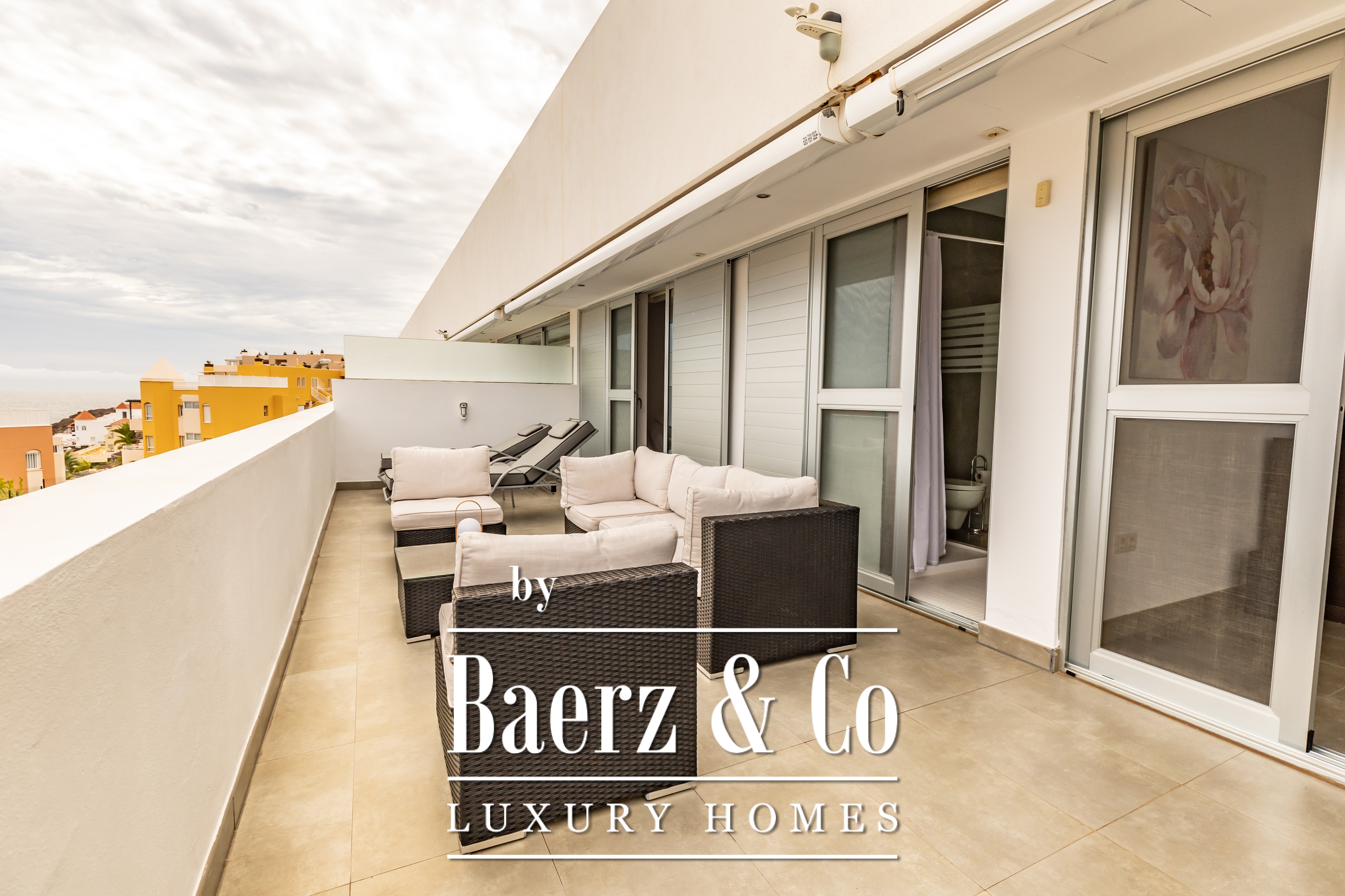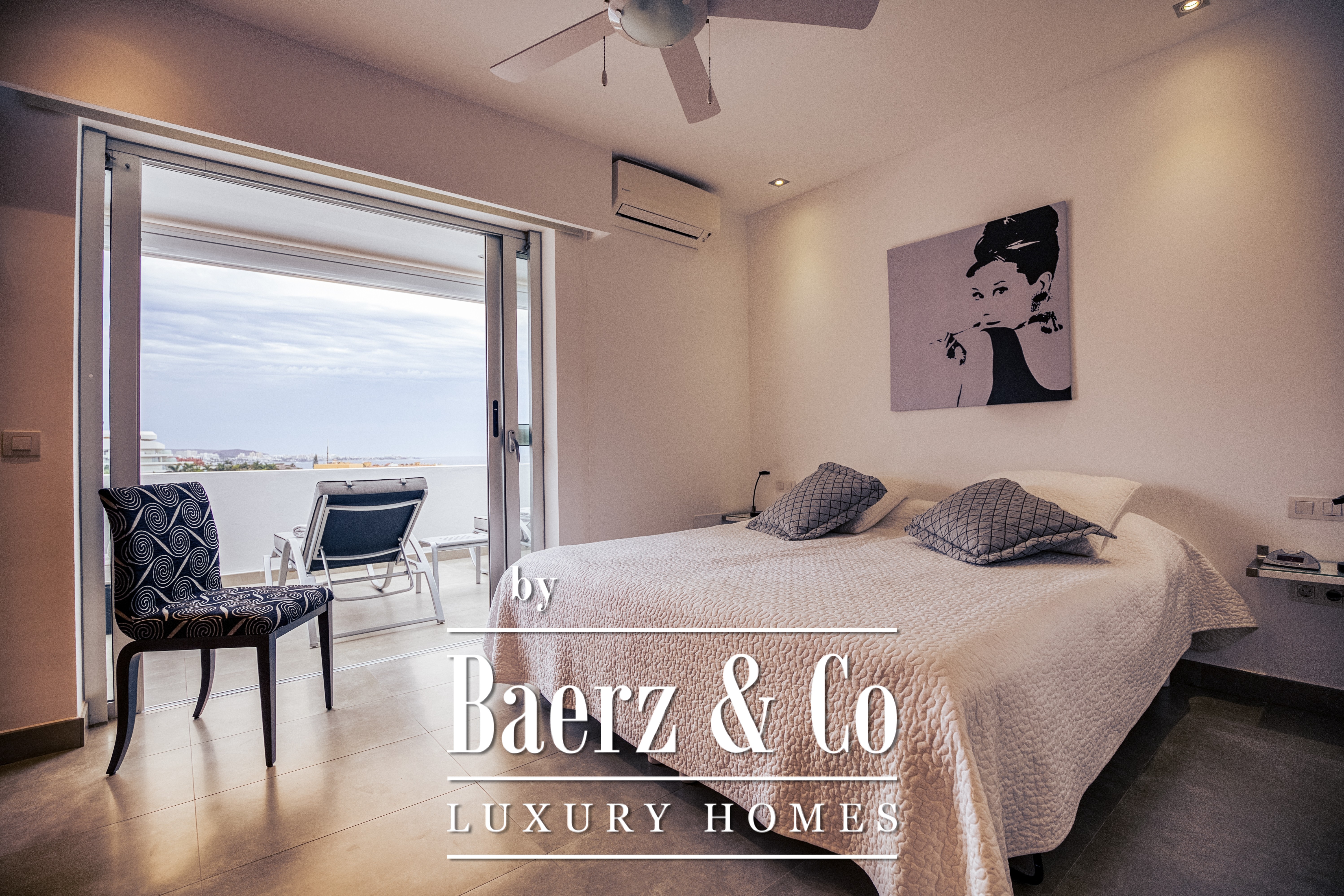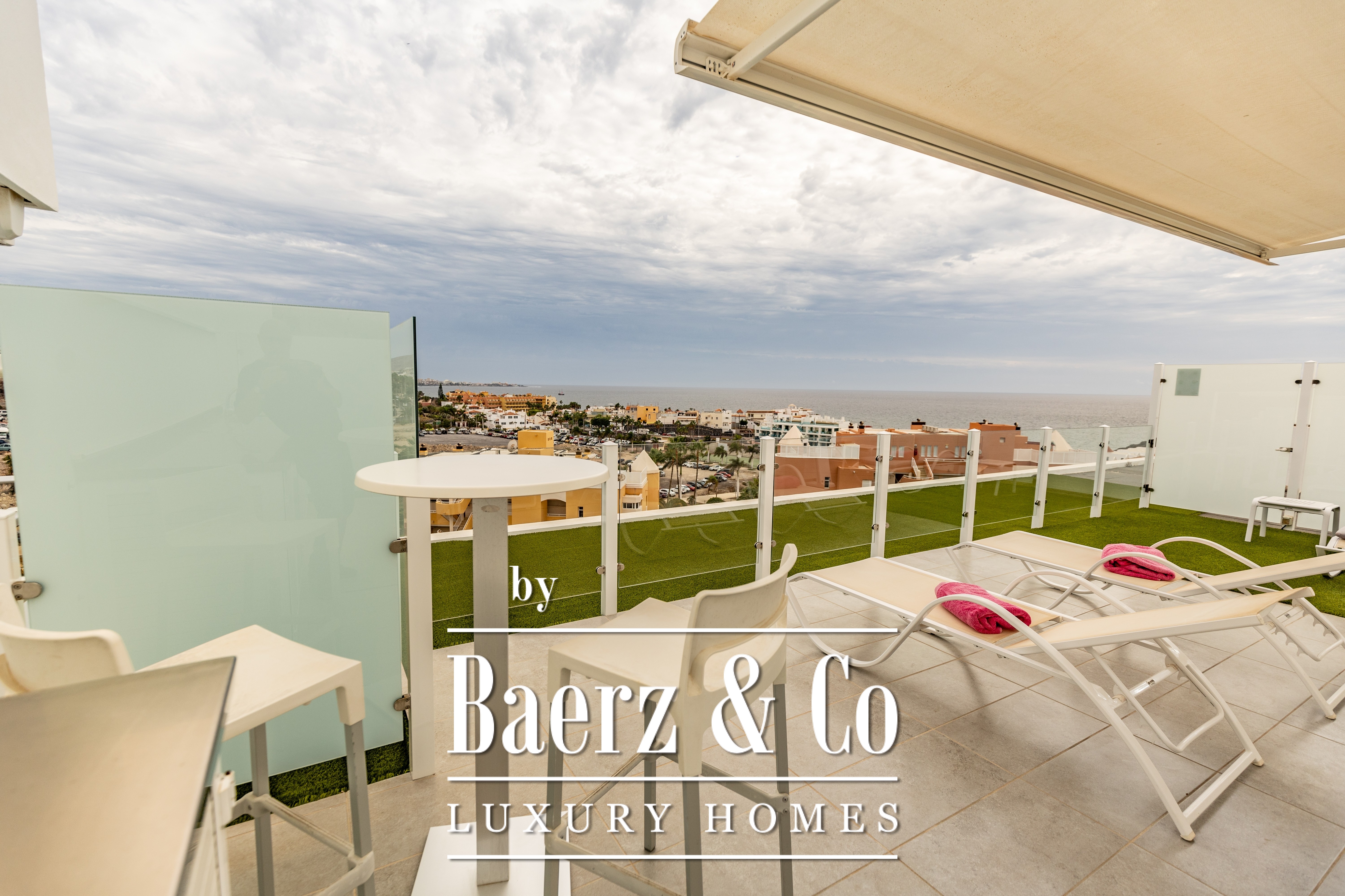 Penthouse Costa Adeje offers refined contemporary minimalism within the rarefied setting of Caleta Palms, a celebrated address on the southern coast of Tenerife. This 100 m² penthouse is complemented by 150 m² of terraces, including a private roof terrace with an outdoor shower, granting unobstructed views of the Atlantic, the mountains and the village of La Caleta.