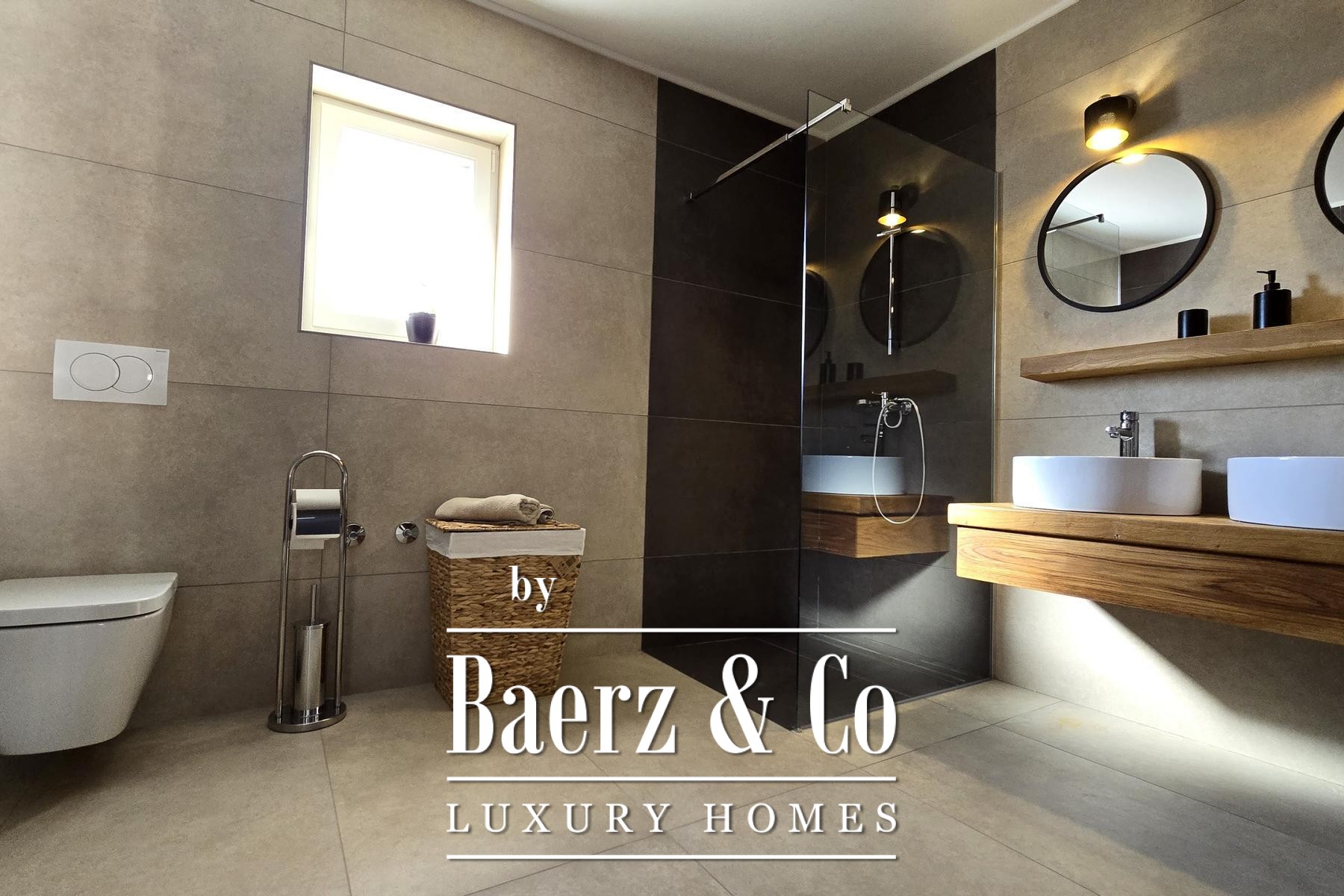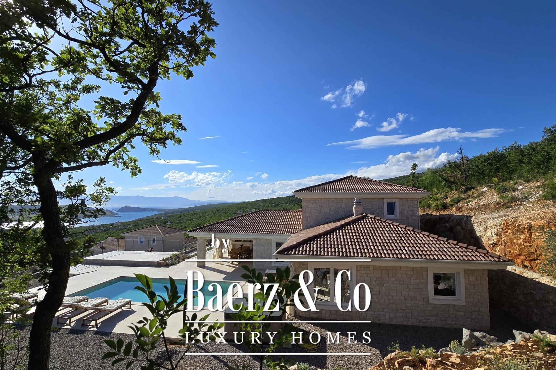 Villa Crikvenica invites a sense of place, marrying traditional stonework with contemporary comfort across 200 m². The property, a refined villa in Crikvenica, is set within a 1,050 m² Mediterranean plot, bordered by native olive trees and natural rocks. Designed around privacy and restful views, this villa offers five bedrooms and five bathrooms, distributed across two light-filled floors. Upstairs, bedrooms open to panoramic sea views, while on the ground floor, social life converges in an expansive living area and a kitchen-dining space that blends modern technology with authentic materials.