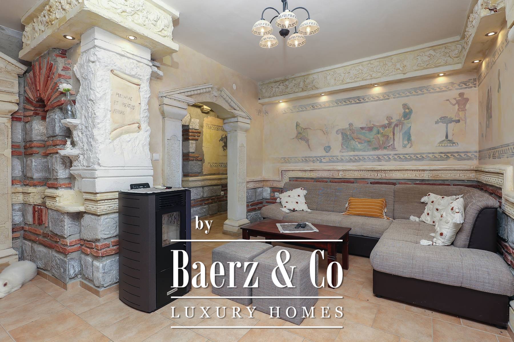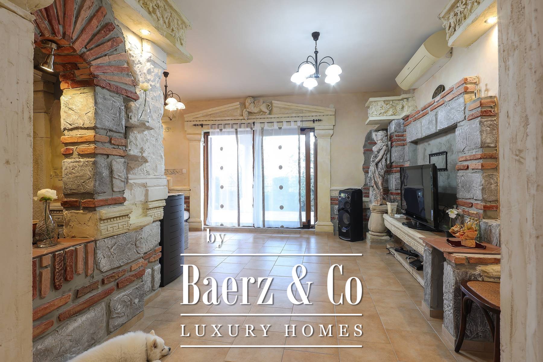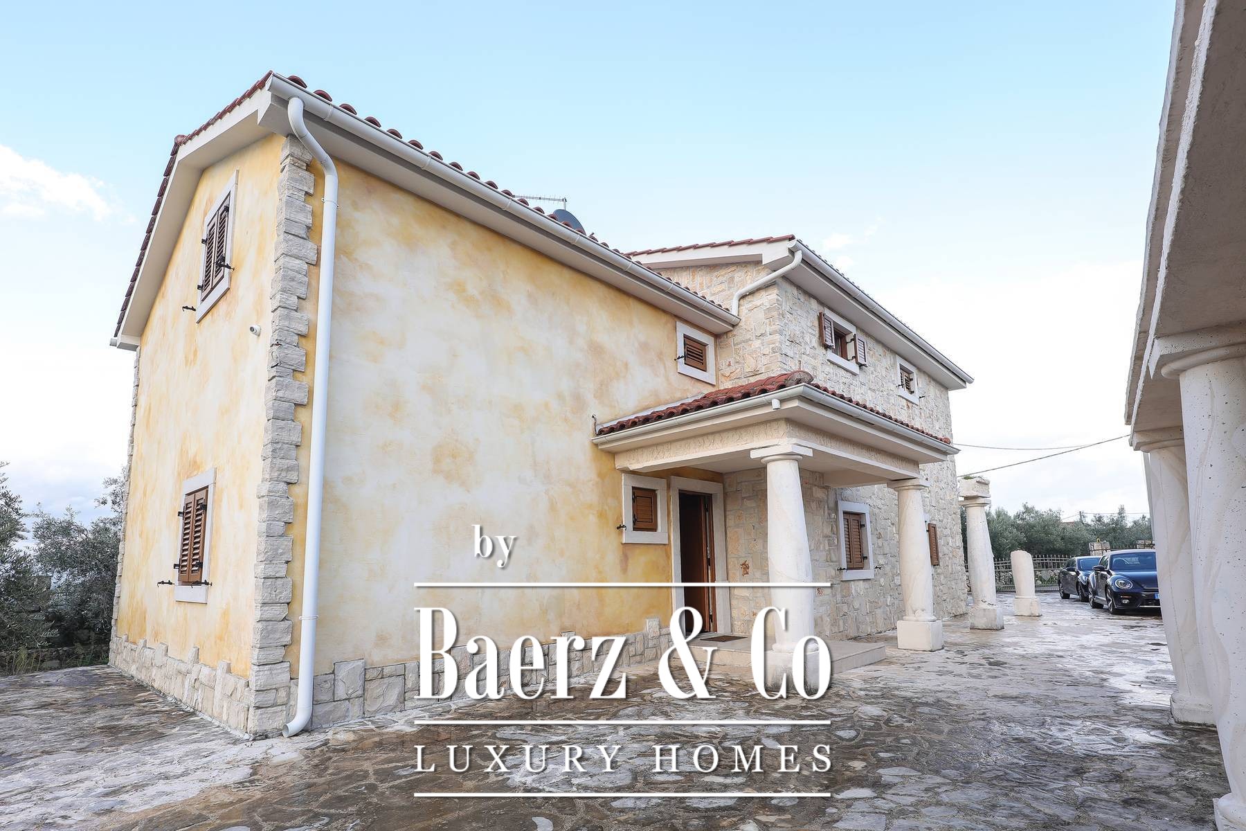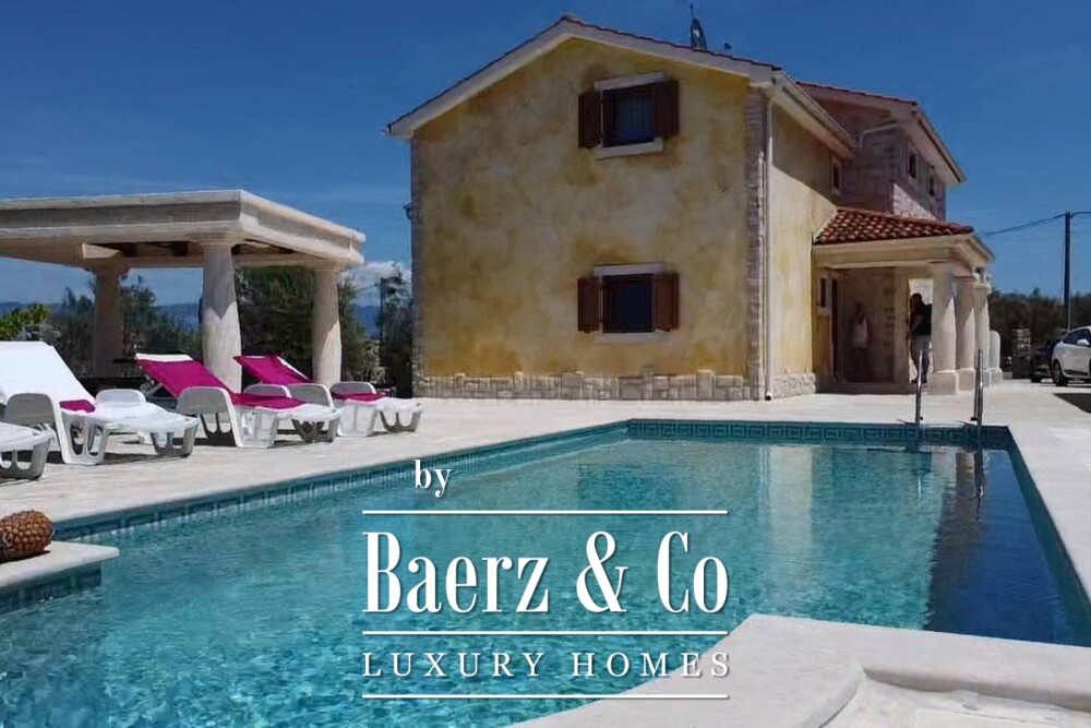 Townhouse Dobrinj offers an authentic experience of Mediterranean living, balancing rustic artistry with modern comfort on the island of Krk. This prominent property provides 550 m² of living space, comprising five spacious bedrooms, each with its own bathroom, ensuring both privacy and ease for extended families or guests. Set within a generous 1,026 m² plot, the home features a carefully cultivated atmosphere through hand-selected decor and artistic elements that invite a sense of warmth and hospitality.