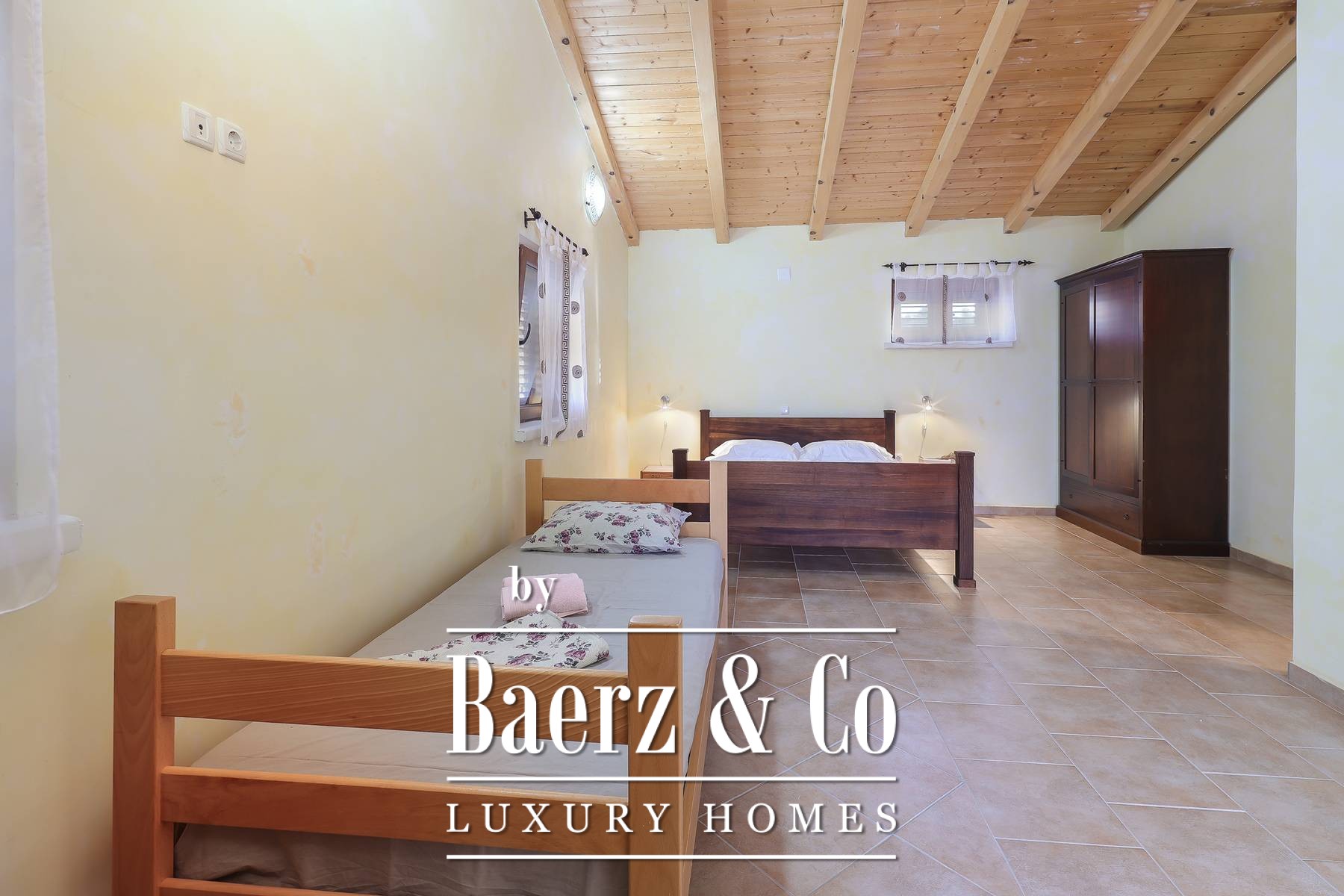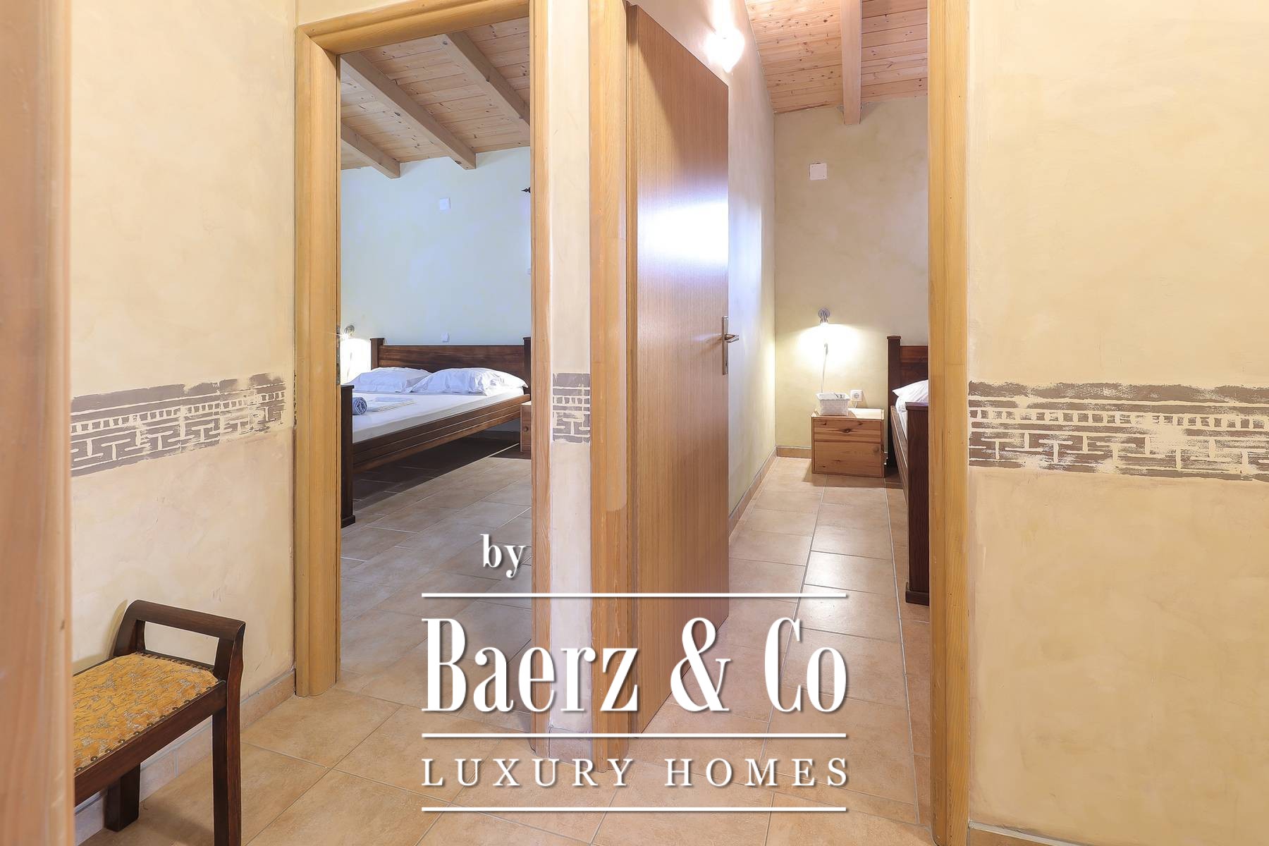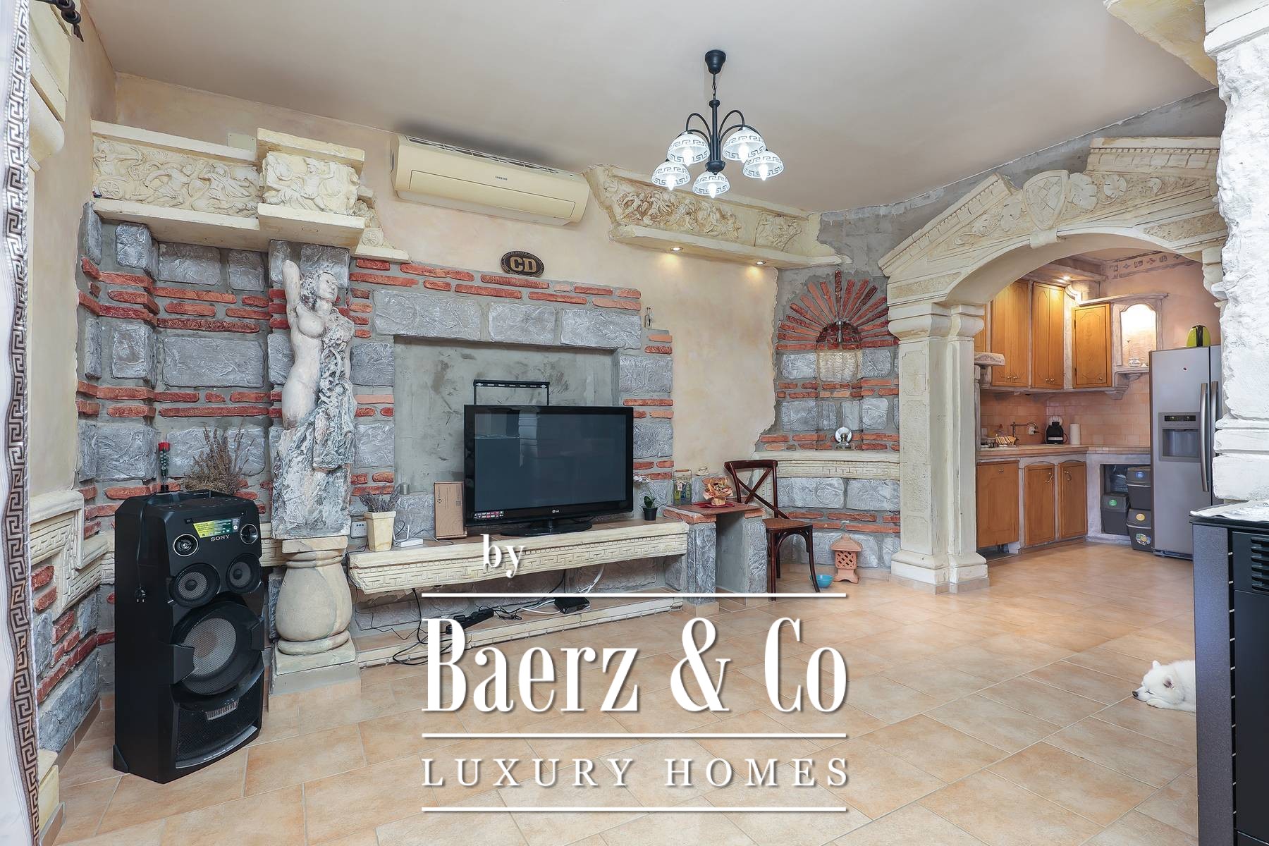 Townhouse Dobrinj offers an authentic experience of Mediterranean living, balancing rustic artistry with modern comfort on the island of Krk. This prominent property provides 550 m² of living space, comprising five spacious bedrooms, each with its own bathroom, ensuring both privacy and ease for extended families or guests. Set within a generous 1,026 m² plot, the home features a carefully cultivated atmosphere through hand-selected decor and artistic elements that invite a sense of warmth and hospitality.
