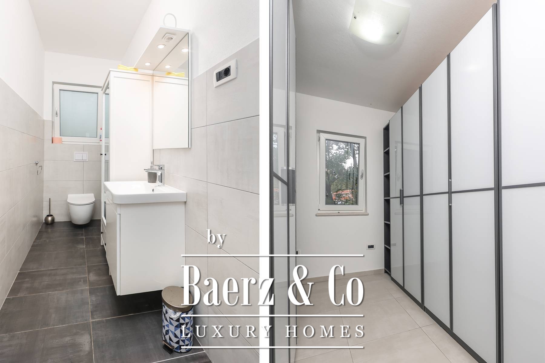 Further amenities—a garage, wine cellar, ventilated engine room—attest to the house’s rare functionality. Outdoor life is enriched with a dedicated kitchen overlooking a yard and natural stream. This luxury townhouse for sale in Krk Island merges nature’s quiet energy with contemporary design, offering a canvas for permanent residence, retreat, or discreet Mediterranean investment.