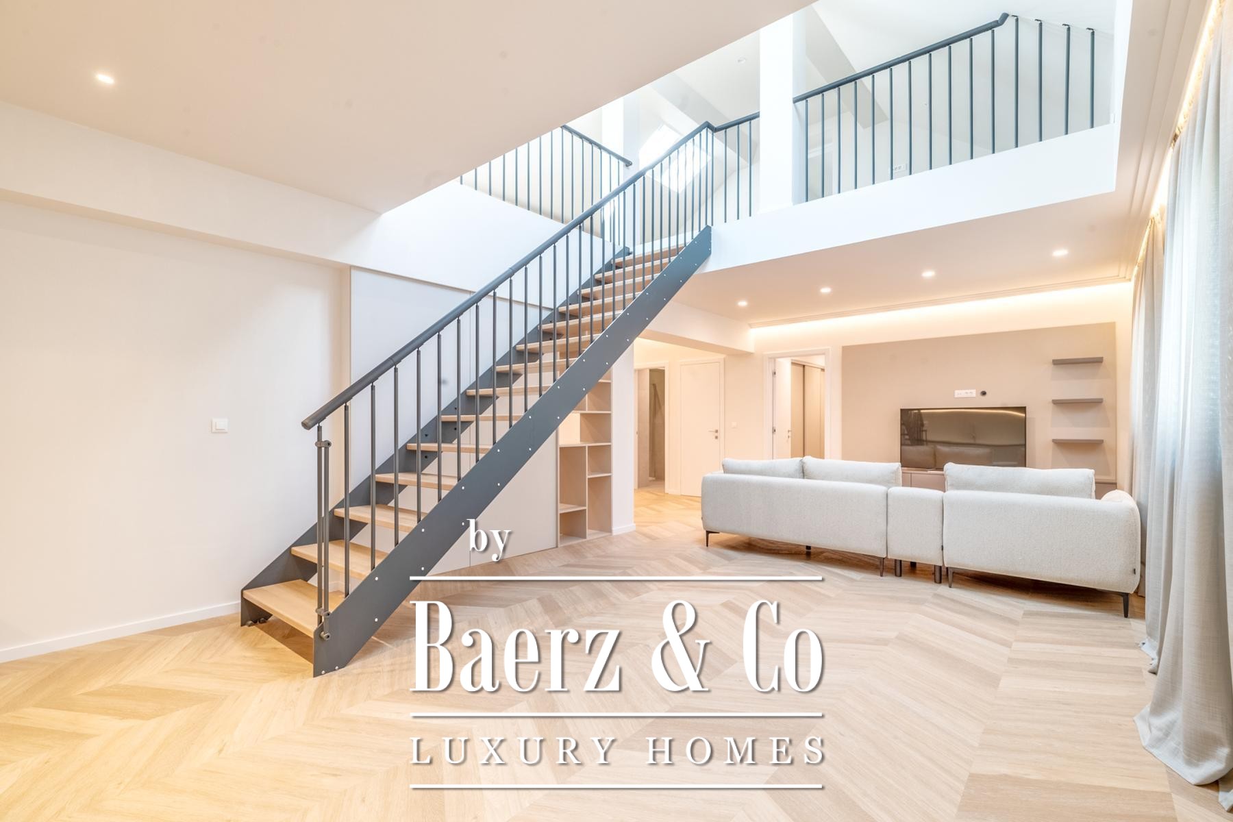 Zagreb, Bogovićeva, luxurious four-bedroom apartment, NKP 150 m2 in the very center of the city.Located on the third floor of a well-maintained building with an elevator. It spreads over two floors.On the lower floor there is a living room with a kitchen, dining room and access to the terrace, two bedrooms, one of which is a master with a private bathroom and walk-in closet, additional bathrooms, laundry room and storage.On the upper floor