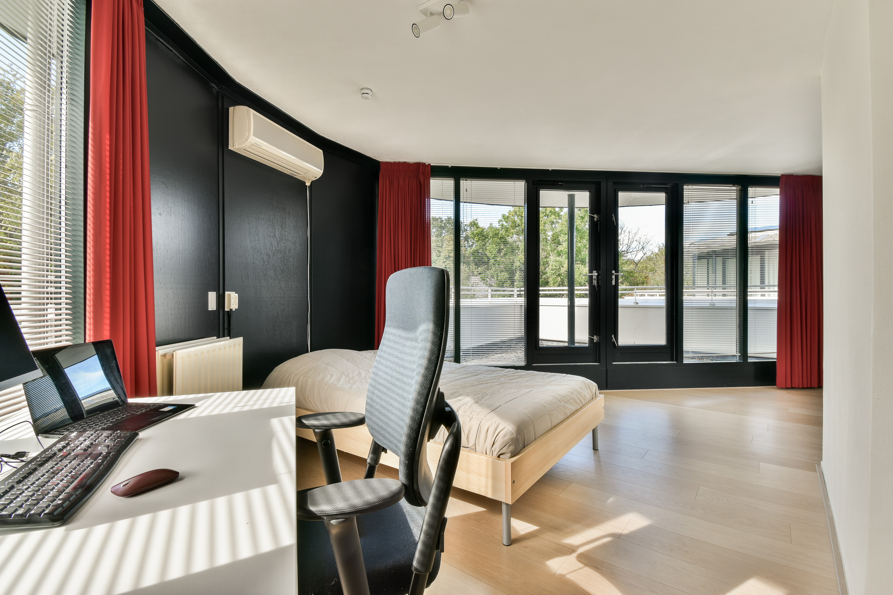 Spacious studio or office featuring French doors leading to the rooftop terrace. Equipped with air conditioning.