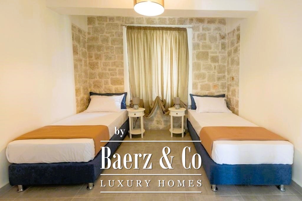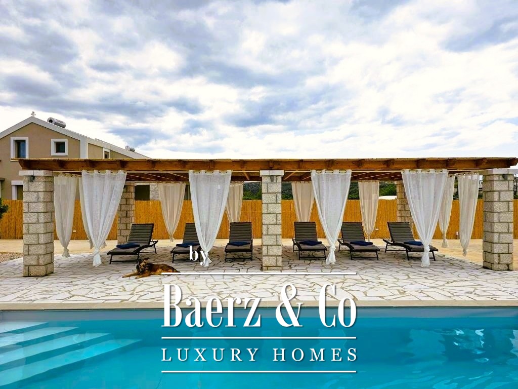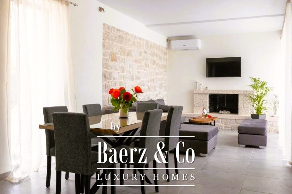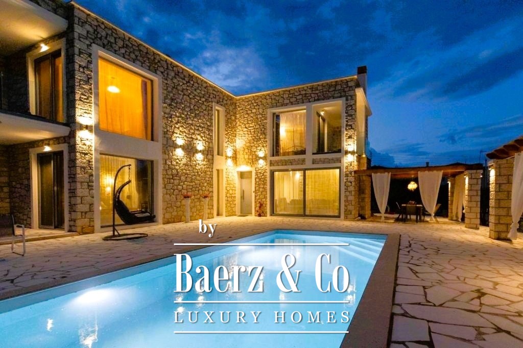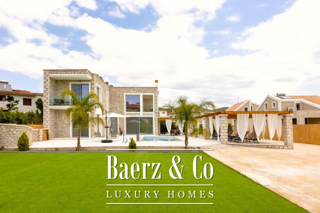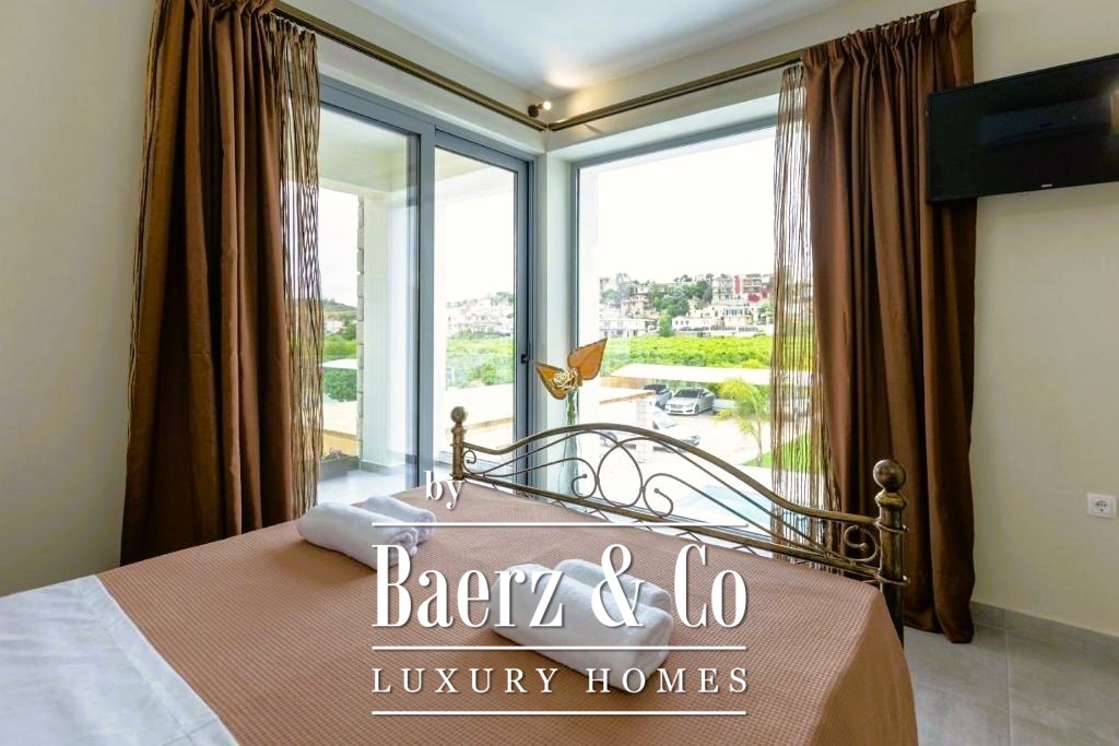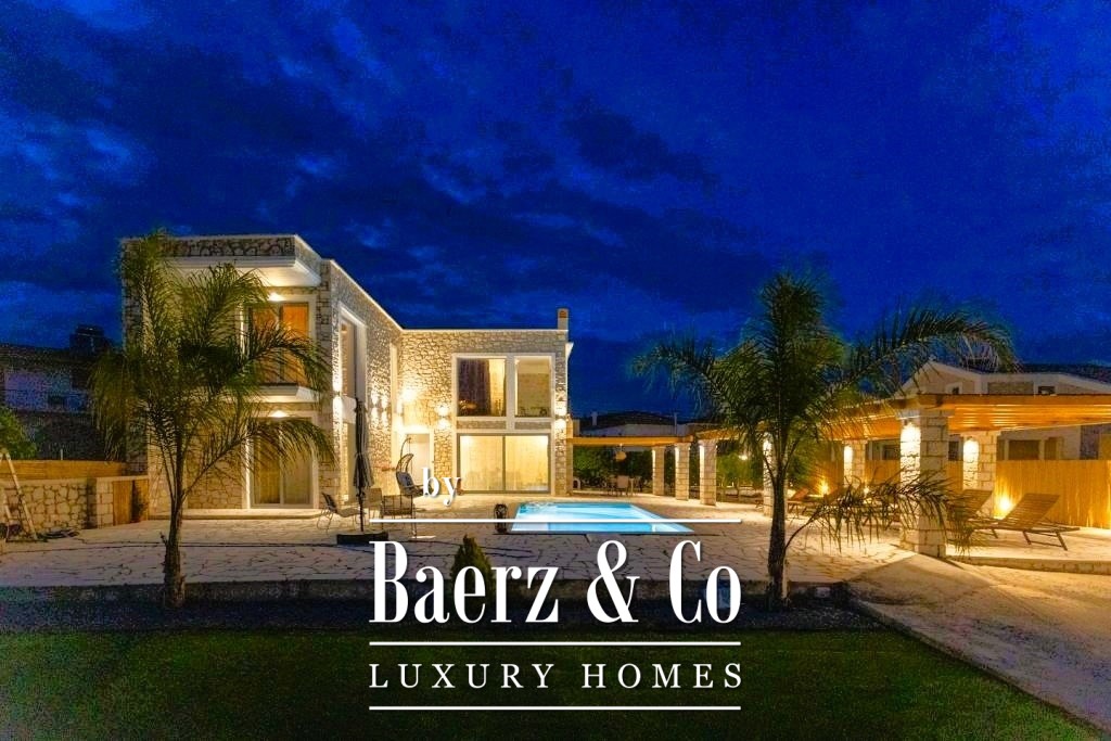 In the area of Drepano and just 900m. from the nearby beaches, an independent, luxurious detached house with a total area of 170 m2, on its own plot of 2,251 m2, is available for sale. It is an architecturally beautifully designed residence, which consists of two levels, with large comfortable indoor and outdoor spaces. On the first level, which is on the ground floor, we find a comfortable living room with a fireplace, a semi-separate kitchen, a w.c. and a master bedroom overlooking the pool. The second level (first floor) consists of three master bedrooms, each with its own bathroom. The bedrooms are spacious, bright and offer comfortable spaces for relaxation, with beautiful openings from the balconies and unobstructed views. One of the main features of this residence is the property`s beautiful swimming pool. Large in size and well designed,