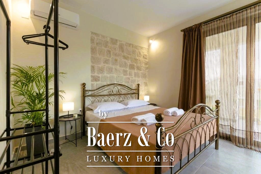 the pool offers opportunities to relax and enjoy the sunny outdoor space. The location of this stone detached house is excellent, with easy access to nearby amenities and services as it is only 100m. from the center of Drepano. At the same time, it offers an alternative life in nature, with green landscapes and amazing views. The surrounding area of the house will be landscaped with trees and palm trees, beautiful pergolas to shade the outdoor dining area, a 25 sq.m. swimming pool and covered parking spaces for 4 cars. The property will have photovoltaic panels on the roof, which allows to save electricity and reduce energy costs, a solar water heater, aluminum windows with double glazing and screens and air conditioners in all areas for cooling and heating. It is worth mentioning that the plot has a remaining 130 sq.m. building balance.