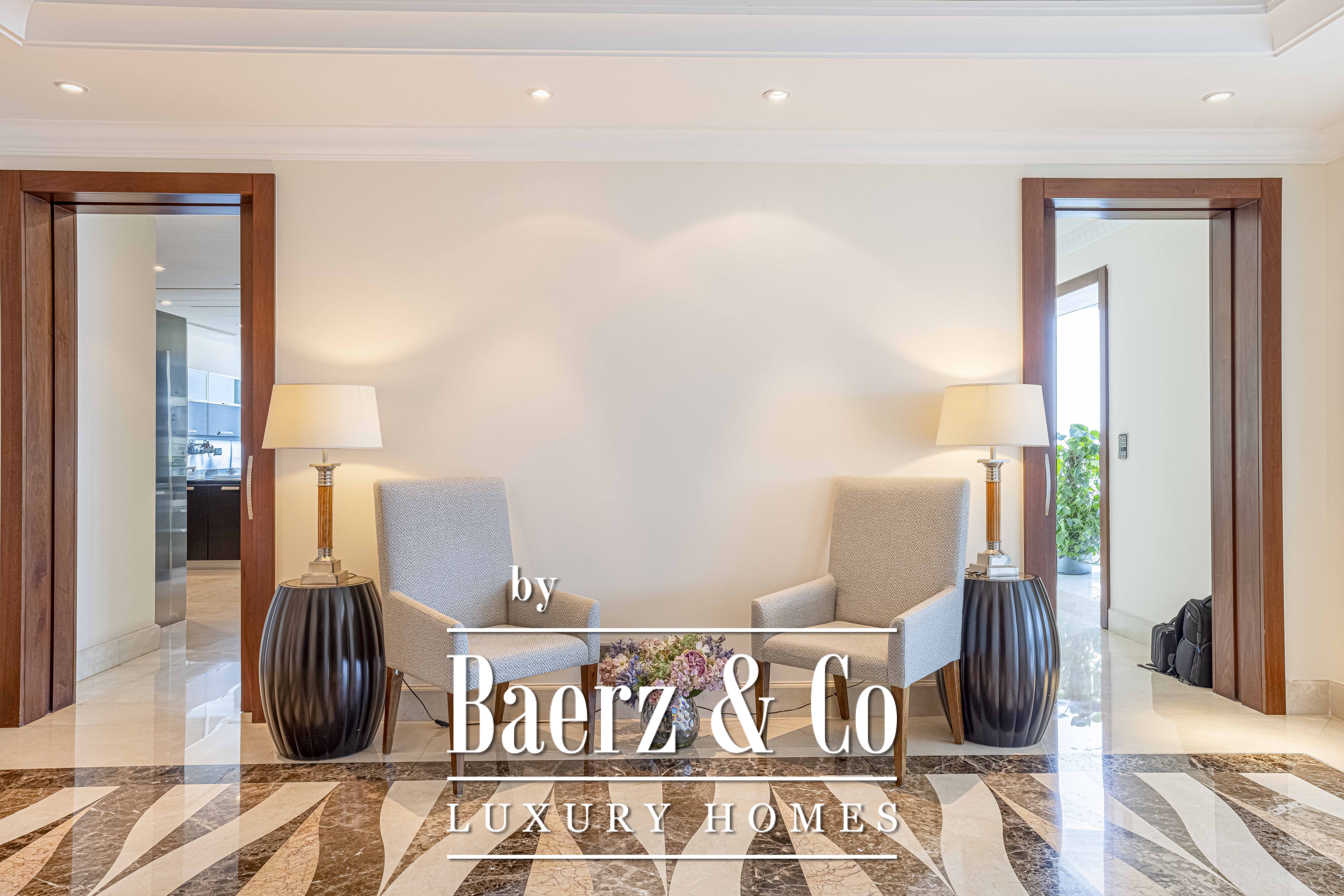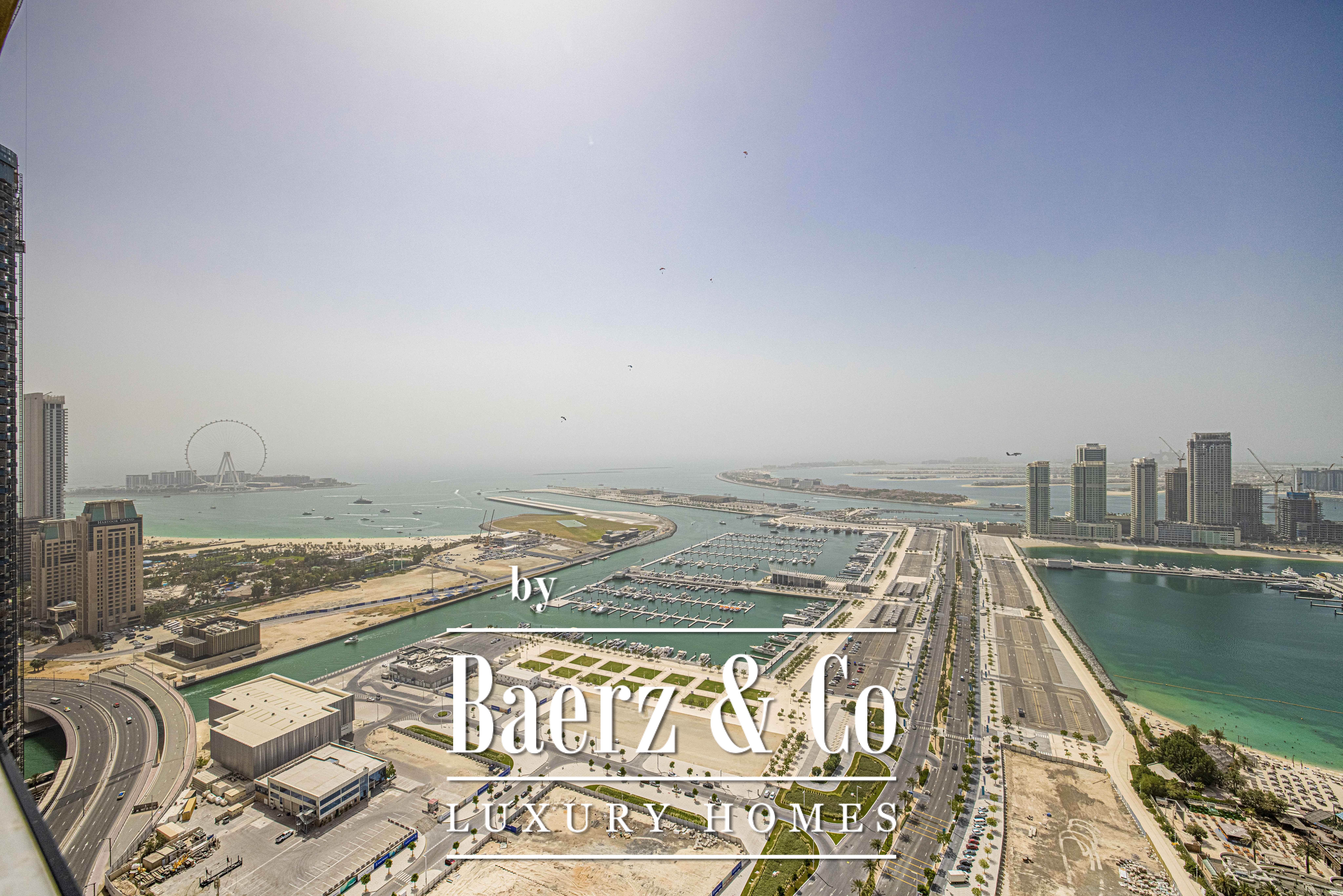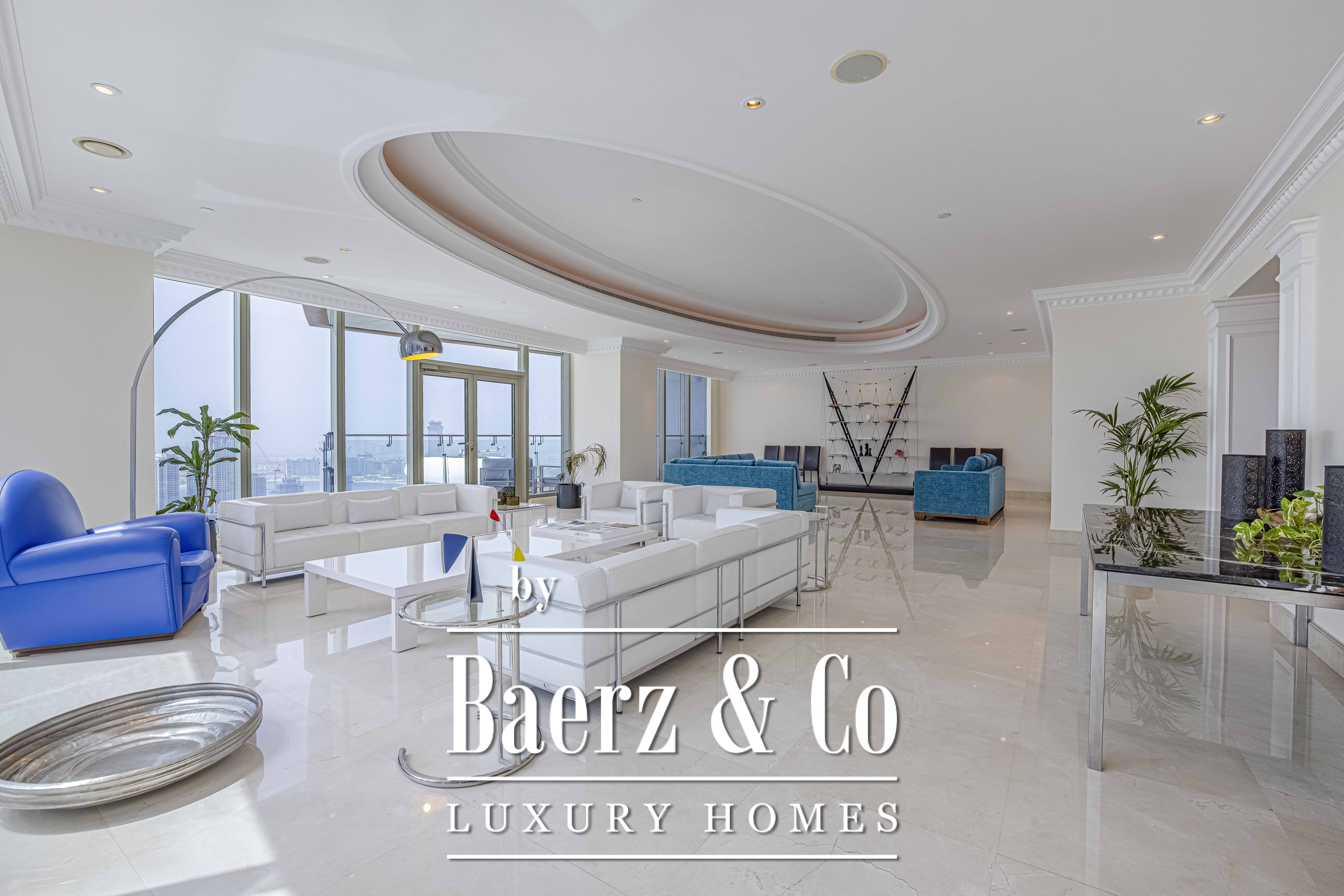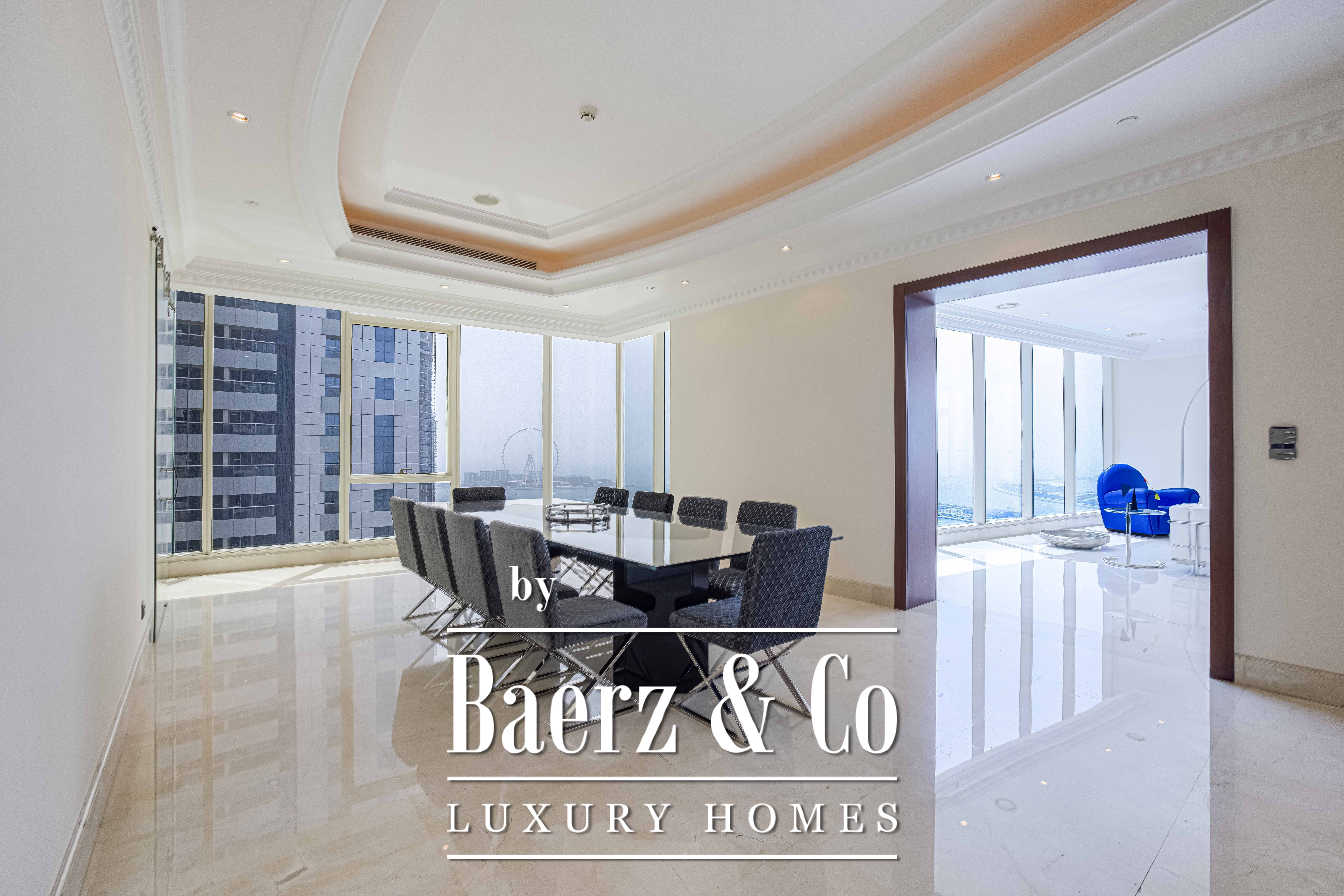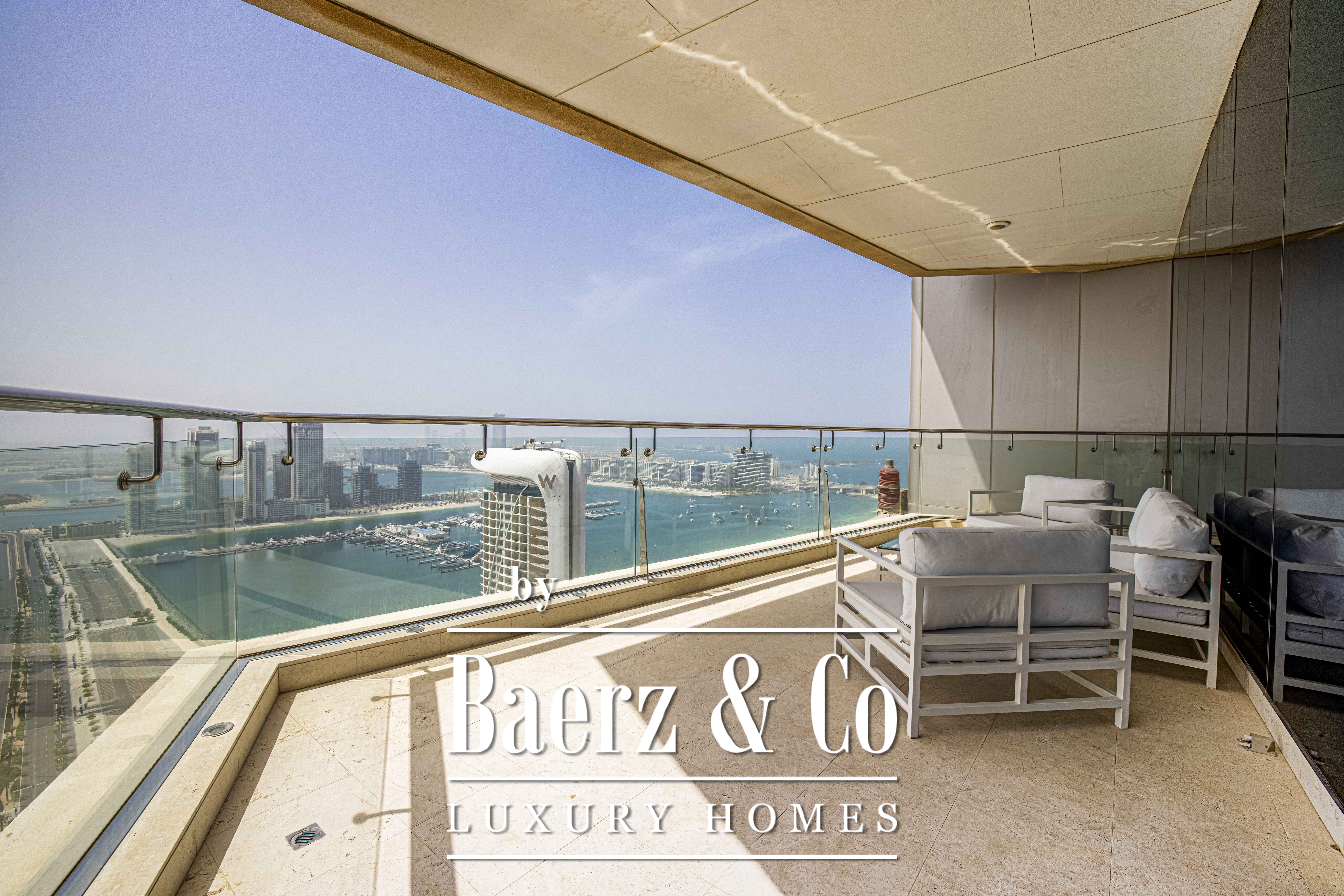 Le Reve is synonymous with wealth and luxury and is home to Dubai's A-list HNWI's. Spanning 52 stores high, it consists of 80 contemporary and classic style penthouses, all with panoramic views of Dubai's gorgeous coastline. This half floor penthouse is situated on the left-hand side allowing for unobstructed view of Ain Dubai and Palm Jumeriah and is vacant on transfer. As you enter you immediately get a feel of classic meets contemporary. The lounge is designed in a minimalist contemporary style, and as you make your way to the