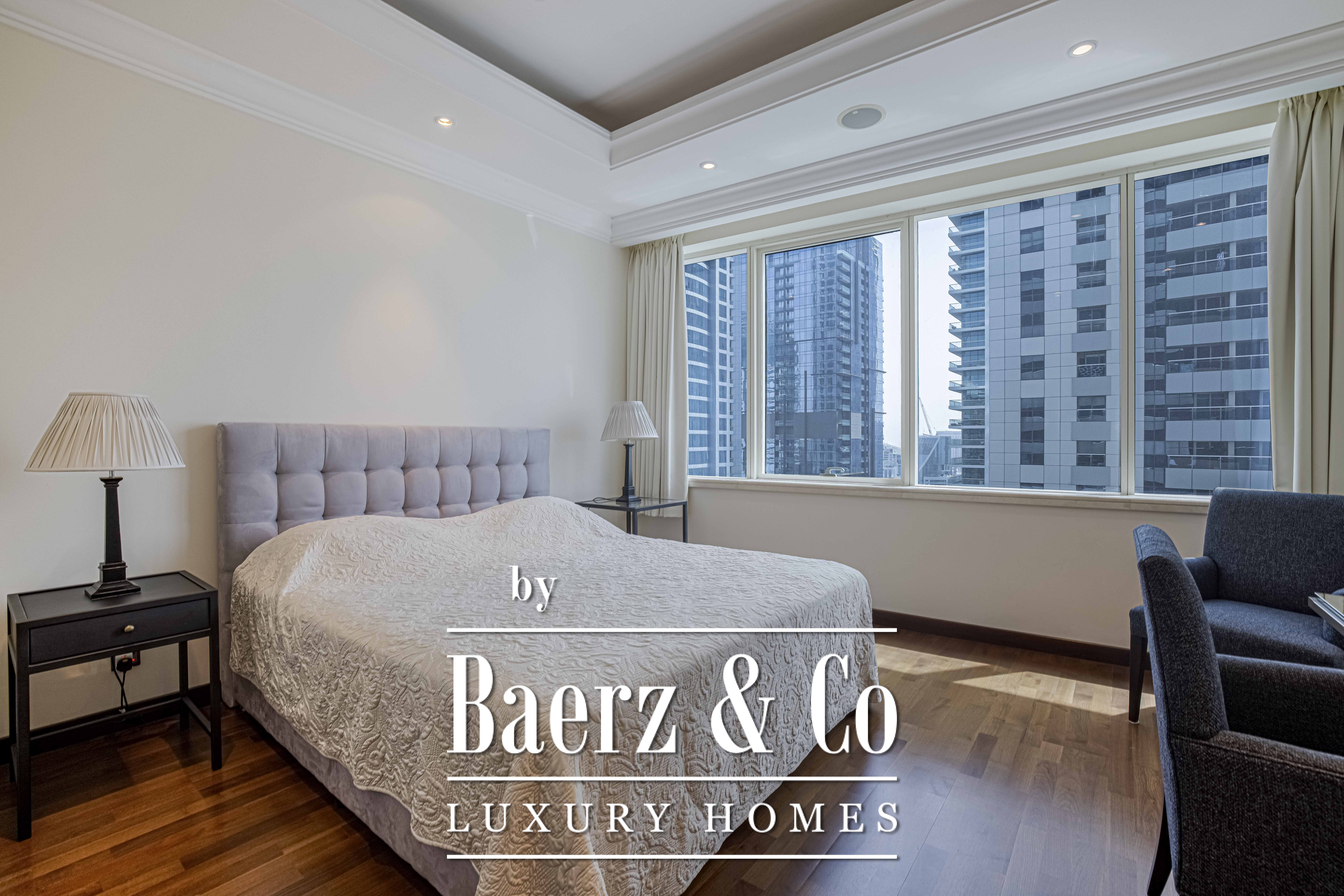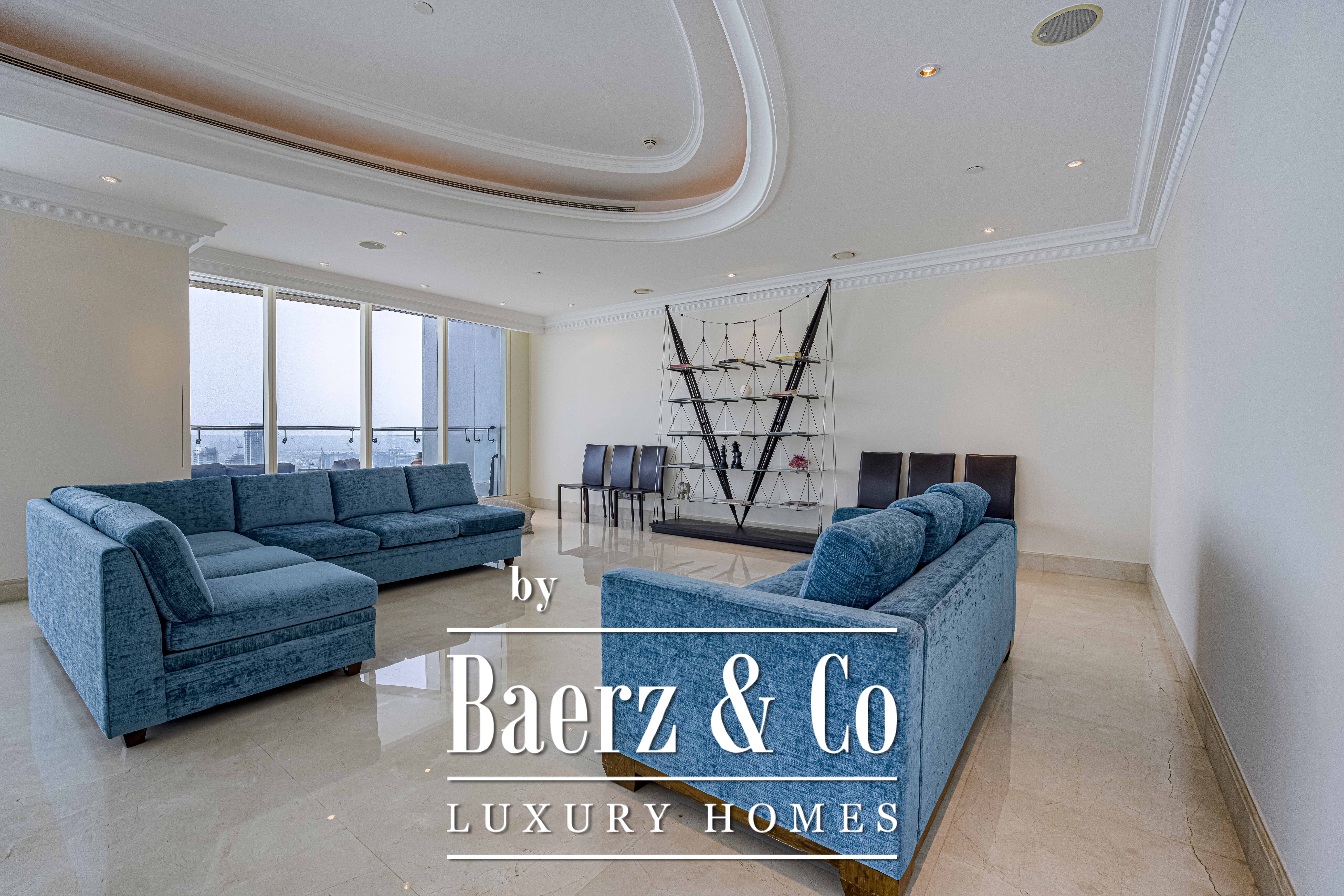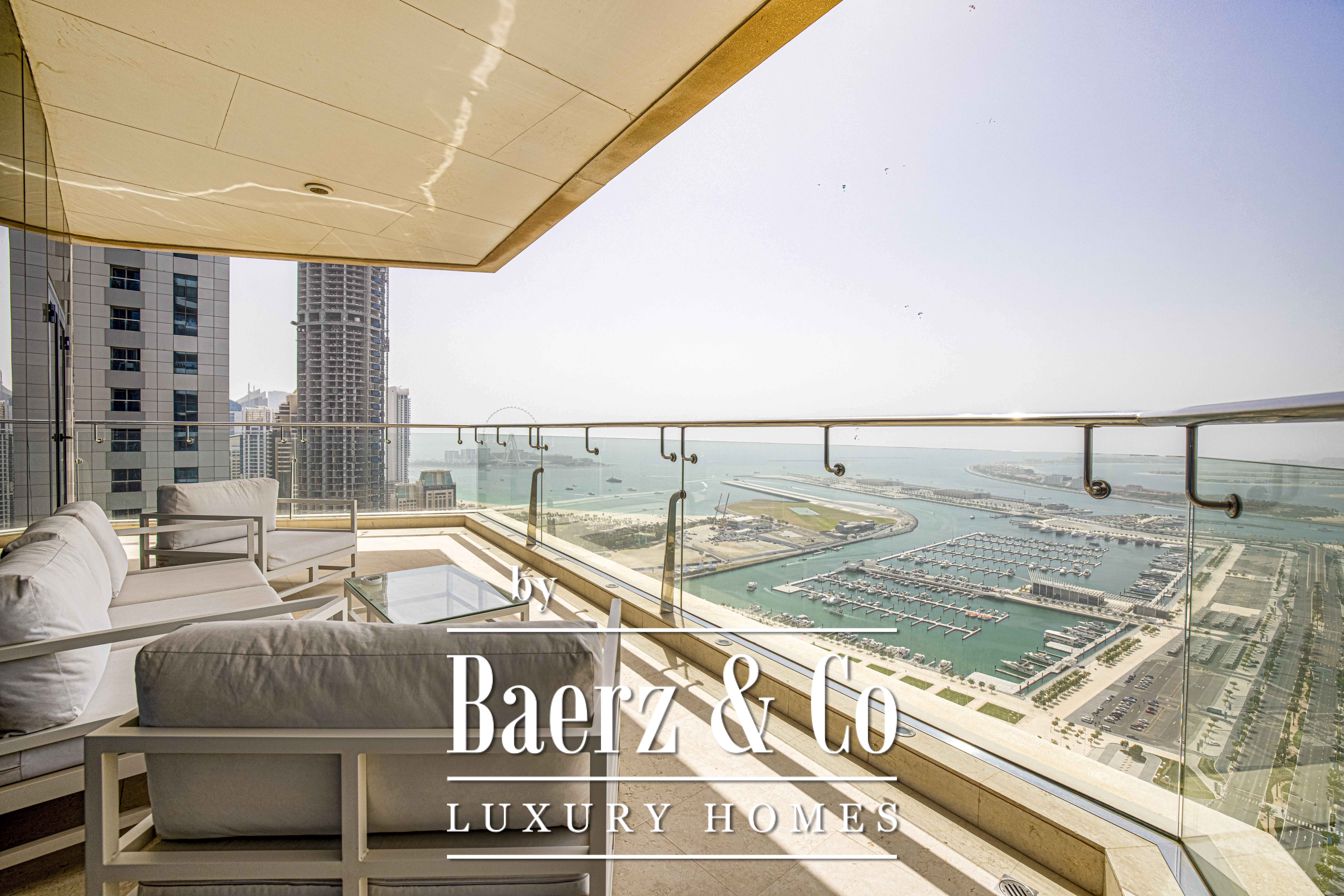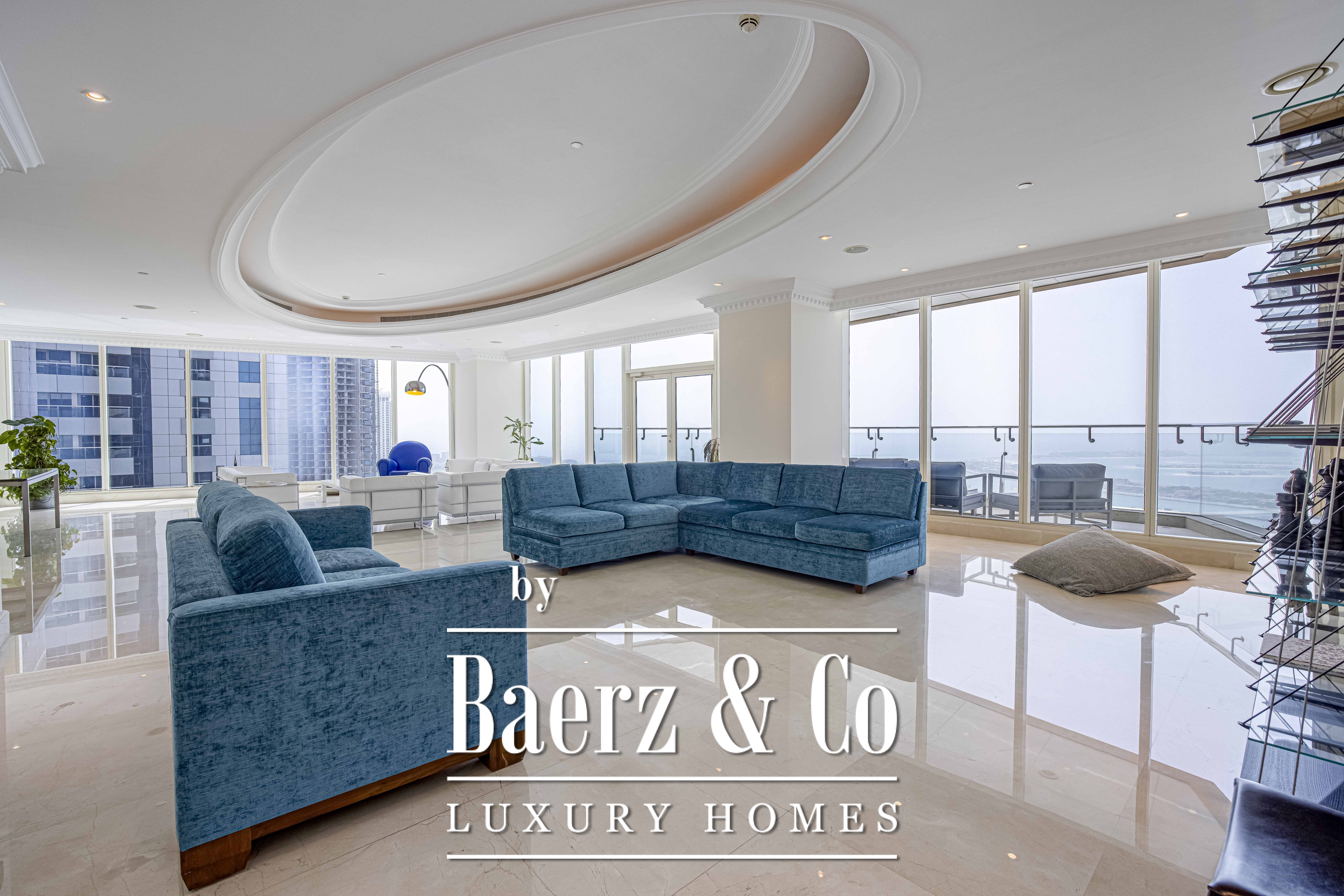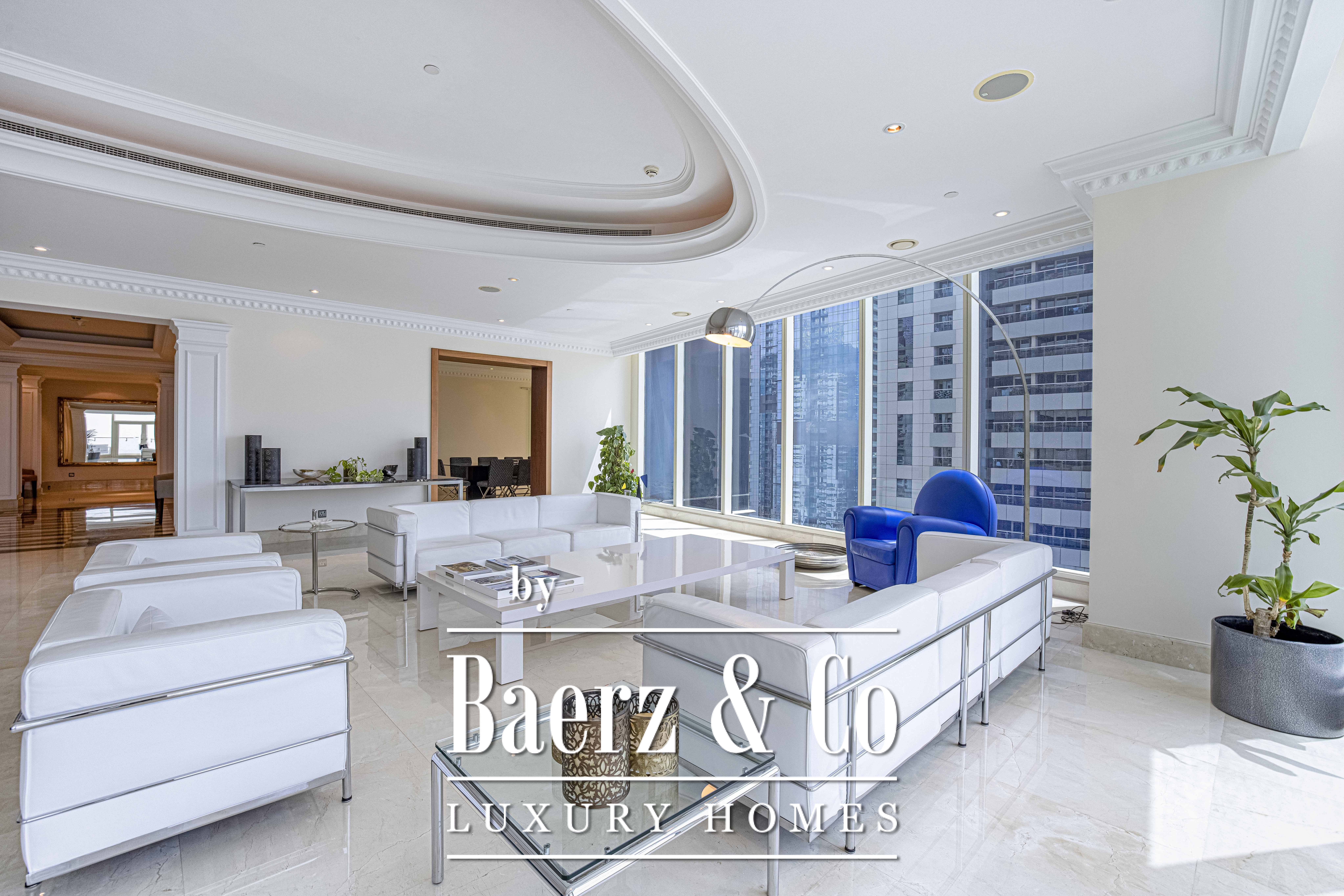 Le Reve is synonymous with wealth and luxury and is home to Dubai's A-list HNWI's. Spanning 52 stores high, it consists of 80 contemporary and classic style penthouses, all with panoramic views of Dubai's gorgeous coastline. This half floor penthouse is situated on the left-hand side allowing for unobstructed view of Ain Dubai and Palm Jumeriah and is vacant on transfer. As you enter you immediately get a feel of classic meets contemporary. The lounge is designed in a minimalist contemporary style, and as you make your way to the
