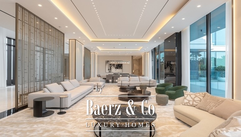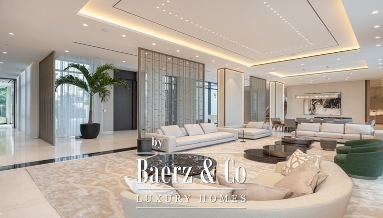 • Lavish Living Spaces: Spanning 33,350 sq. ft. (3098m2), this meticulously crafted home boasts 6 bedrooms and 7 bathrooms, each designed with exceptional attention to detail. Floor-to-ceiling windows flood every room with natural light while offering panoramic views of the lush Hills Grove community, the golf course, and the iconic Downtown Dubai skyline.