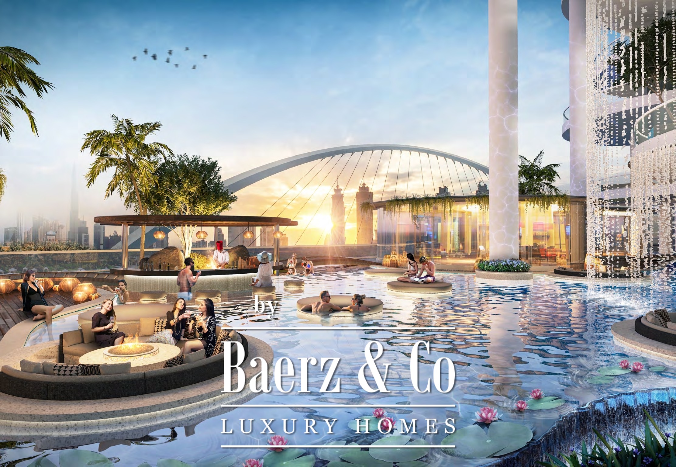 * Infinity-edge swimming pool overlooking Safa Park and Dubai Canal
