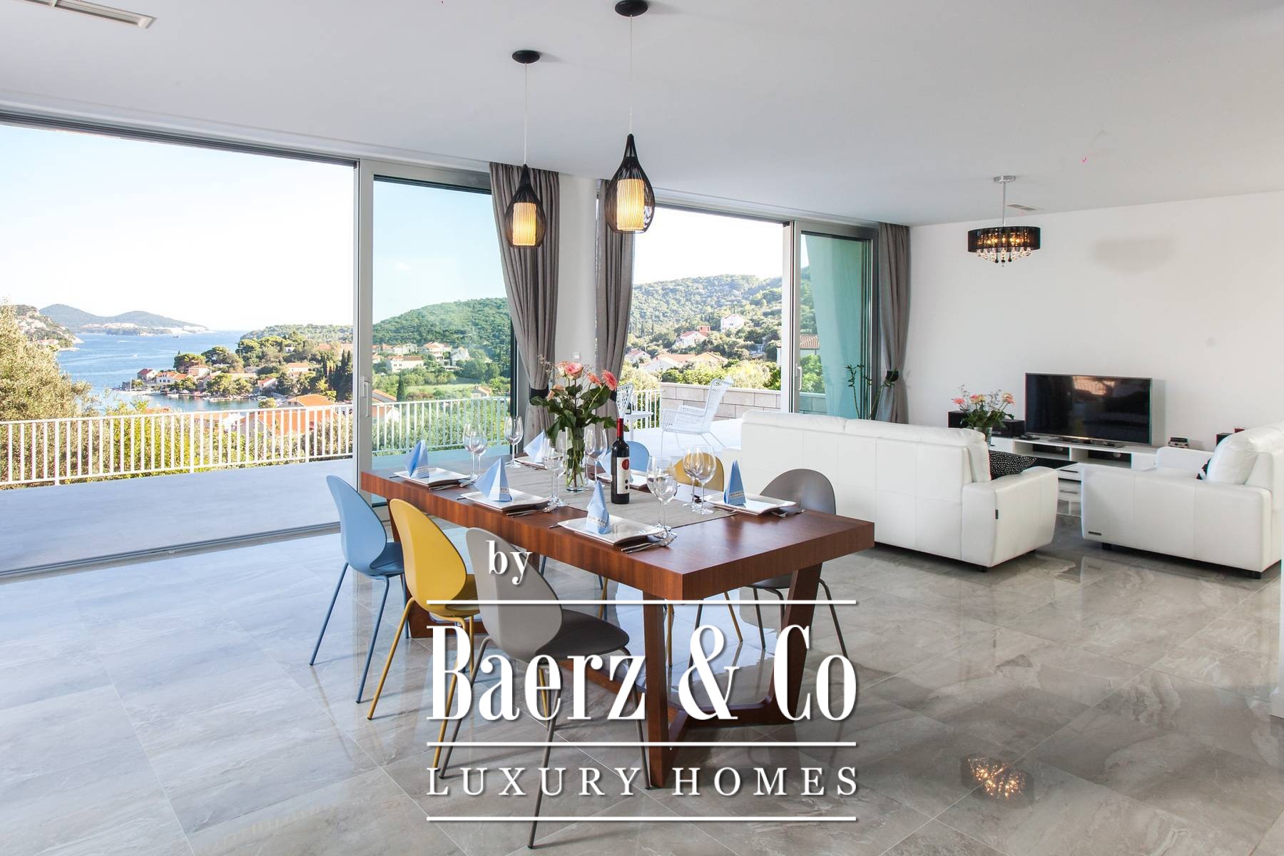 toilet, and utility room. On the ground floor and the first floor, there are a total of 5 bedrooms, each with its bathroom, equipped with underfloor heating and access to the terrace.Each room has an air conditioner for heating and cooling purposes. The property is 250 meters from the sea and 10 kilometers from Dubrovnik.Please request for more information.
