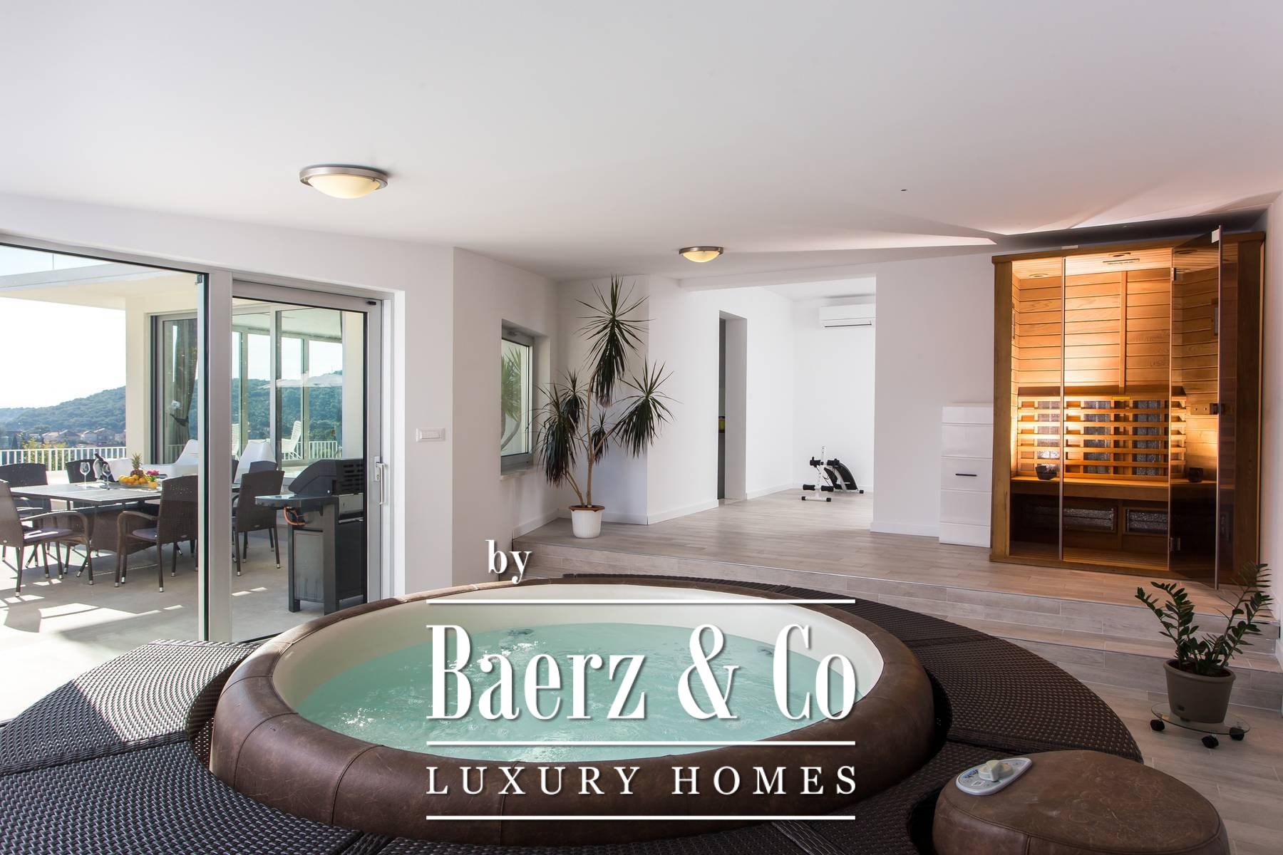 Dubrovnik area - Zaton, urban villa 415 m2 with a swimming pool and a beautiful view of the sea on a plot of land of 741 m2.The villa extends over 3 floors with a swimming pool and 6 private parking spaces, categorized as a 5-star holiday home, with lots of natural light throughout the day.The basement has a large living room, kitchen, dining room, exercise room, sauna,