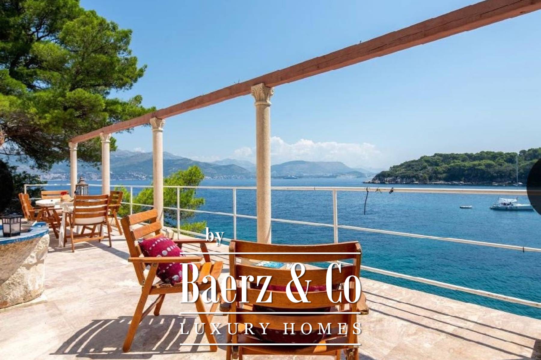 Villa Koločep Dubrovnik Okolica occupies an enviable first row to the sea on the island of Koločep, the closest of the Elaphite Islands to Dubrovnik. This villa, set on a 918 m² plot, offers 400 m² of living space designed for elegant island living and direct engagement with nature. The villa is arranged across two floors. On the ground floor, a generous living room and a bedroom both enjoy direct access to a terrace that captures uninterrupted sea and island greenery vistas. An internal staircase links this space to the upper floor, where the main entrance opens to a hallway, two additional bedrooms, a bathroom, and a kitchen with dining area. This floor also features a terrace sheltered by foliage, offering sweeping views of the Adriatic. The estate includes a detached unit with a bathroom, ideal for guest accommodation. The property offers a sense of seclusion, light, and the gentle pace of island life, yet stands just a short distance from Dubrovnik’s historic character. Villa Koločep Dubrovnik Okolica requires adaptation and renovation to reach its fullest expression.