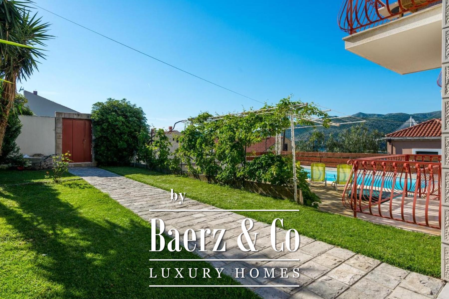 Twelve bedrooms and twelve bathrooms serve a variety of living arrangements, supporting privacy and versatility for extended family or discreet guests. The 32 m² pool sits within a thoughtfully landscaped 710 m² garden, providing a tranquil setting elevated by an uninterrupted sea view. Access is exclusively by foot, ensuring a rare degree of seclusion and calm despite the property’s proximity to Dubrovnik’s renowned hotels, beaches, and daily amenities.