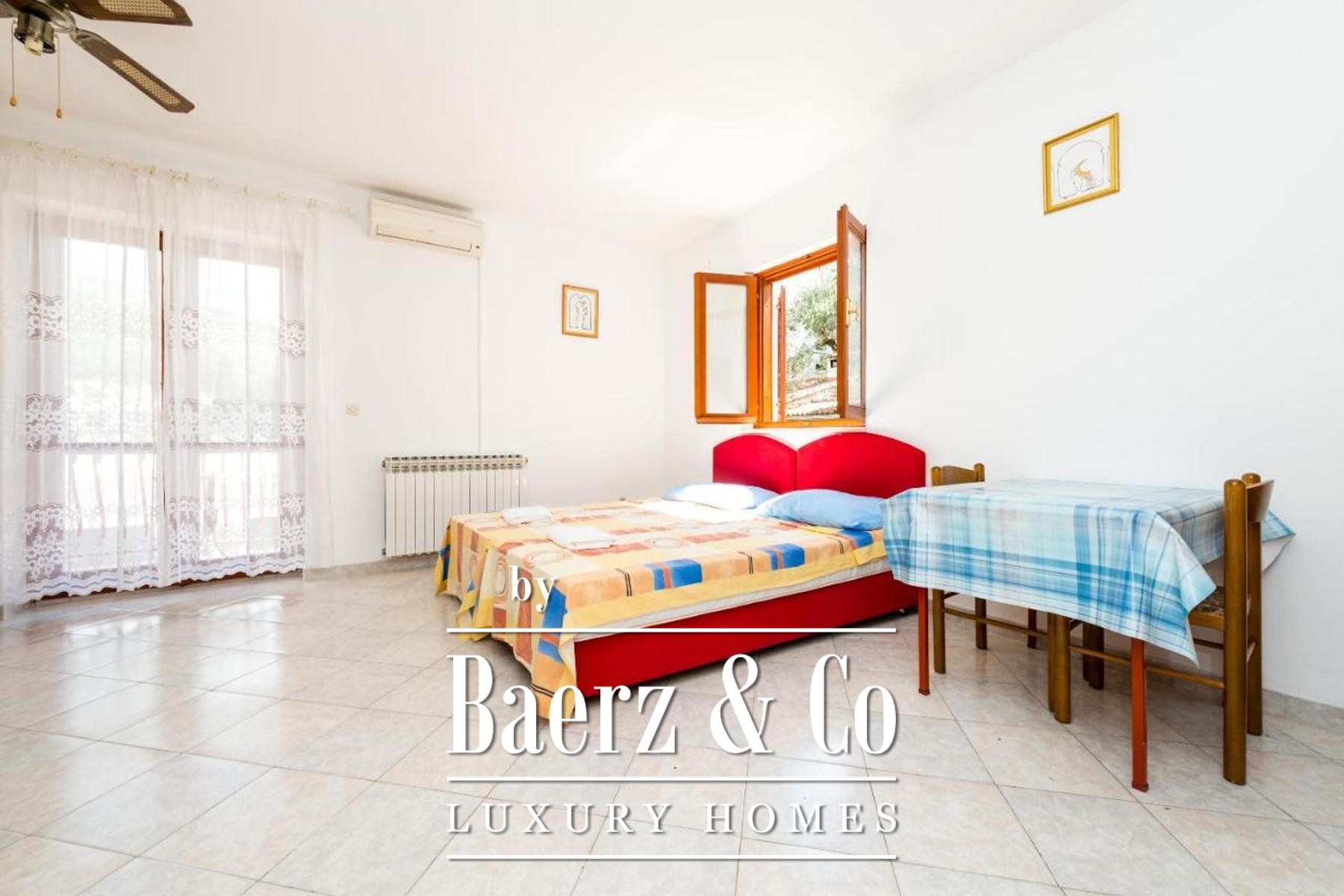 This rustic house Dubrovnik offers a substantial 457 m² of living space on the Lapad Peninsula, embracing the city’s vibrant coastline and cultural pulse. Distinguished by its authentic stone construction, the residence is divided across four floors, each an independent apartment with private ownership, seamlessly connected via both internal and external staircases.