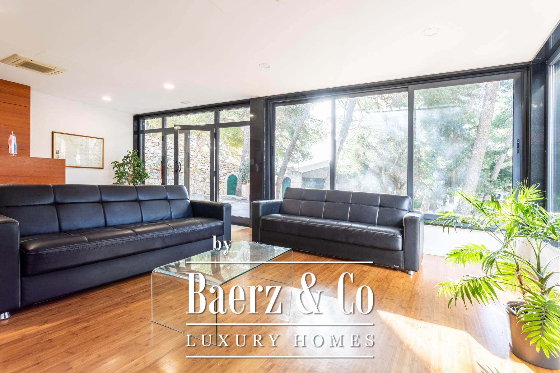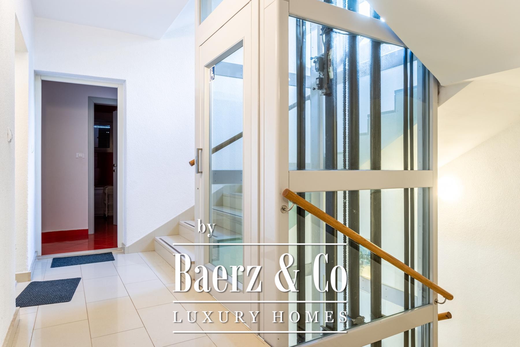 The lower section of the estate houses an additional apartment with its own kitchen, bath, and terrace, plus further annex rooms. Twelve vehicles may be accommodated in the underground garage with space for four more outdoors, ensuring ease for gatherings. The villa is securely enclosed for privacy, opening to panoramic views across the Gulf of Omis. Access to walking paths and nature completes the sense of retreat. For those seeking a luxury villa for sale in Dugi Rat, this estate offers an ensemble of spaces designed to enrich family time and host with ease.