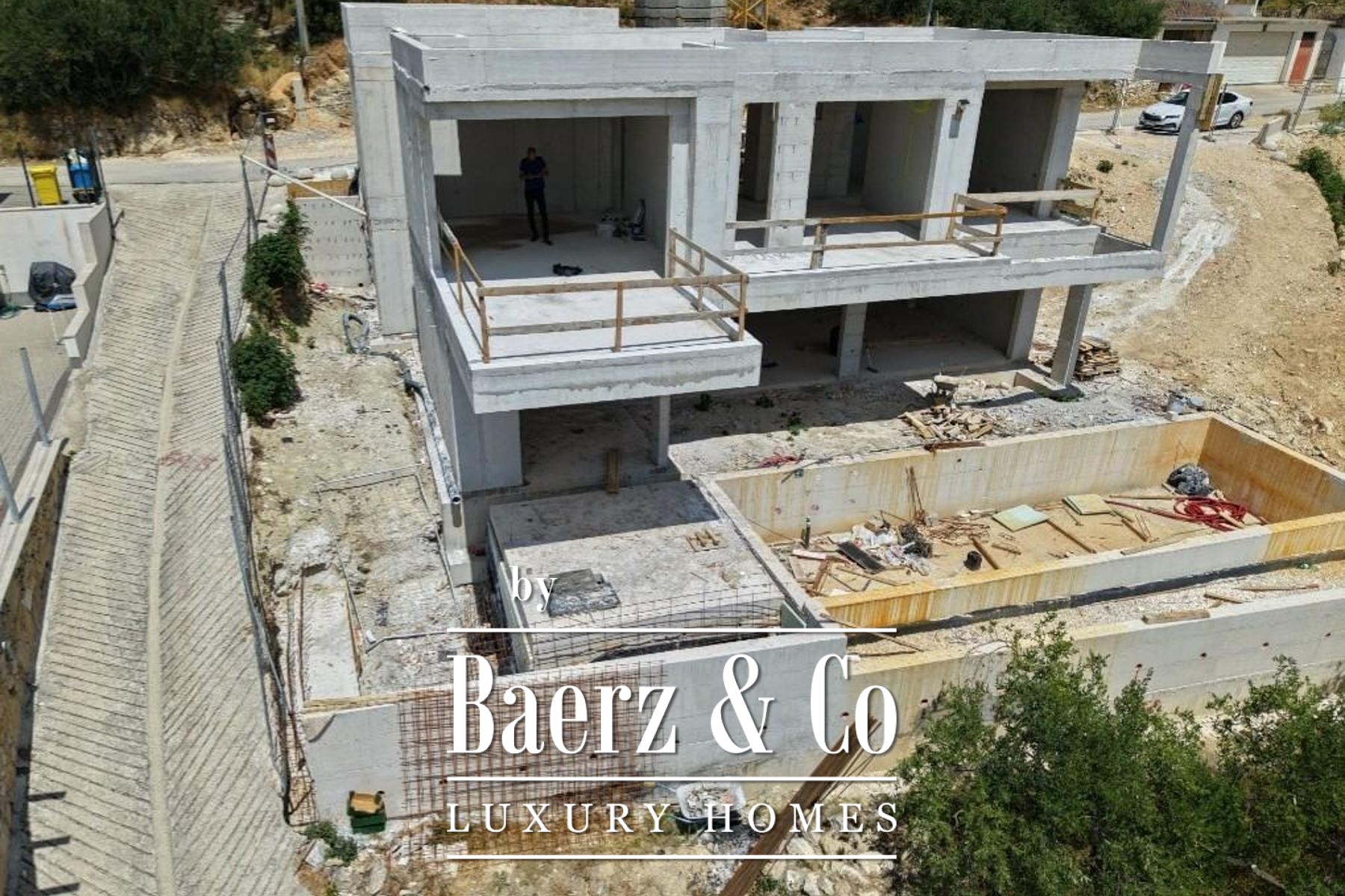 • Two additional bedrooms, each with en-suite bathroom and private terraceParking: Garage for 2 cars + 2 outdoor parking spaces with electric vehicle charger.The floors are interconnected by modern cantilever (floating) stairs.The entire southern facade of the villa is made of 3.10 m high glass walls with Schüco ALU profiles, providing maximum natural light and unobstructed views of the sea and islands.The villa is equipped with modern and top-notch technical solutions: