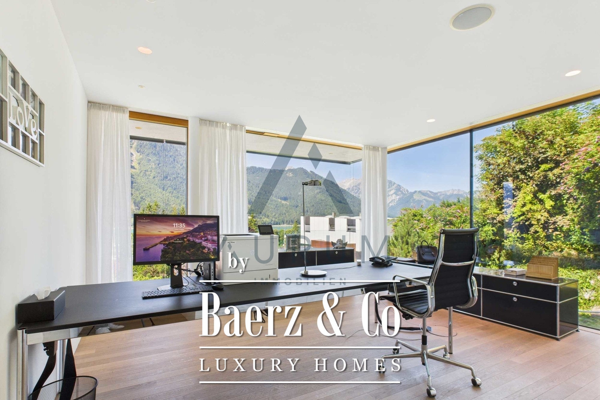 This exceptional property is located on a slightly elevated, sunny, south-facing slope above Lake Achensee in the district of Eben, part of the municipality of Eben am Achensee (Maurach district). The property is situated in a quiet and well-maintained residential area with unobstructed panoramic views of the lake and the surrounding mountain range.