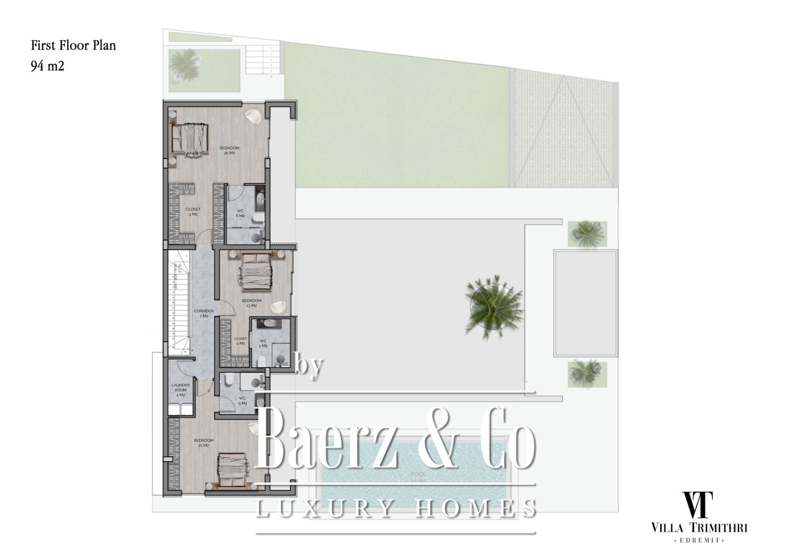 Constructed by a boutique developer with many years of experience, the design and specification of the villa is excellent. The property provides 387m2 of internal space with 4 bedrooms ensuite and the possibility of a 5th bedroom which can also have alternative use in a separate area from the main building. The plot is 710m2.