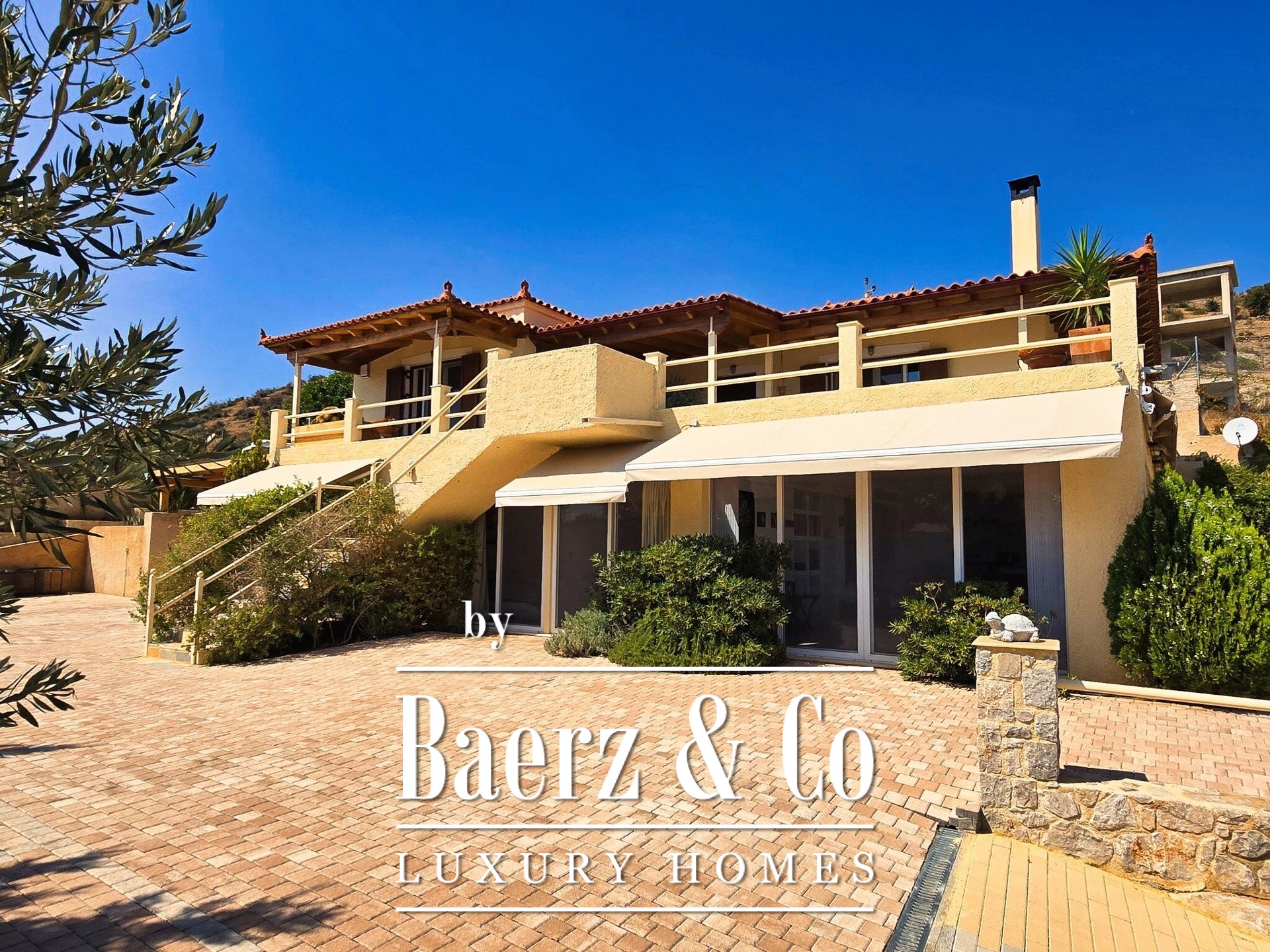 Tranquility, luxury and unobstructed sea views are the elements that characterize this unique residence, which is located just 500 meters from the nearest beach in the area, in a quiet and well-kept neighborhood characterized mainly by luxurious holiday homes.