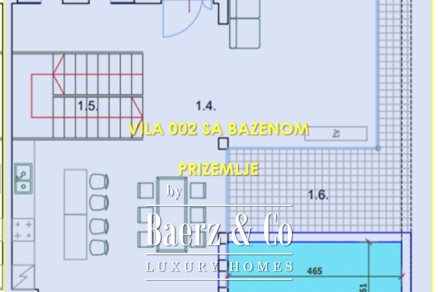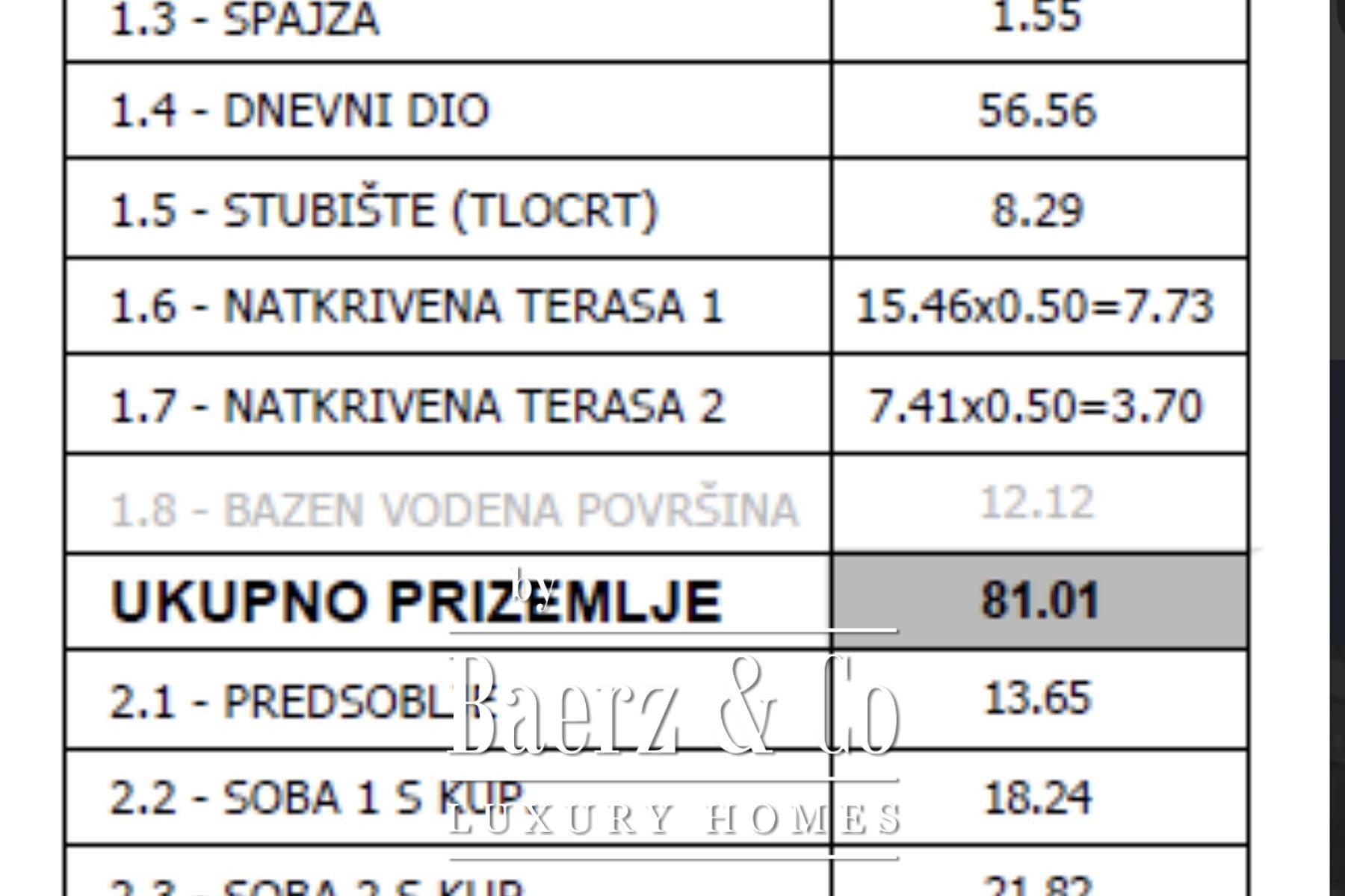Fažana, Istria, 164 m2 villa with pool, first row to the sea with sea view.For sale is a modern luxury villa which is actually part of a duplex perfectly designed to allow complete privacy.On the ground floor there is one bathroom, a storage room, a kitchen with a dining room, a living room with access to the terrace and a swimming pool with a total net area of 81.01 m2. On the first floor there is an entrance
