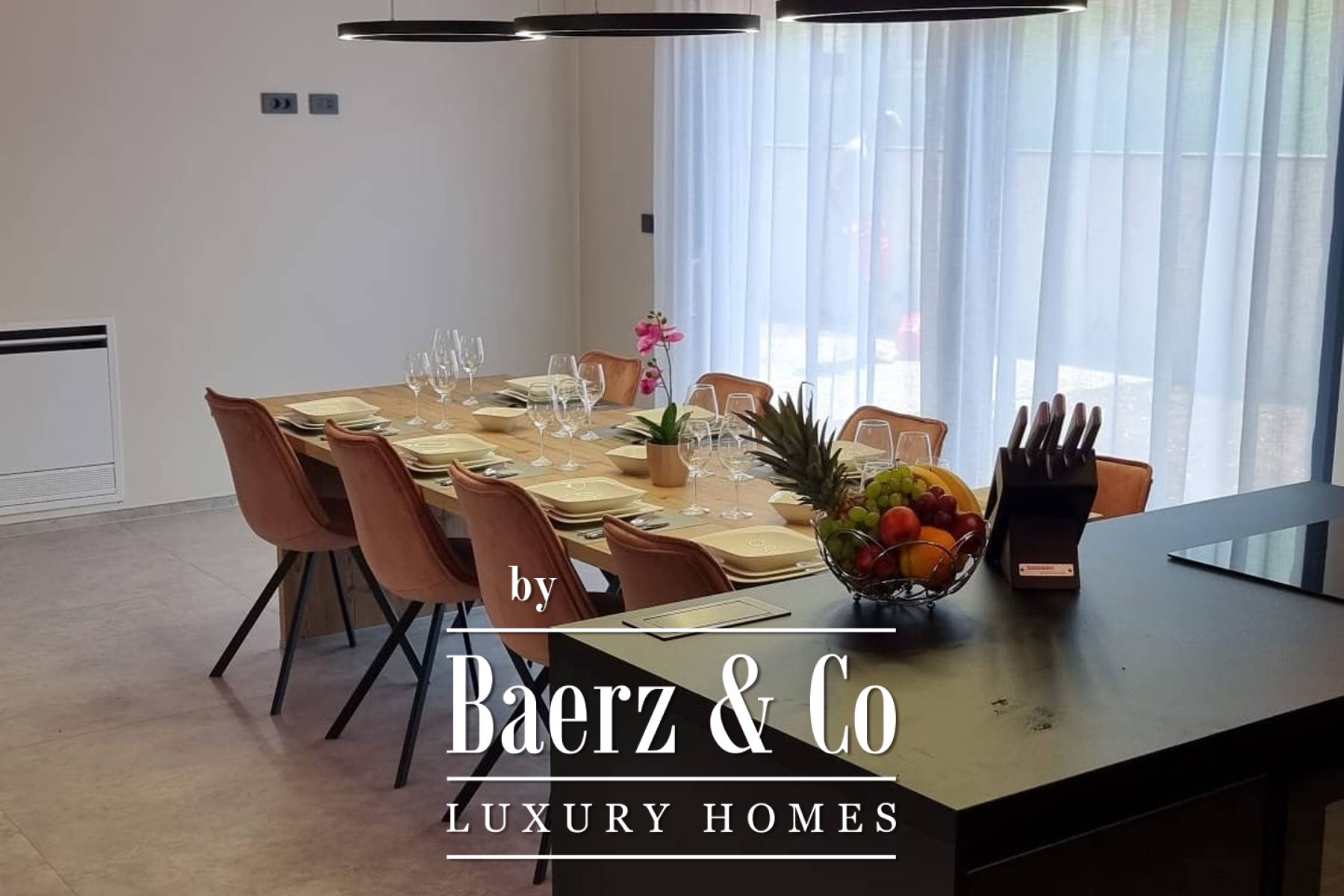 to a 50 m2 terrace with a partial view of the sea. The villa in Fažana has electric underfloor heating in all rooms except the bedrooms. There is also regulation for cooling - heating through heat pumps. Orientation: four sides of the world. ALU - PVC carpentry. Wood-colored tiles on the upper terrace. Insulation: 10 cm styrofoam. Parking provided in the courtyard of the villa for three cars. Electric fence. The house is sold with a built-in custom-made kitchen, complete with appliances. An ideal property for vacation, but also for tourism. Behind the property there is a green area where construction is not possible. The villa is located only 200 m from the beach and promenade in Fažana. We are at your disposal for other information.