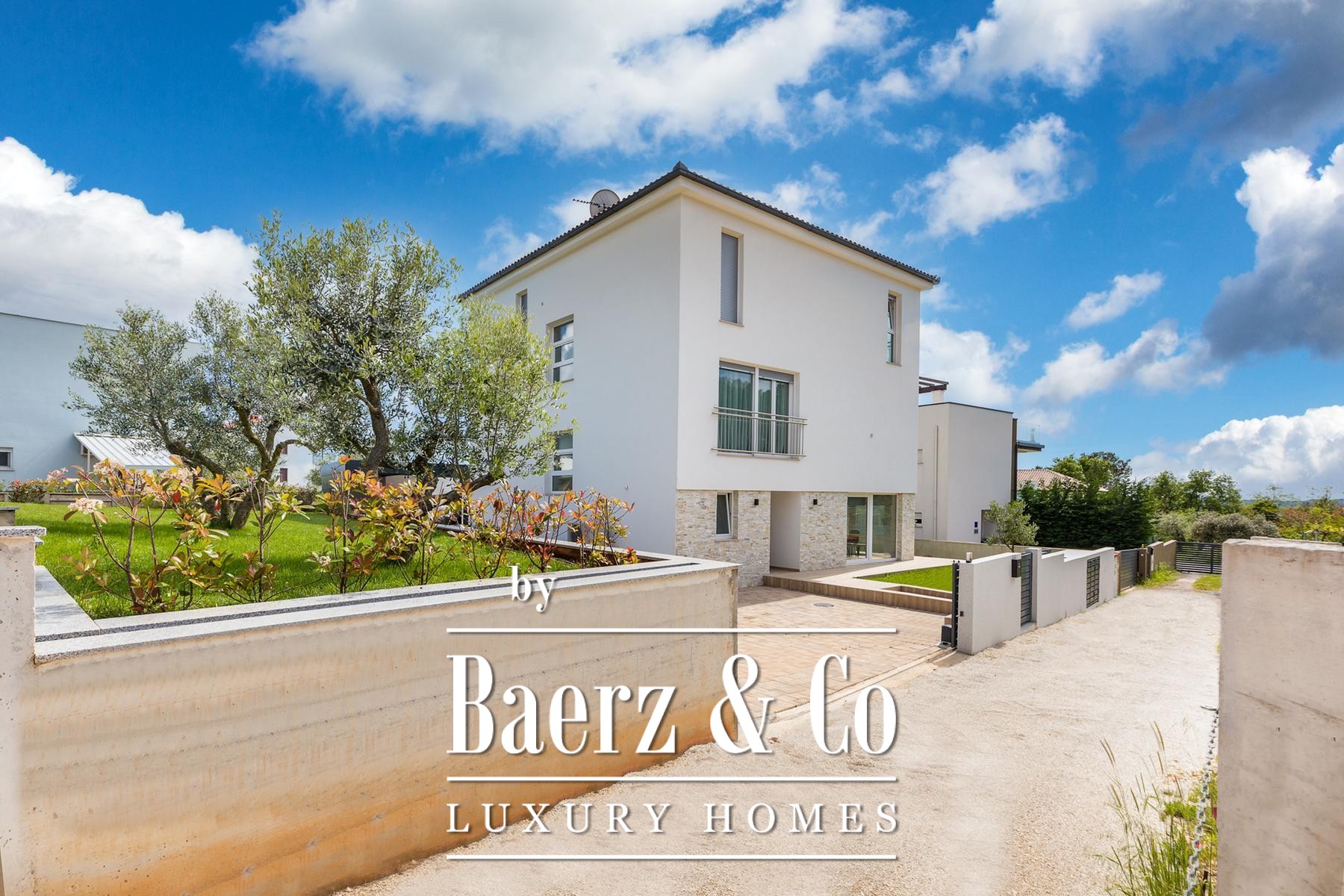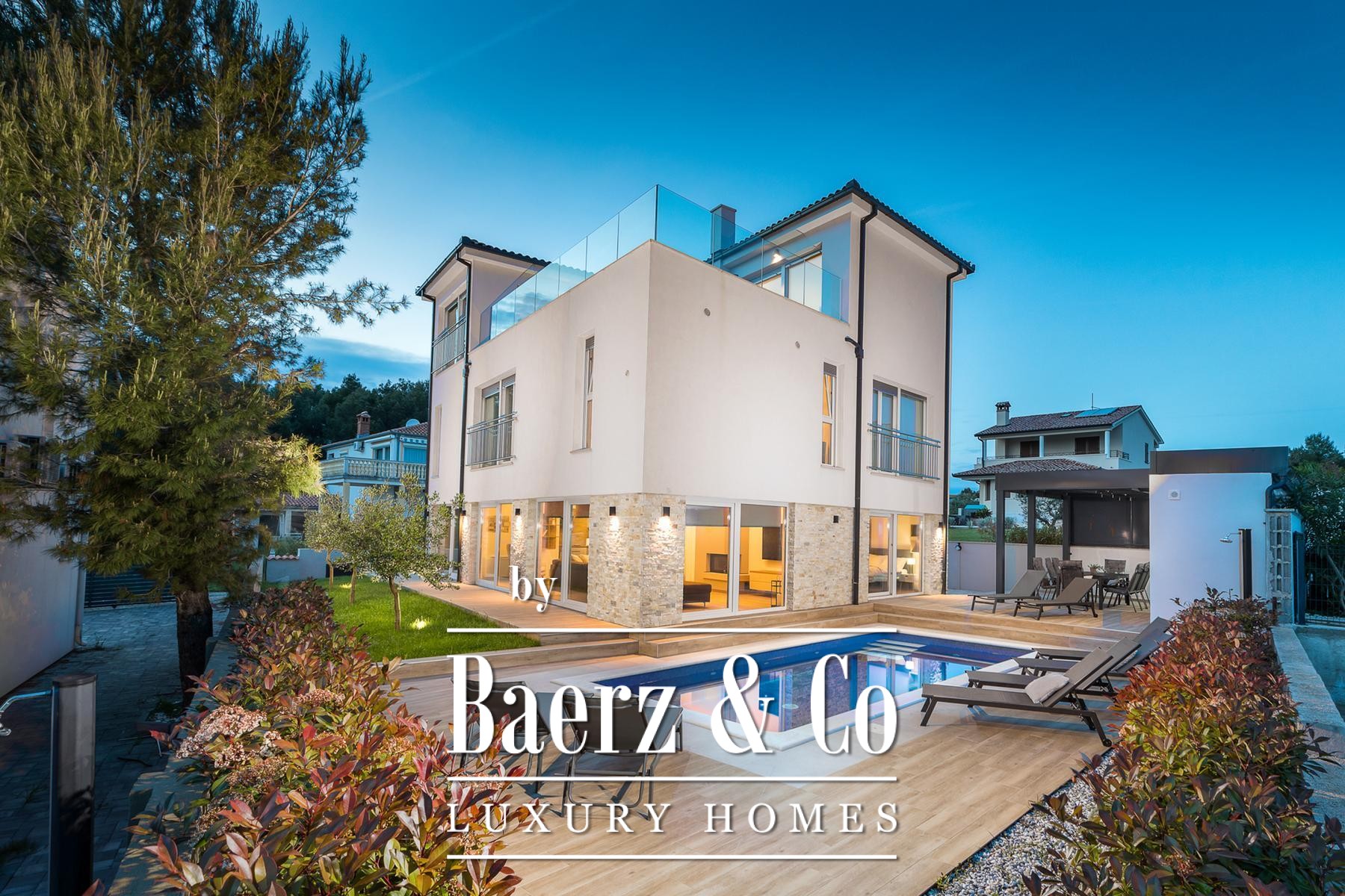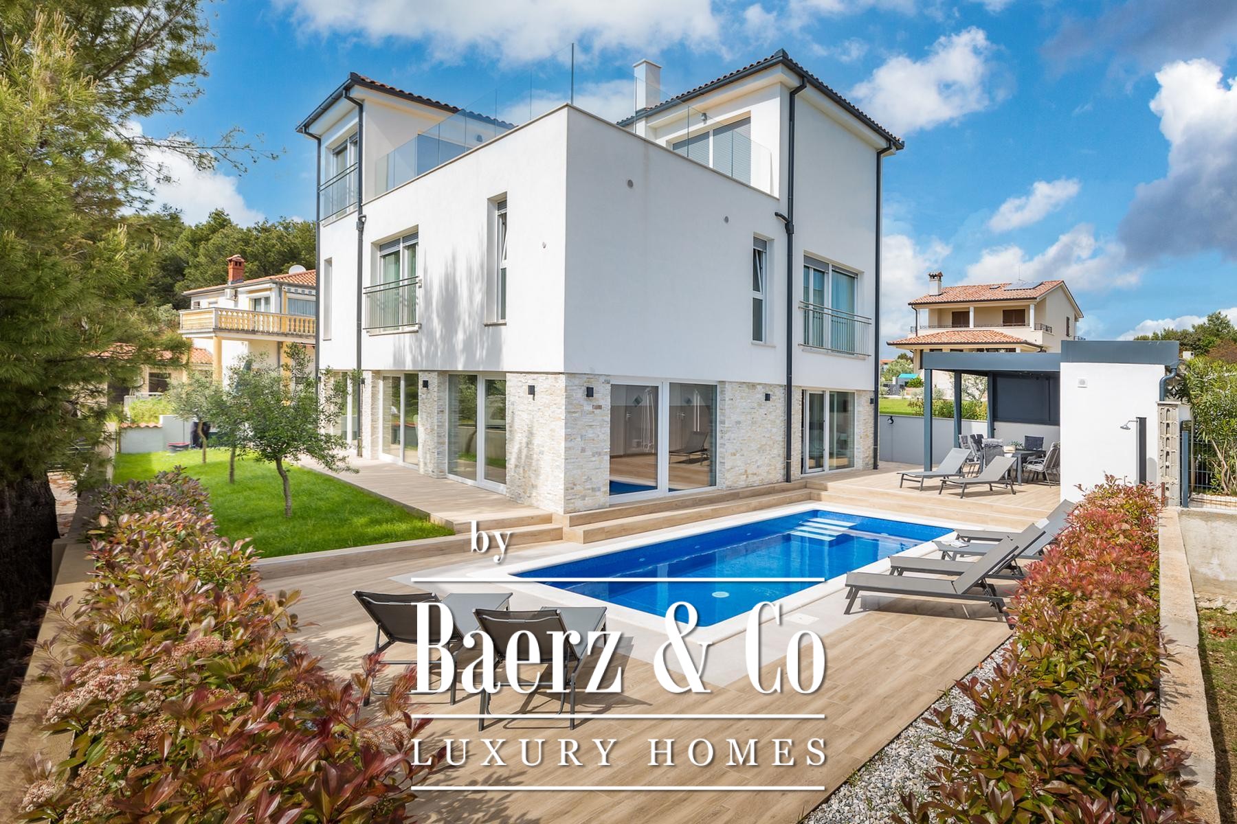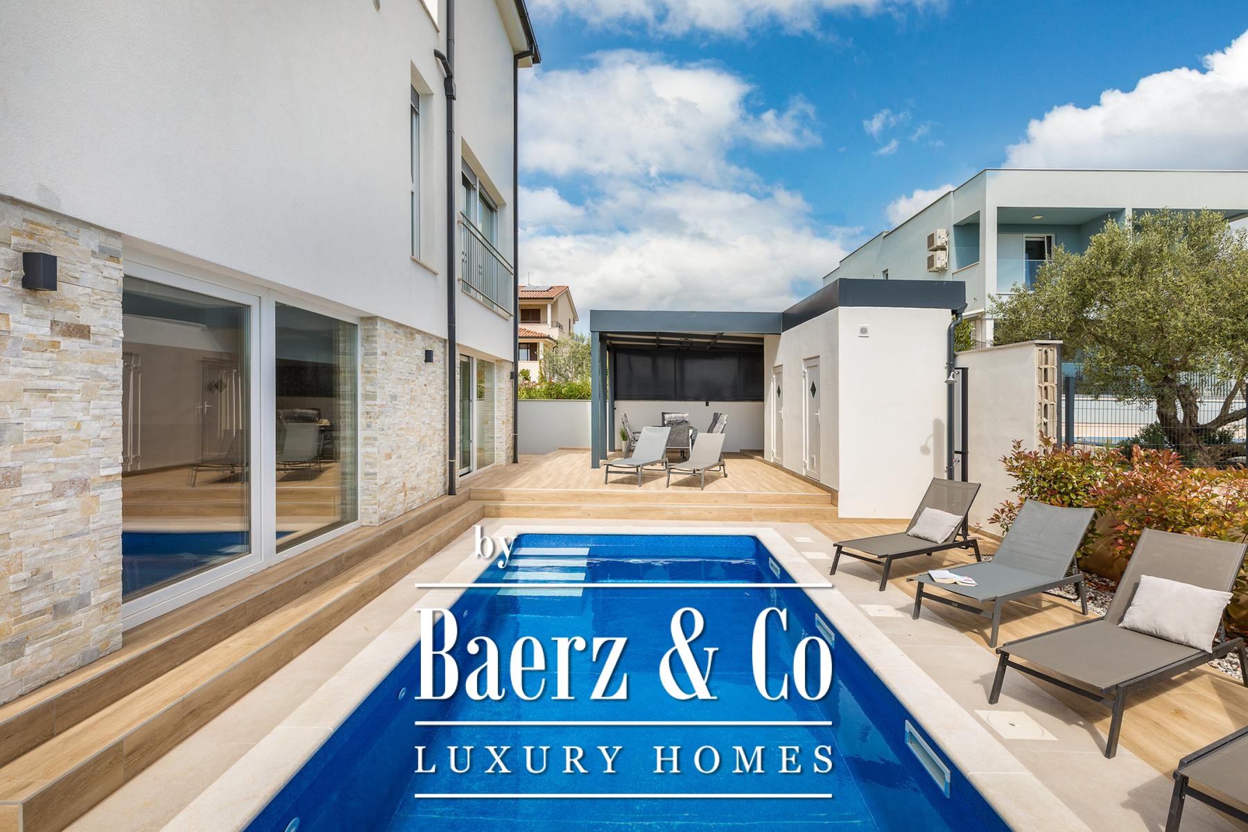Villa Fažana stands just 700 metres from the Adriatic, blending modern architecture with a sense of openness on a landscaped 490 m² plot. This villa Fažana is thoughtfully arranged across three floors, offering 360 m² of interior space, and an atmosphere defined by light and fluidity.