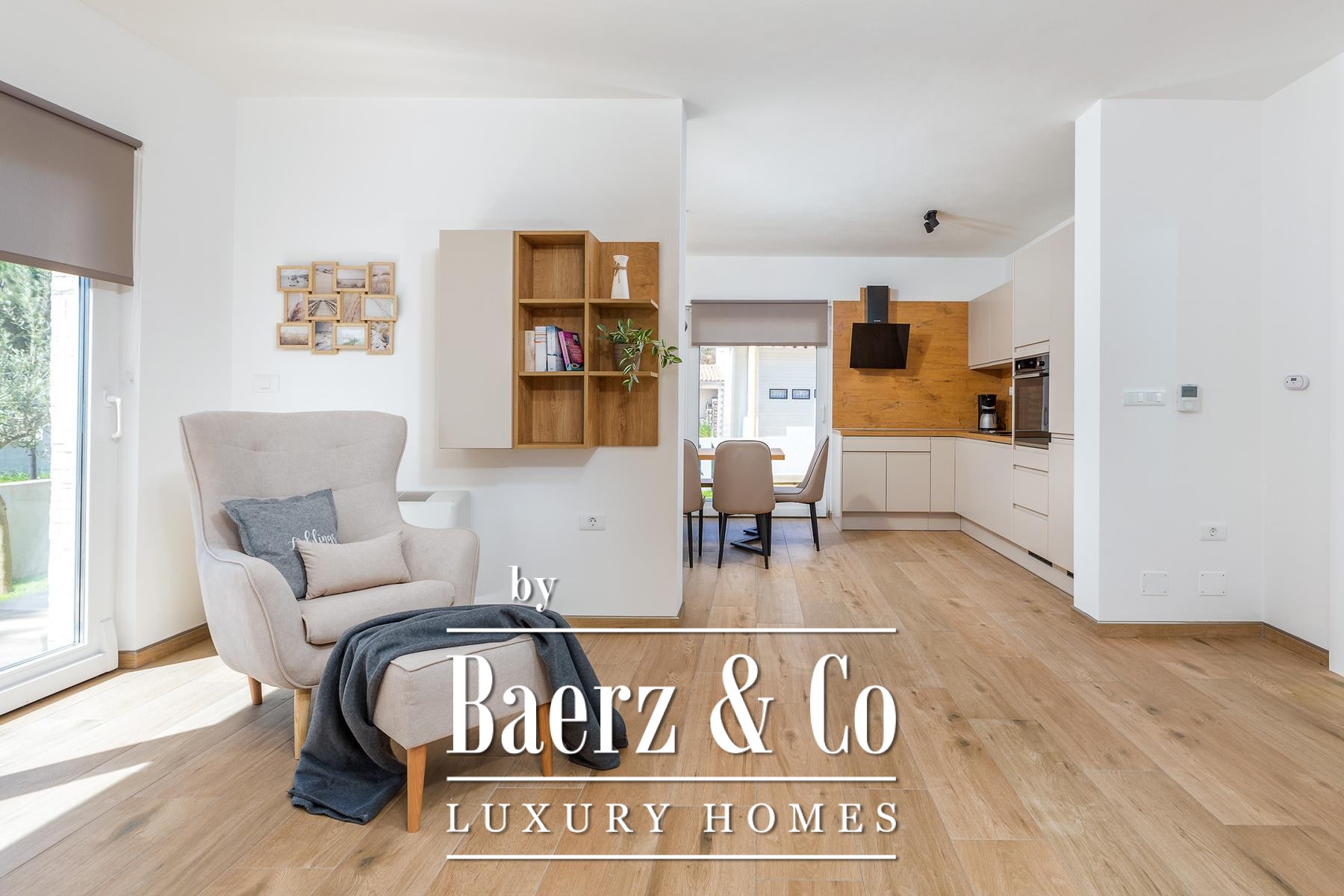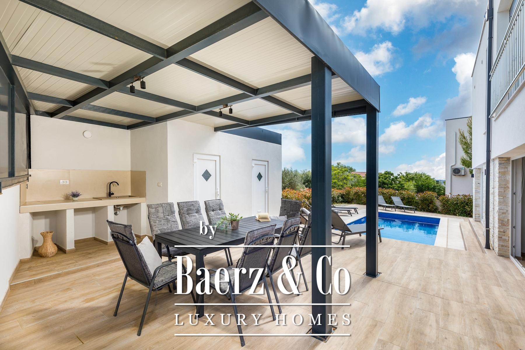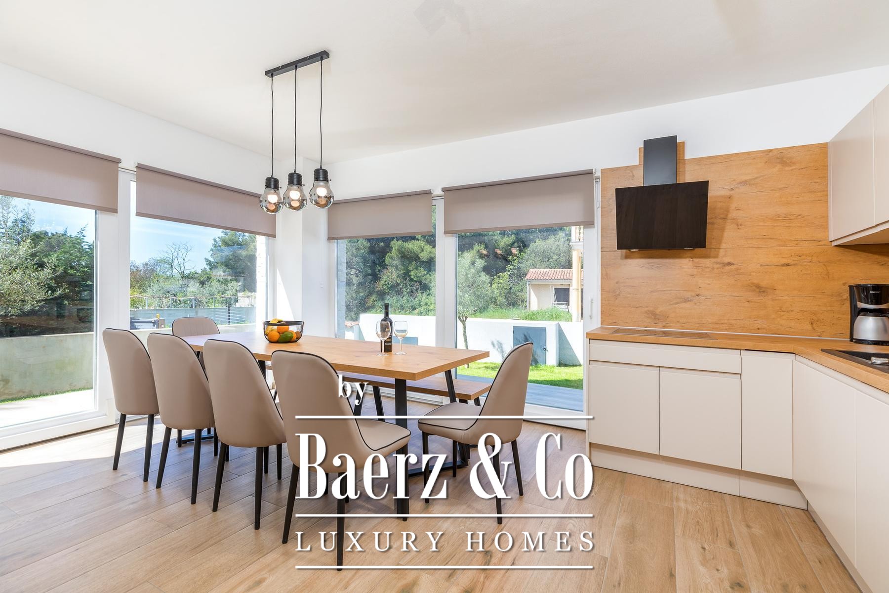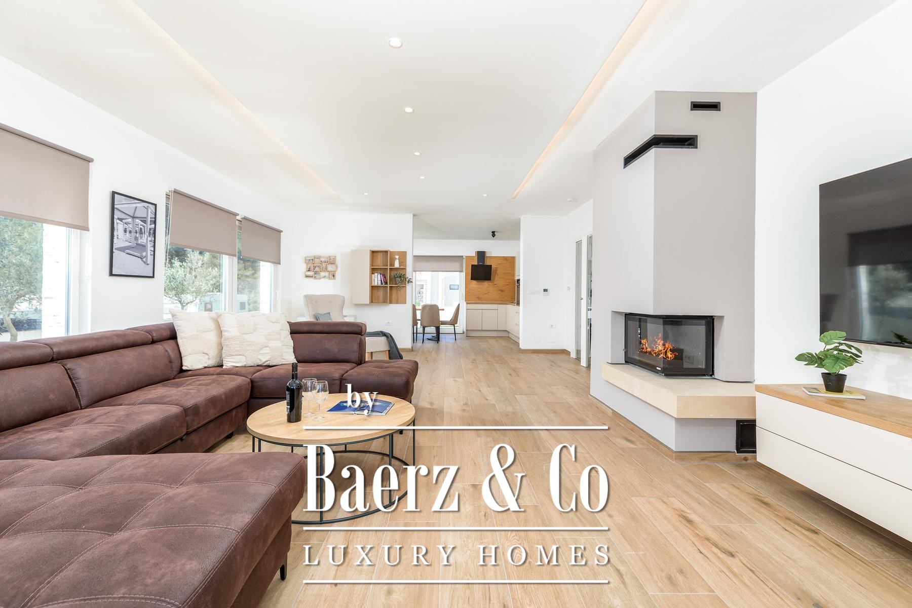 Villa Fažana stands just 700 metres from the Adriatic, blending modern architecture with a sense of openness on a landscaped 490 m² plot. This villa Fažana is thoughtfully arranged across three floors, offering 360 m² of interior space, and an atmosphere defined by light and fluidity.