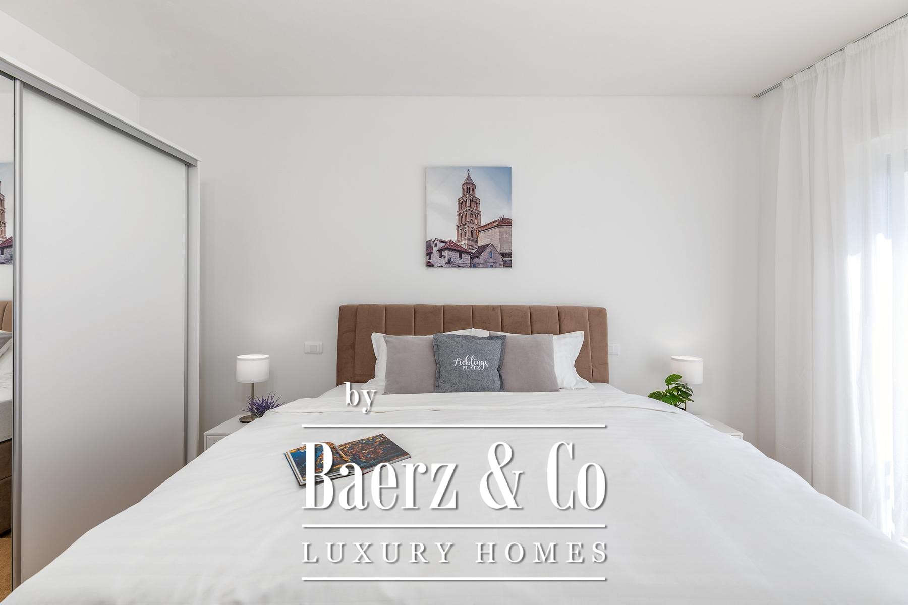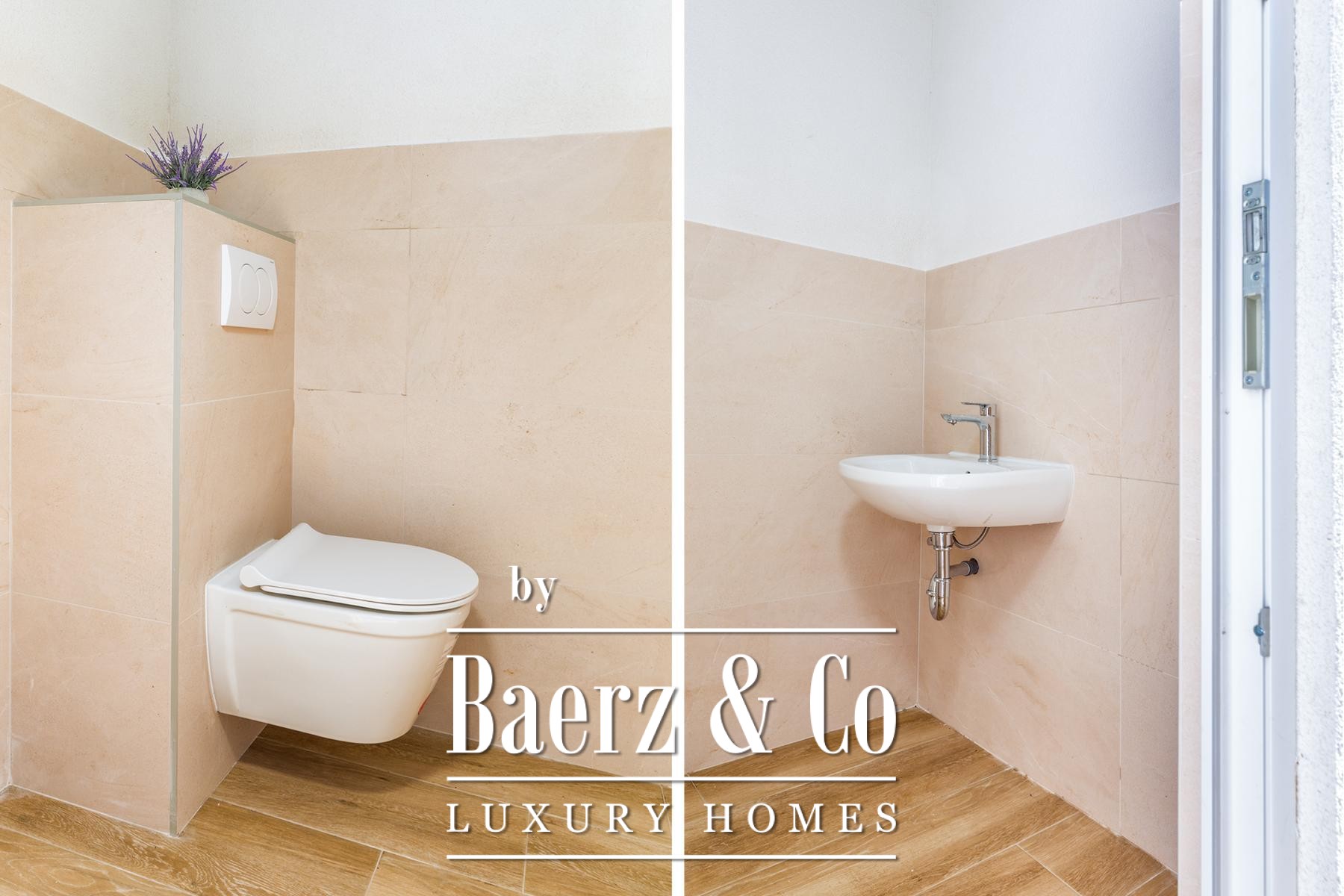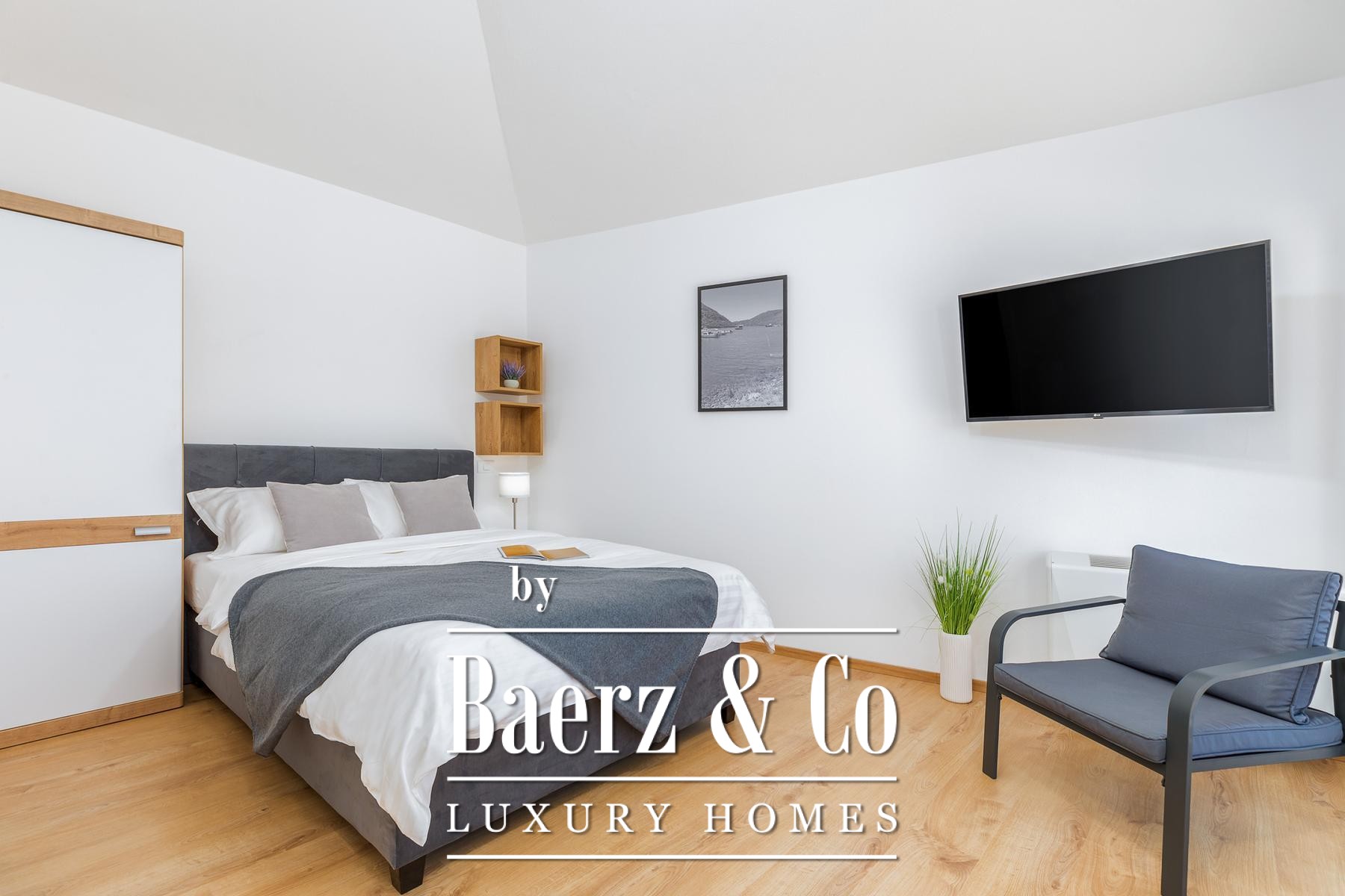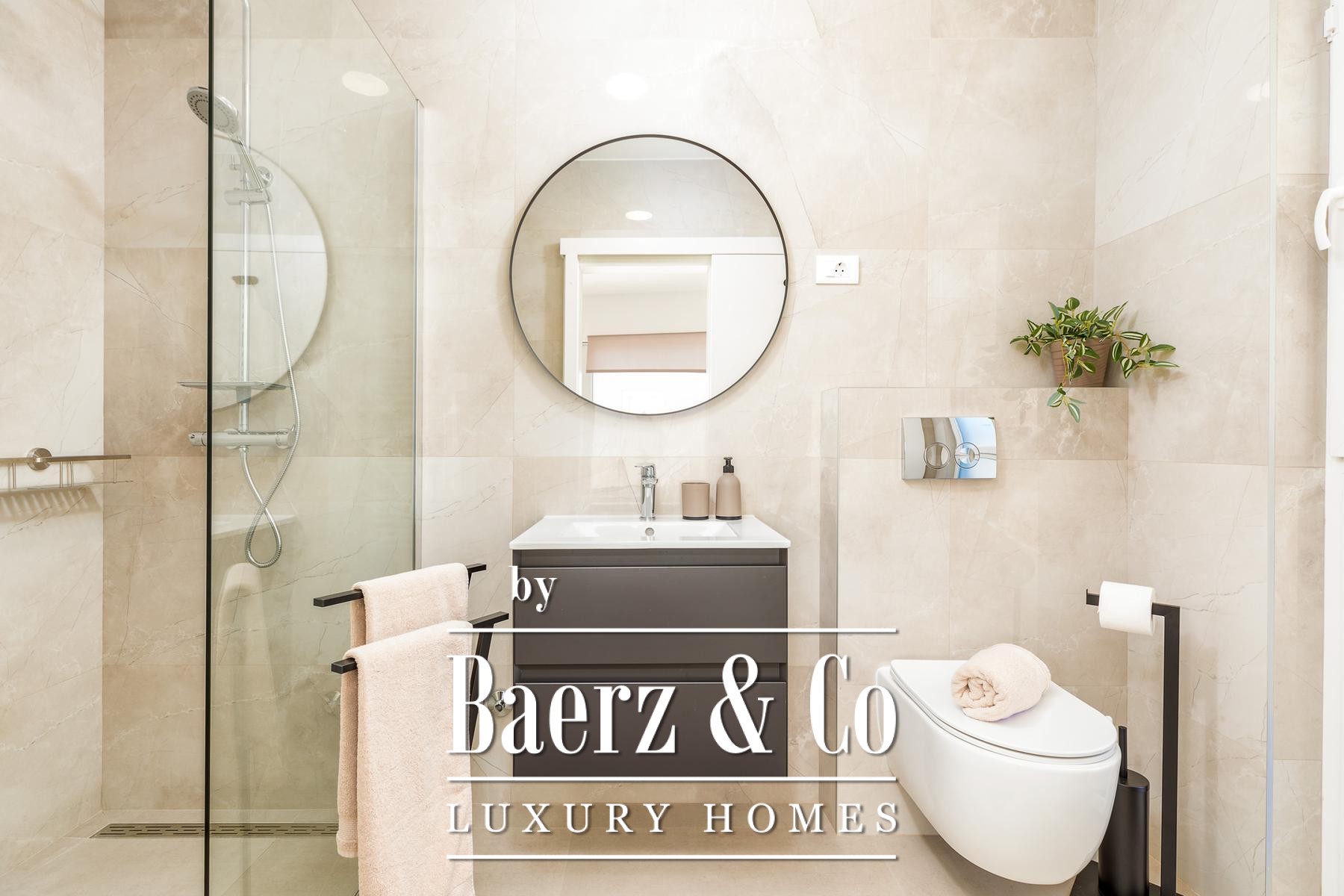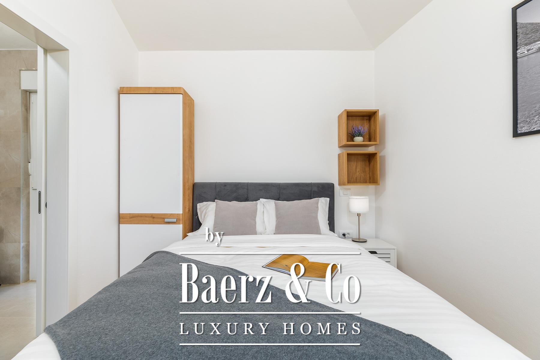 The top floor hosts an additional bedroom with access to a 40 m² terrace that offers sweeping views of the Brijuni archipelago. This level also includes a dedicated gym area and sauna, maintaining the villa’s refined focus on wellbeing. With five bedrooms and five bathrooms, solar panels, underfloor heating, and a heat pump system, the villa unites efficiency and comfort.