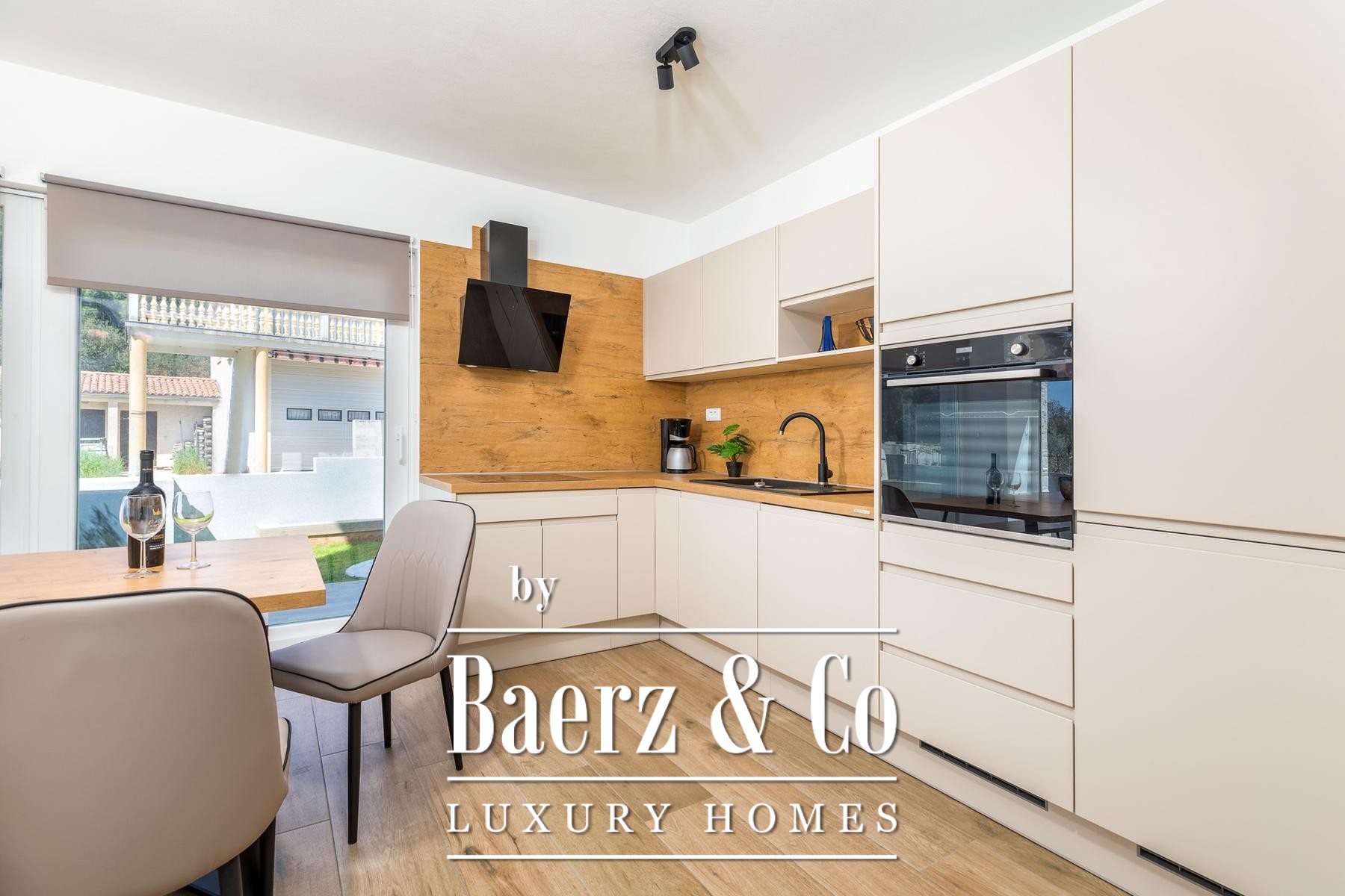 Mediterranean plantings and an automatic irrigation system frame the pool, while four private parking spaces welcome residents home. The villa is a brief walk or drive from the centre of Fažana, connecting privacy with the rhythms of coastal life.