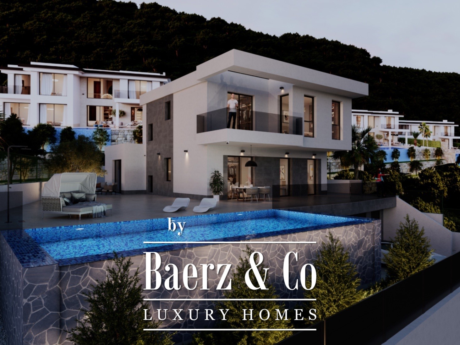 This contemporary villa Finestrat offers a composed architectural presence overlooking the coastal and mountainous landscape, positioned just minutes from Benidorm. The property unfolds across 400m² of living space set on a 711m² plot, with a design that prioritizes light, openness, and clear sightlines to the sea.