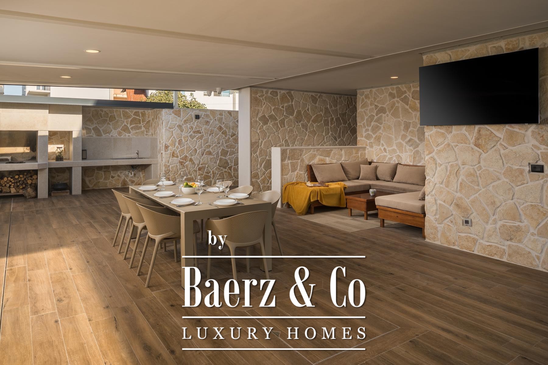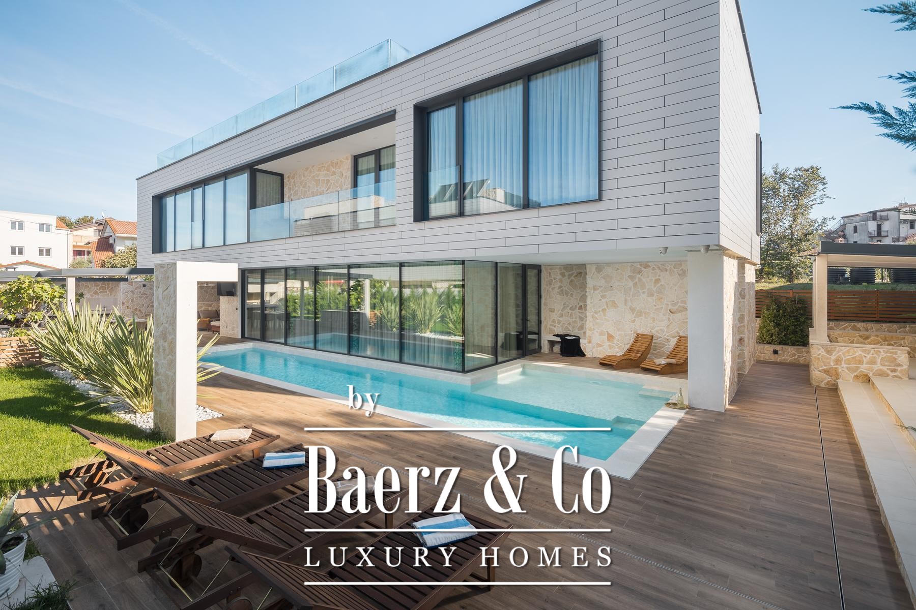 contains everything anyone needs.The basement is intended for entertainment with a cinema hall, bar, pool table and other games.Upstairs there are 4 bedrooms, each with its own bathroom, and one room with access to a spacious balcony and access to the roof terrace of 80 m2, an ideal place for sunbathing and enjoying the sea view.All rooms have underfloor heating, air conditioning and solar panels for water heating.Funtana is a small place only 10 minutes from Poreč, 30 minutes from Rovinj and 45 minutes from Pula airport, where this magnificent villa is located.The price includes VAT.Standing at your disposal for further info.