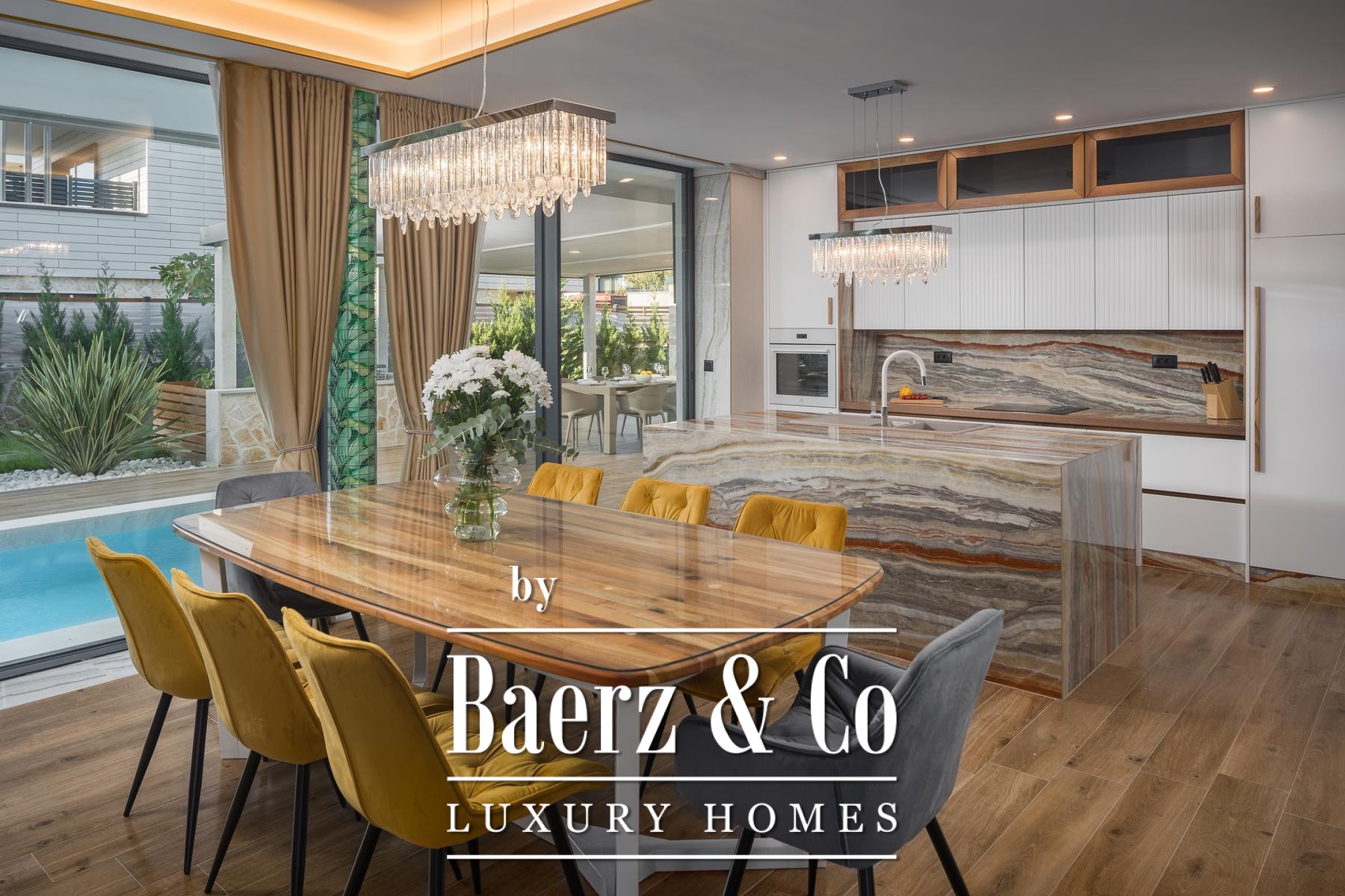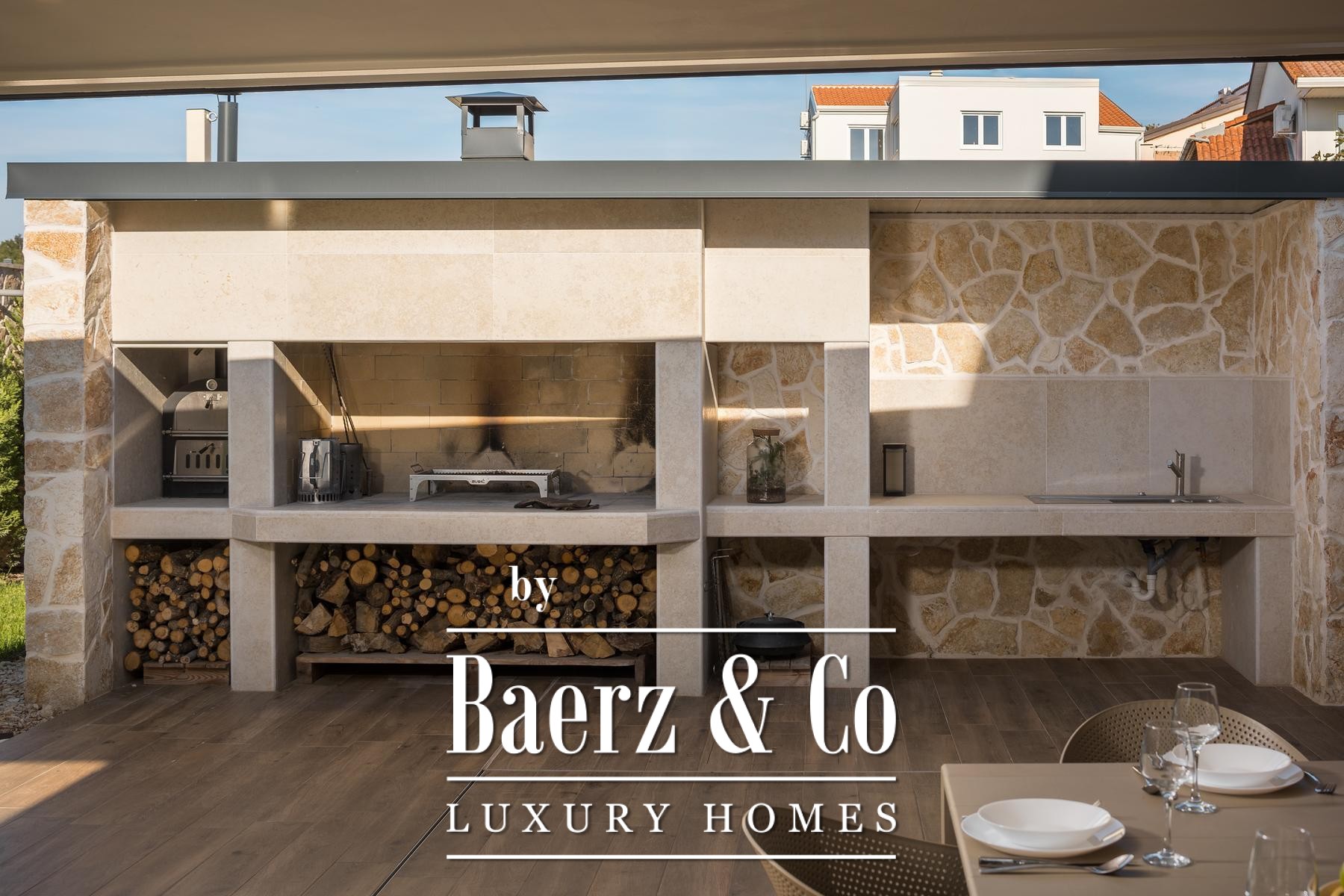 Istria, Funtana, beautiful modern villa with swimming pool and roof terrace in the center of town, 5 minutes from the sea.The villa has a modern design and a luxurious interior, equipped with high-quality materials. The ground floor consists of an open concept kitchen, a dining room and a living room from which extends a glass wall with a view of the large 50m2 swimming pool that surrounds the entire ground floor. The spa area is unavoidable: sauna and jacuzzi located in the outer part of the ground floor, equipped with their own showers.A large outdoor kitchen with a wood/charcoal grill is another addition to the garden, which