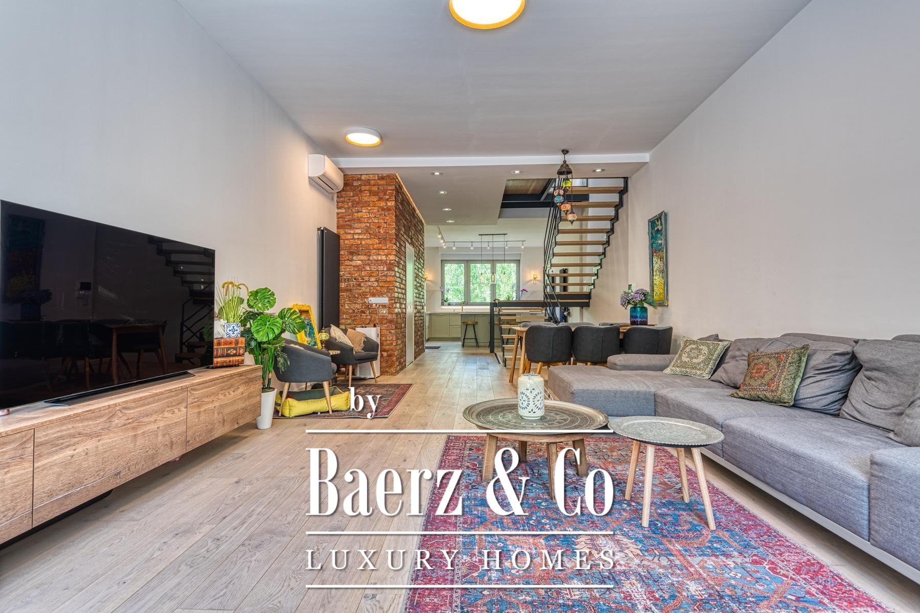 Spanning four floors connected by an elegant internal staircase, the layout prioritizes both function and atmosphere. The basement offers a versatile open area suited for fitness, a wine cellar, or a home office, supported by a bathroom, storage, and laundry. On the ground floor, the entrance hall leads to a flexible study or additional bedroom. Light flows into the first floor’s open-plan living, kitchen, and dining area, expanding onto a 19.75 m² terrace and a 47 m² garden, both positioned on the quiet courtyard side.