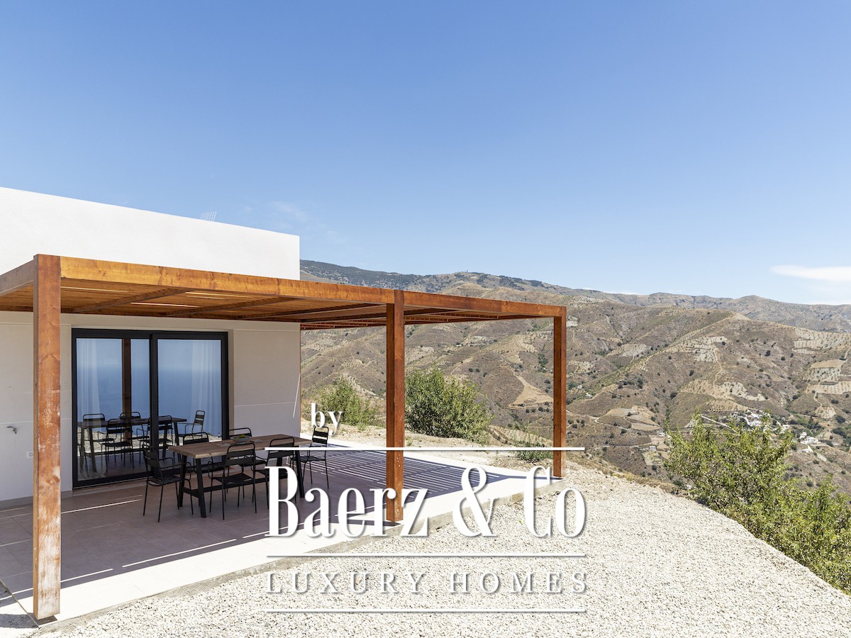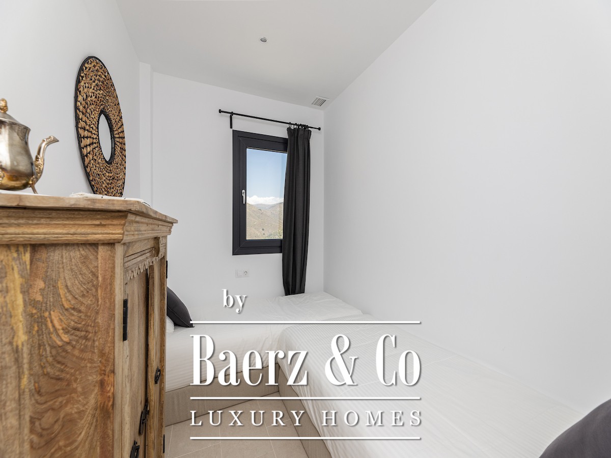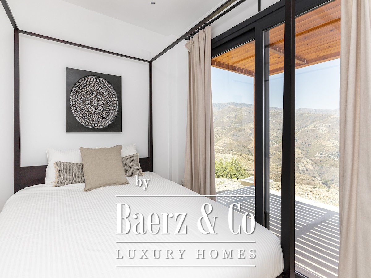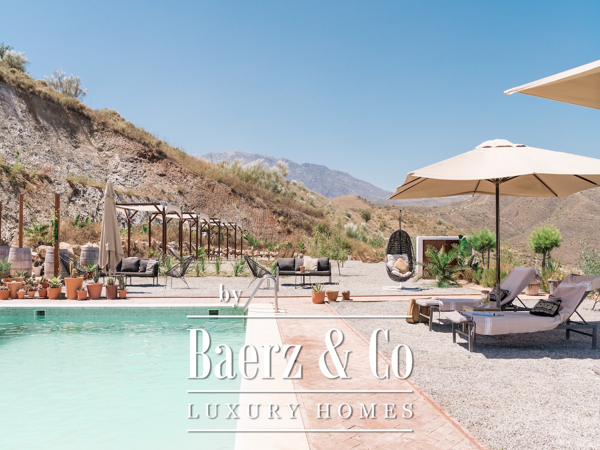 The complex is located on an estate of about 60,000 square meters. It consists of 7 residences and a restaurant. The main building consists of three apartments. In addition, there are four detached vacation homes scattered throughout the estate. The views are spectacular. At the front you can see the Mediterranean Sea, with the contours of Morocco as a bonus on clear days. At the back, you look out on the snow-capped peaks of the Sierra Nevada in winter. The rest of the view consists of slopes with almond, olive and cork oak trees with some typical Spanish white villages in between. The apartments and vacation homes of the complex are luxuriously and modernly furnished and fully equipped. There is a spacious veranda and a private garden in front or next to the accommodation. There is also a spacious swimming pool and a tropical garden that all guests can use. In the villa you will experience an unforgettable vacation of space, tranquility and comfort, amidst the beautiful nature of a piece of undiscovered Spain.
