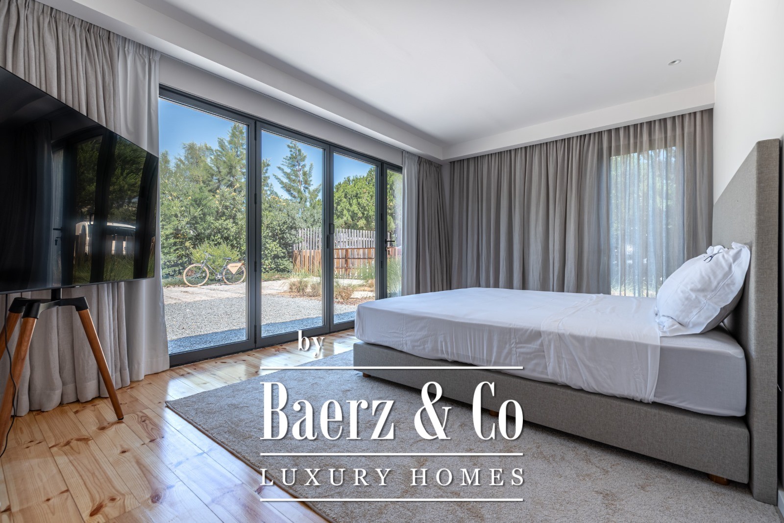 offering built-in closets. Ground floor hosts two suites with en-suite bathrooms and direct outdoor access—one to garden, another to deck and pool. Upstairs, two more suites await: one with private veranda, another overlooking the living area.Modern amenities include fully equipped kitchen with quality appliances, barbecue area, high-speed internet, flat-screen TVs in each room, upper floor lounge with workspace, gym, laundry room, and private parking.Nearby Tróia offers beachfront restaurants, cozy tavernas, and golden coastline. This exclusive Comporta location provides refined simplicity in one of Portugal’s most peaceful, prestigious destinations.This villa represents the perfect blend of modern comfort and coastal calm—a stylish escape where luxury meets Portuguese natural beauty.Play golf in the morning, enjoy the beach 5 minutes from the property, and have a sunset drink with your family and friends, these are among the multiple possibilities that this special property has to offer.You’re looking for an investment opportunity, this property has offering steady rental income at €1500.00 per day during summer time.