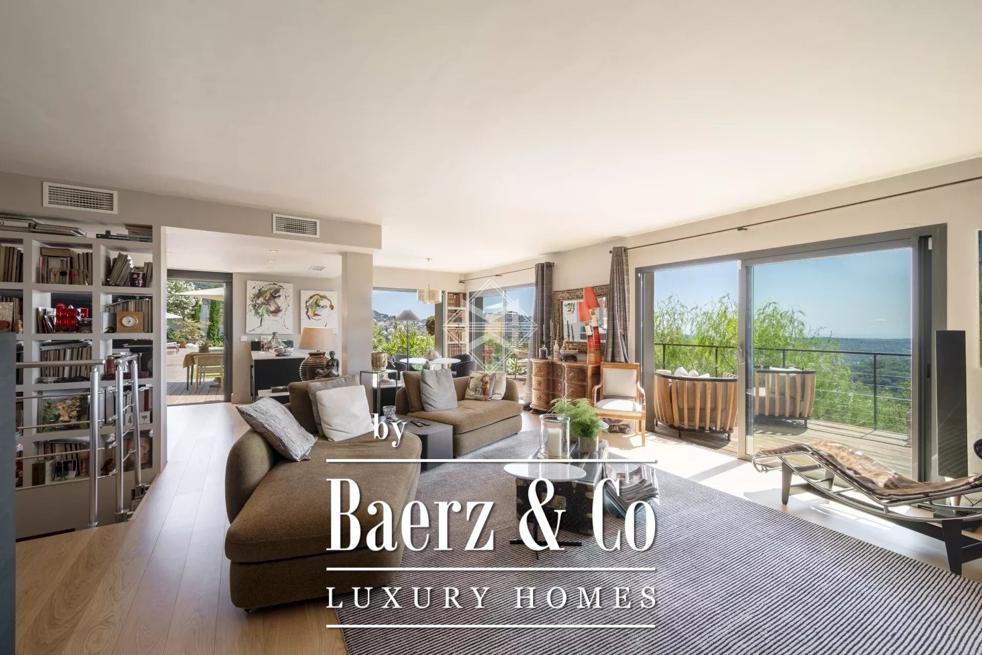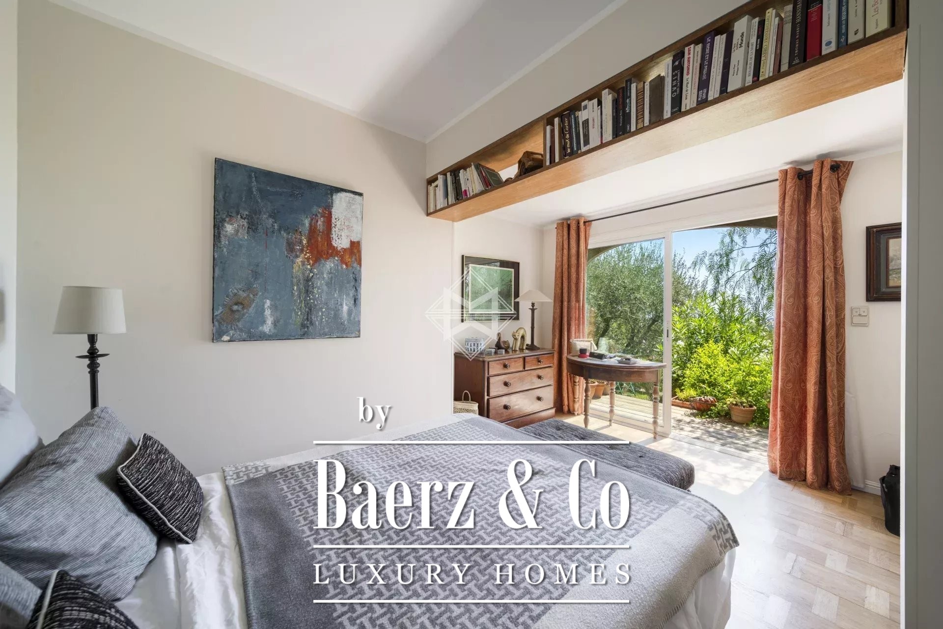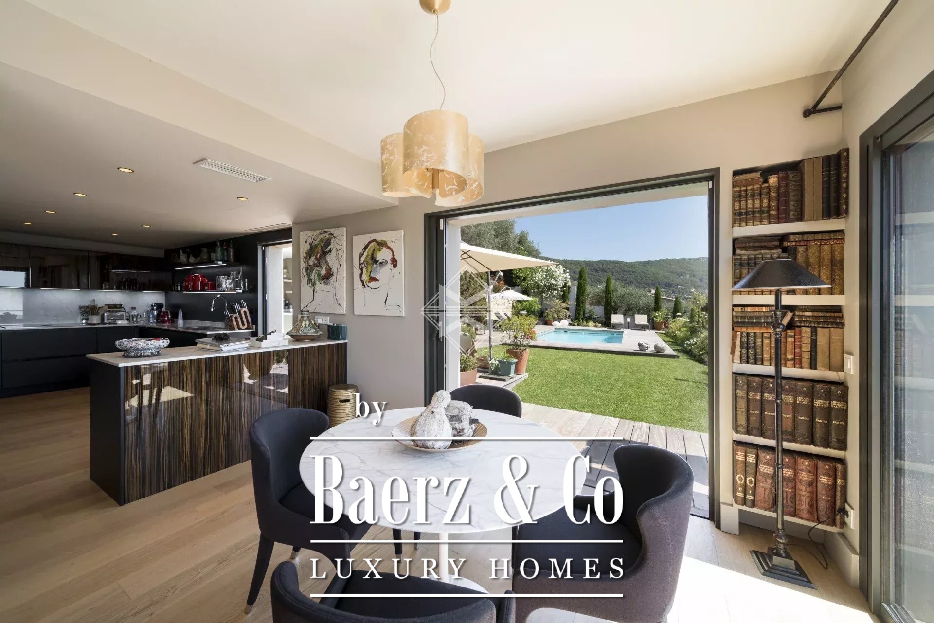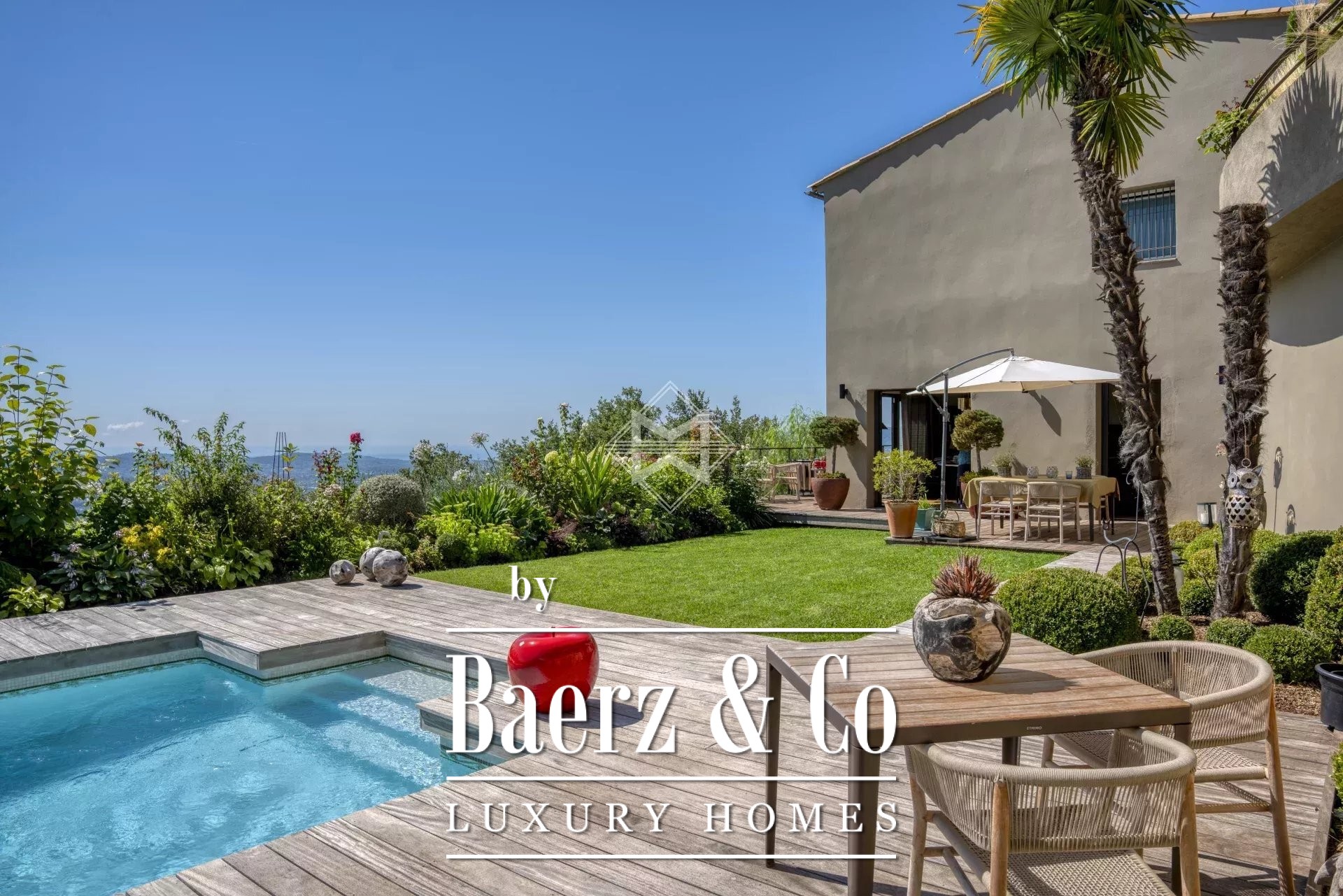 other Mediterranean species, plunge you into the heart of authentic, generous Provence. Inside, the first floor opens onto a vast, light-filled living room. The open kitchen, with its discreet pantry, communicates harmoniously with the living room and dining room. The sliding glass doors open out to invite nature in, blurring the boundaries between indoors and outdoors. Each space enjoys panoramic views and direct access to the garden, pool and terraces, like a permanent invitation to contemplation. The sleeping area features an en suite bedroom with private shower room, while upstairs, two bright bedrooms with views and a generous bathroom complete the space. A rare combination of discreet refinement, Provencal charm and breathtaking views. A home to live each day as an enchanted interlude.